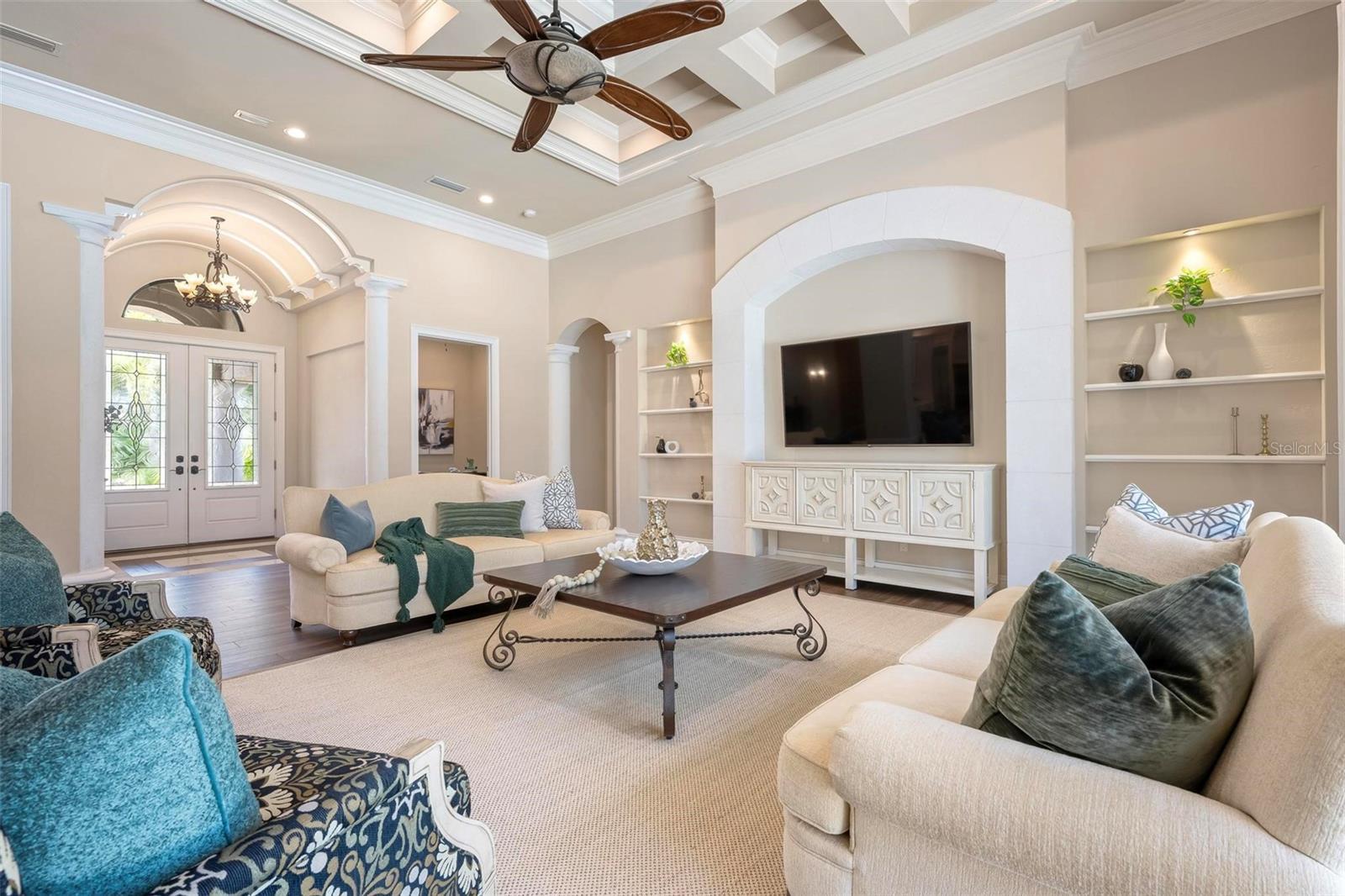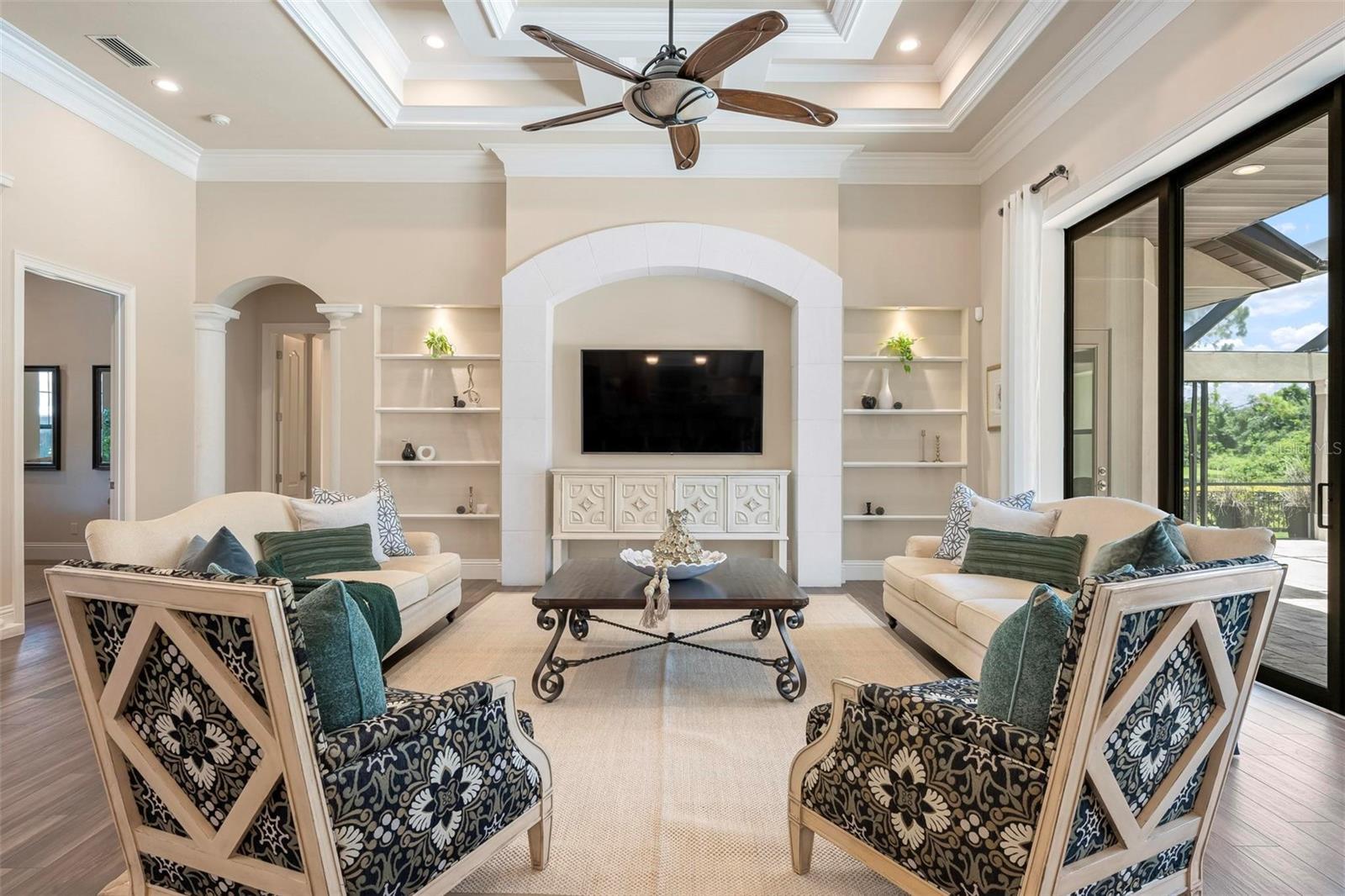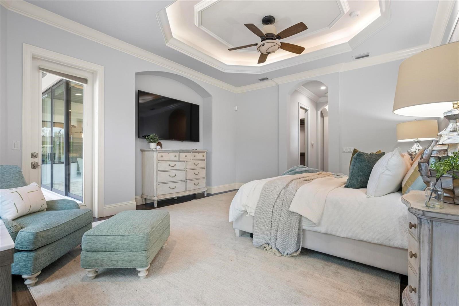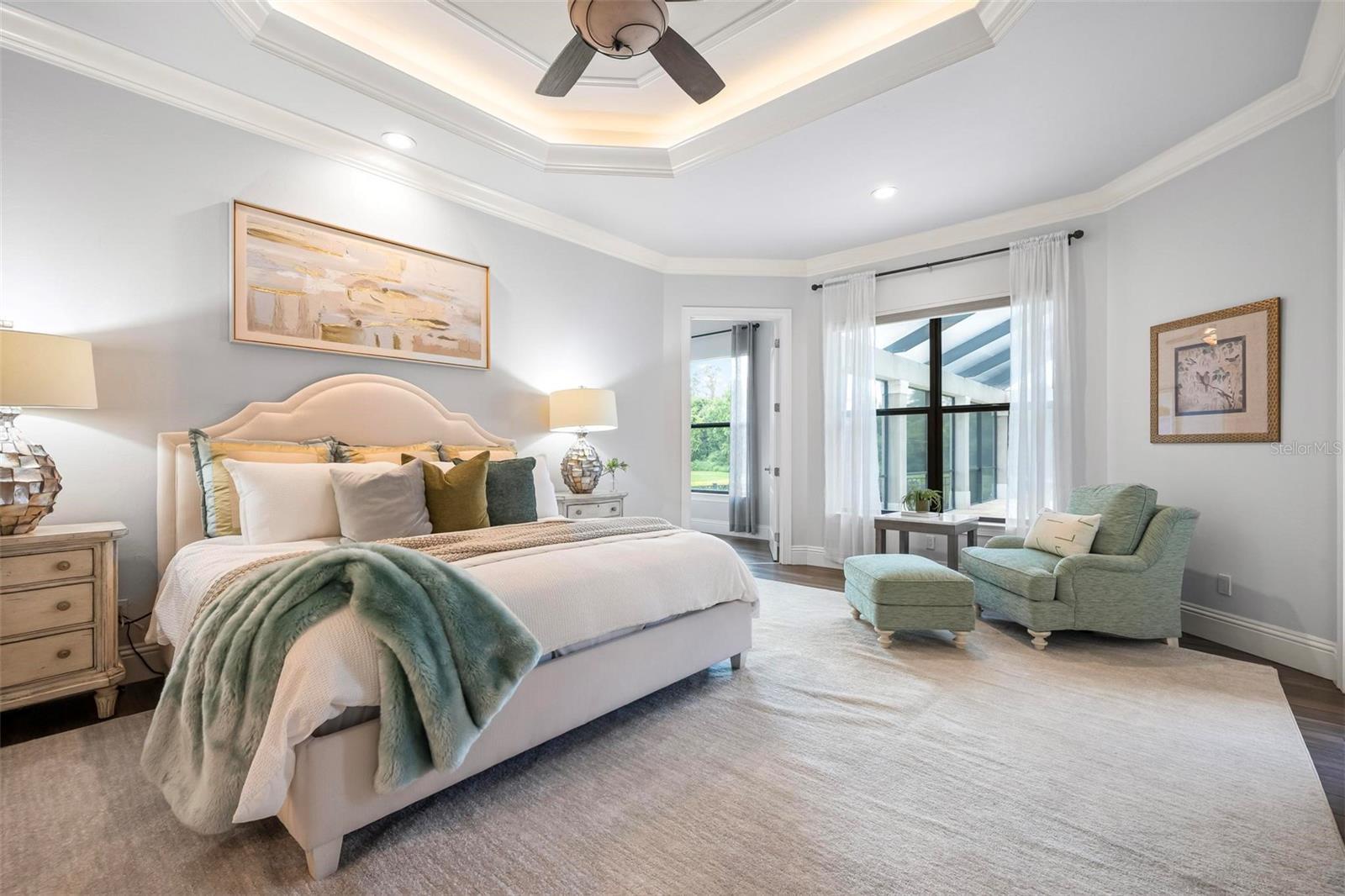 Seller wants offers!! Luxury Lake front Living with Exquisite Designer touches at the Founders Club a gated, golf course community. Indulge in the elegance of this 3-bedroom, 3.5-bathroom great room design luxury residence, where breathtaking water views and refined craftsmanship create the ultimate retreat. Designed for both comfort and style, this home features soaring high ceilings and wood-look porcelain floors, enhancing the open and airy ambiance. The gourmet kitchen is a chef’s dream, showcasing upgraded wood cabinetry, stone countertops, GE Monogram appliances, and a built-in Subzero refrigerator. A dedicated media room provides the perfect space for entertainment and relaxation. The expansive primary suite offers a private sanctuary with dual walk-in closets featuring custom built-ins. The spa-inspired master bath exudes luxury with marble floors, a free-standing soaking tub, and an oversized walk-in shower, creating a serene escape. Seamlessly blending indoor and outdoor living, this home boasts a custom-designed pool with a gas-heated spa, a fully equipped outdoor grill center, and a cozy outdoor fireplace, perfect for year-round enjoyment. Experience the finest in waterfront luxury—schedule your private tour today!