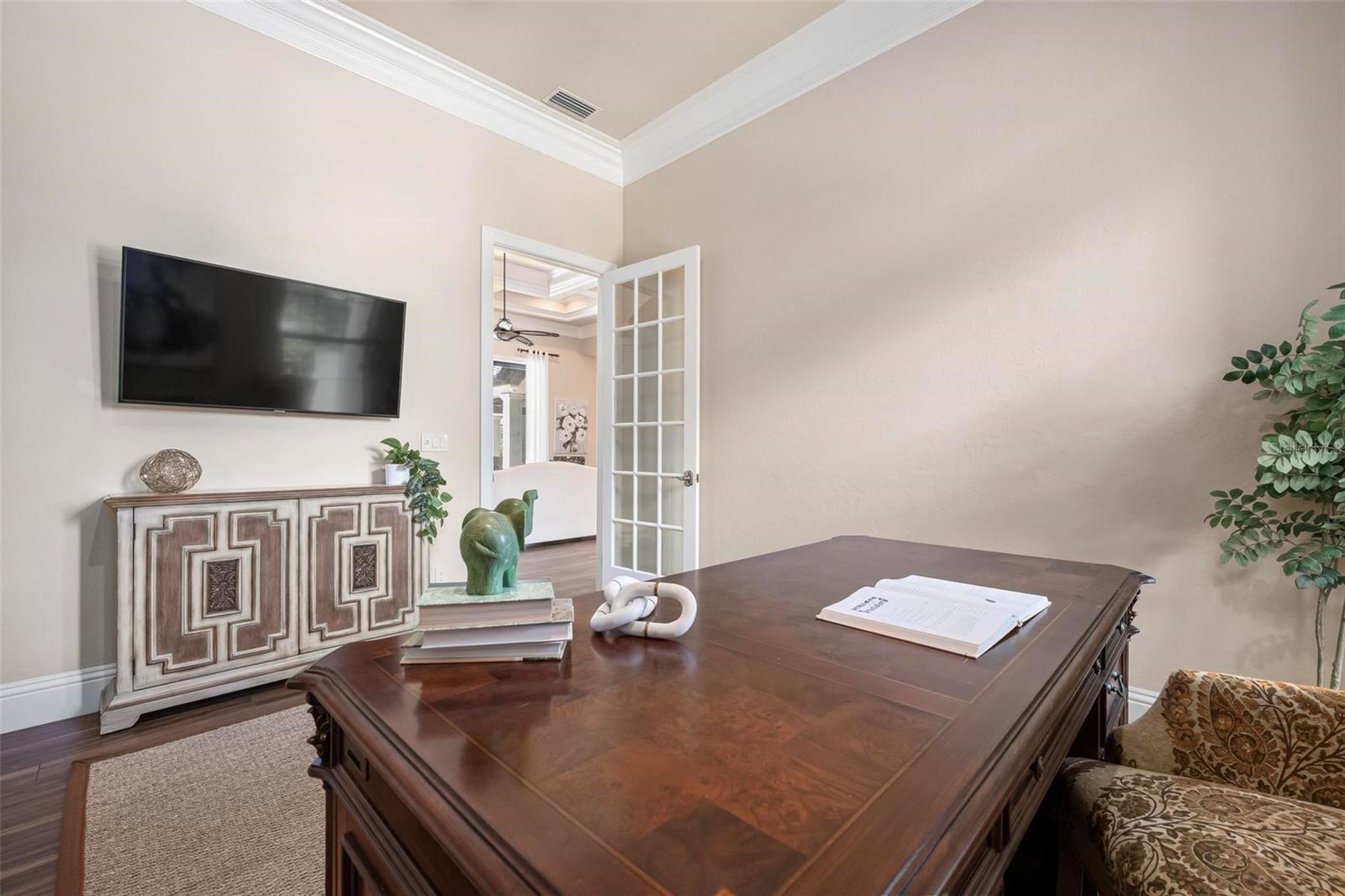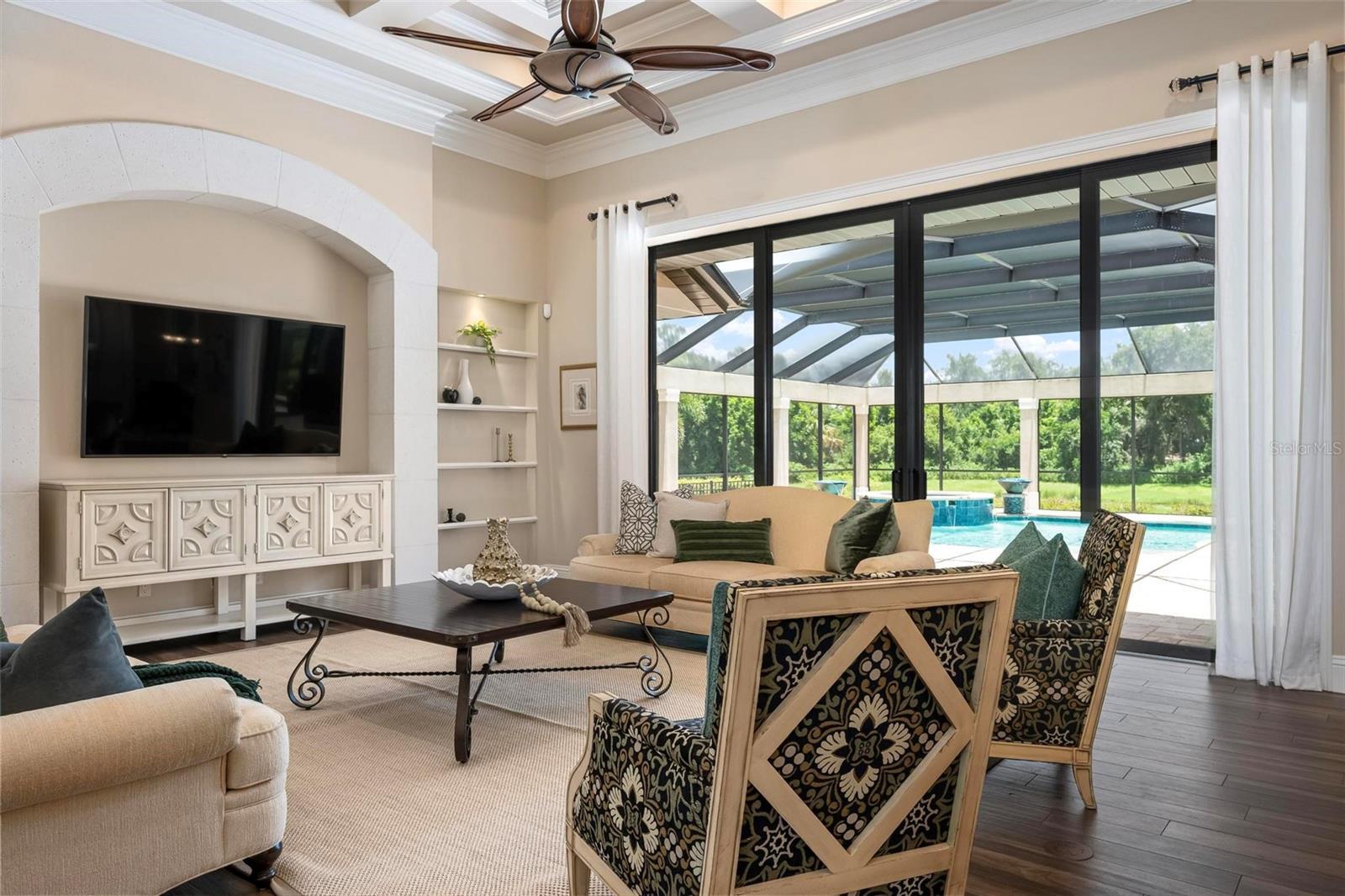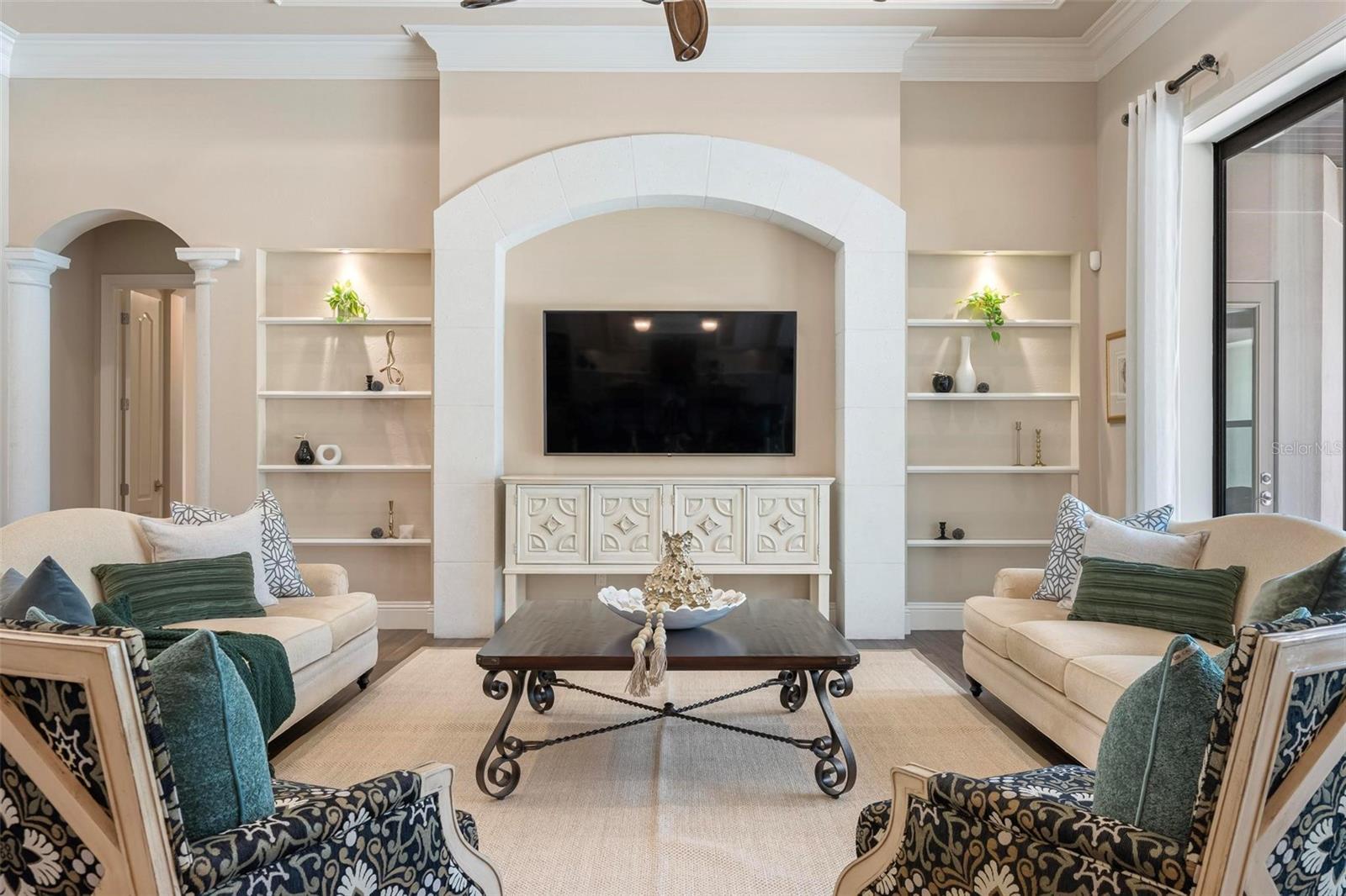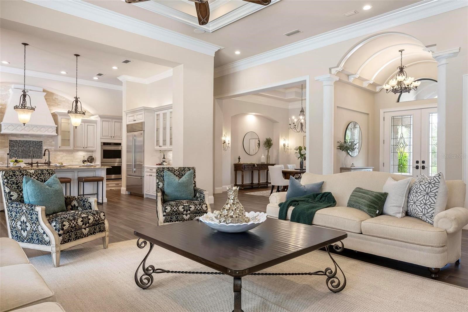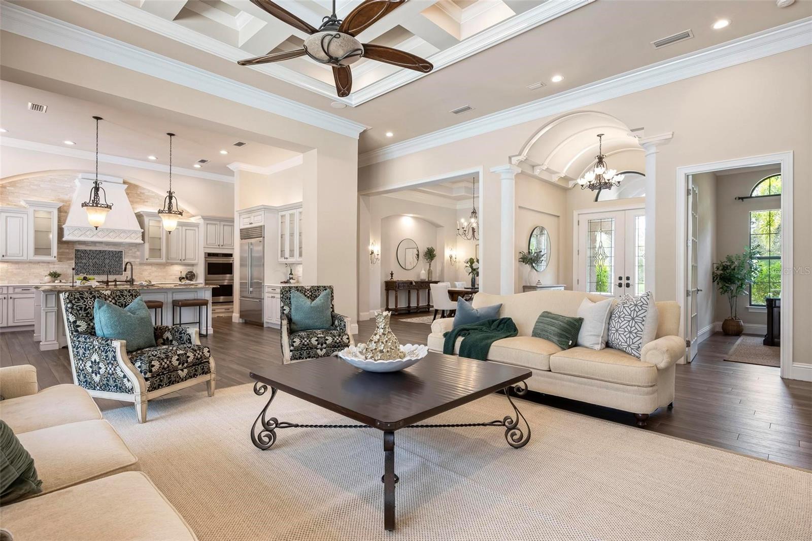 Seller wants offers!! Luxury Lake front Living with Exquisite Designer touches at the Founders Club a gated, golf course community. Indulge in the elegance of this 3-bedroom, 3.5-bathroom great room design luxury residence, where breathtaking water views and refined craftsmanship create the ultimate retreat. Designed for both comfort and style, this home features soaring high ceilings and wood-look porcelain floors, enhancing the open and airy ambiance. The gourmet kitchen is a chef’s dream, showcasing upgraded wood cabinetry, stone countertops, GE Monogram appliances, and a built-in Subzero refrigerator. A dedicated media room provides the perfect space for entertainment and relaxation. The expansive primary suite offers a private sanctuary with dual walk-in closets featuring custom built-ins. The spa-inspired master bath exudes luxury with marble floors, a free-standing soaking tub, and an oversized walk-in shower, creating a serene escape. Seamlessly blending indoor and outdoor living, this home boasts a custom-designed pool with a gas-heated spa, a fully equipped outdoor grill center, and a cozy outdoor fireplace, perfect for year-round enjoyment. Experience the finest in waterfront luxury—schedule your private tour today!