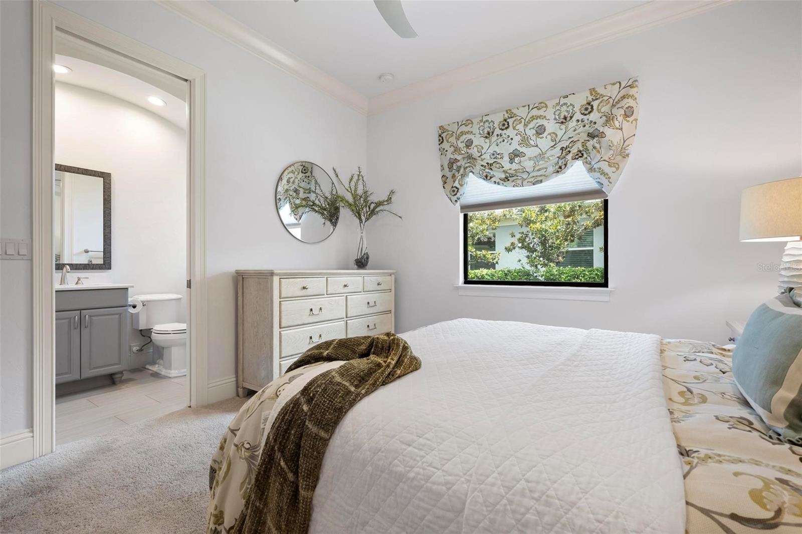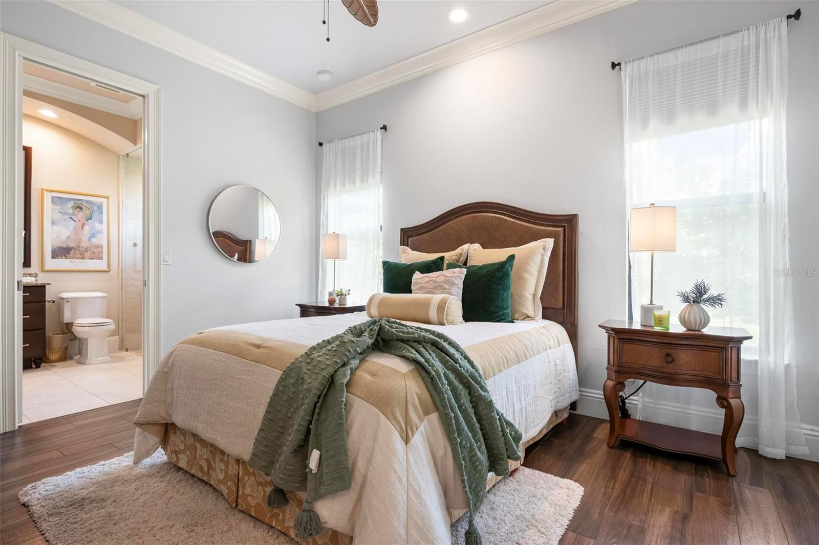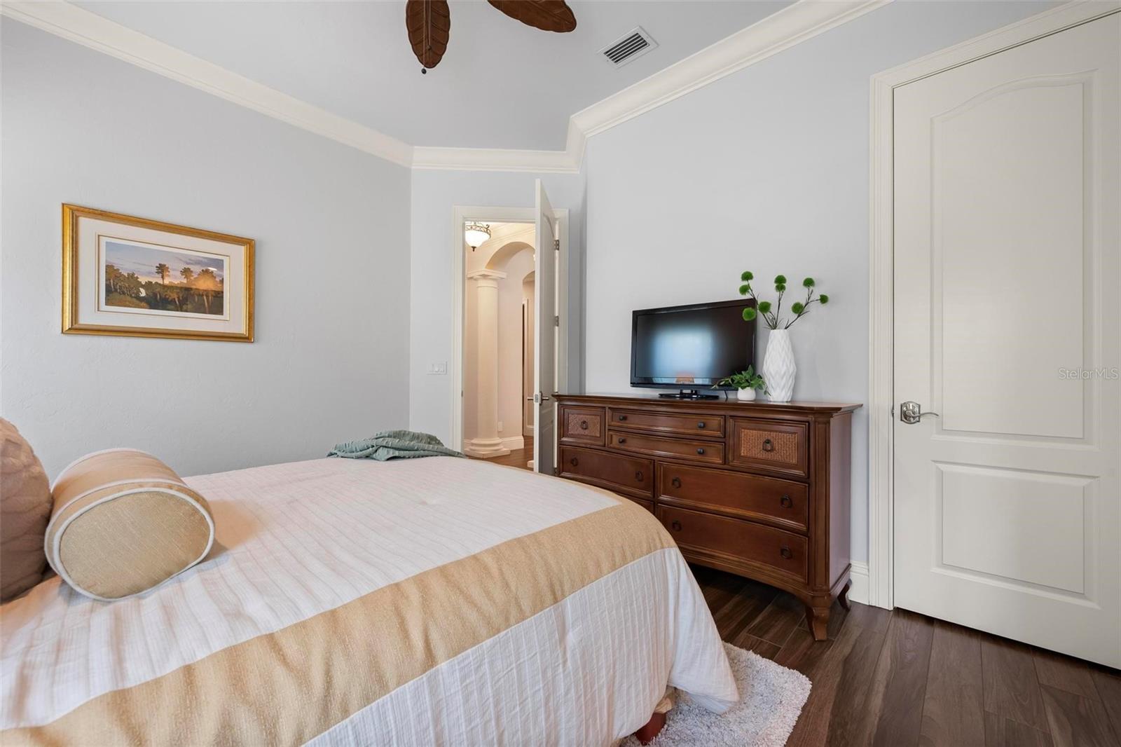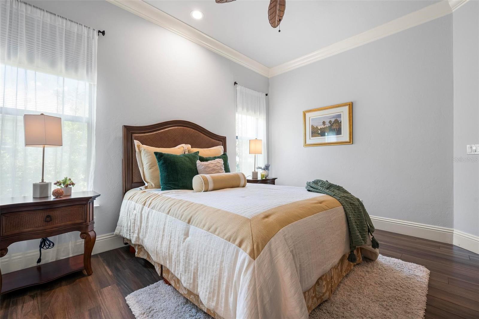 - Ceiling Fans(s), Central Vaccum, Crown Molding, Eat-in Kitchen, High Ceilings, In Wall Pest System, Open Floorplan, Primary Bedroom Main Floor, Solid Wood Cabinets, Split Bedroom, Stone Counters, Thermostat