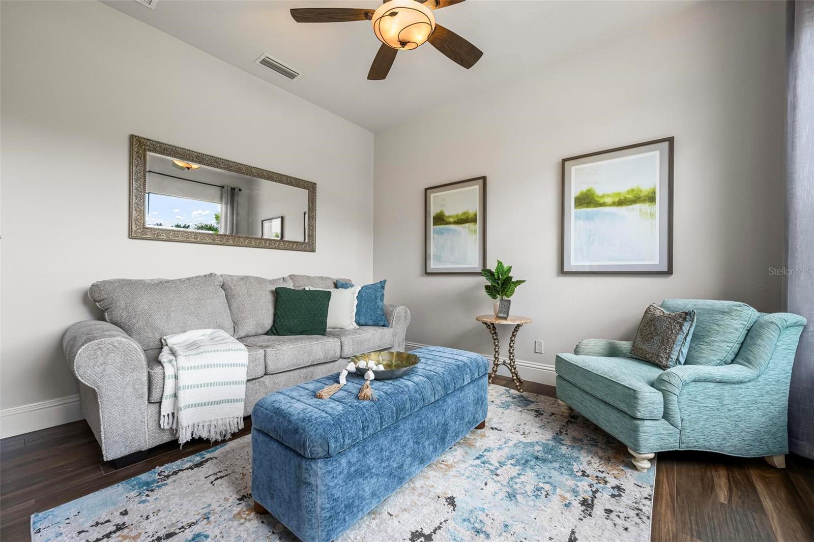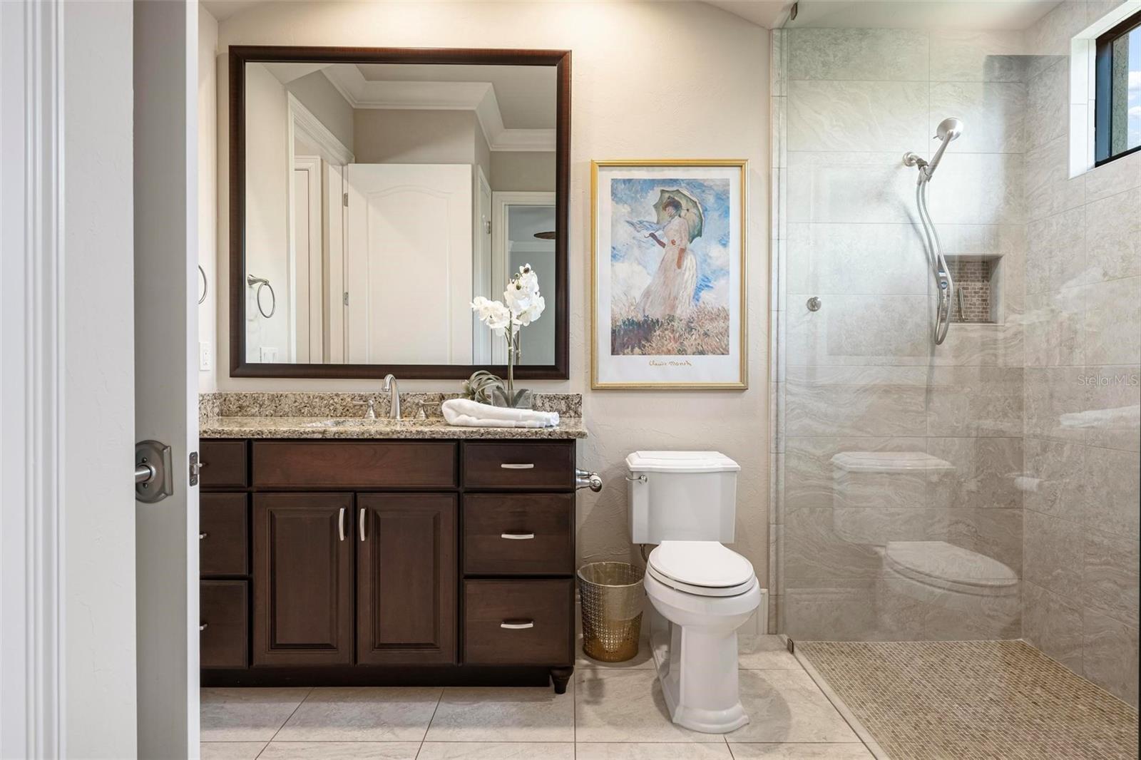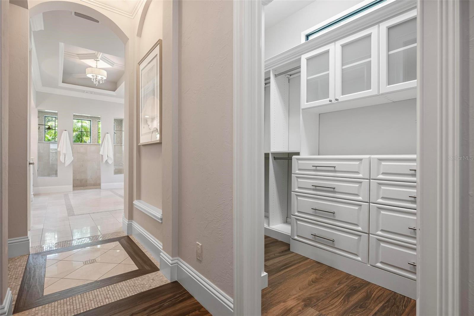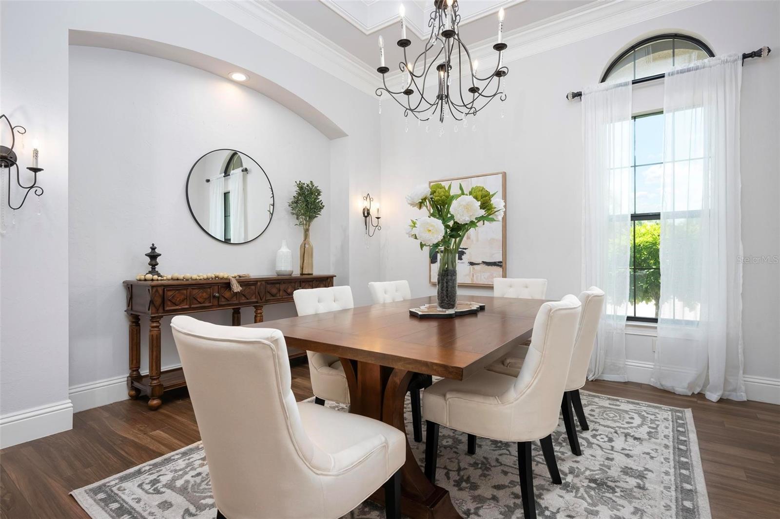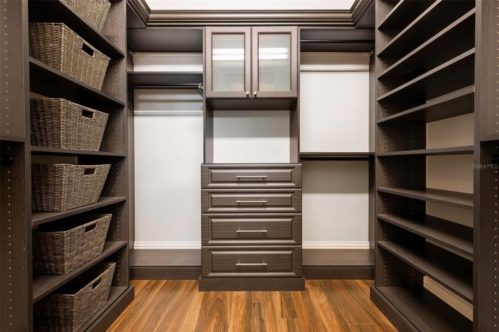 - Ceiling Fans(s), Central Vaccum, Crown Molding, Eat-in Kitchen, High Ceilings, In Wall Pest System, Open Floorplan, Primary Bedroom Main Floor, Solid Wood Cabinets, Split Bedroom, Stone Counters, Thermostat