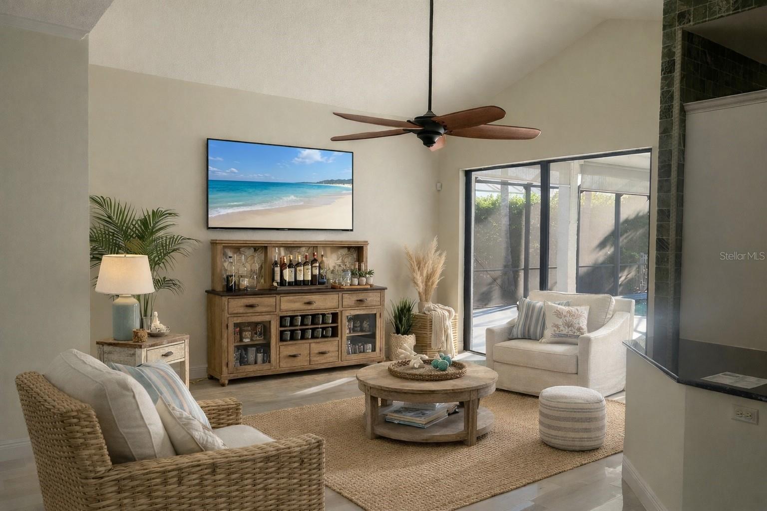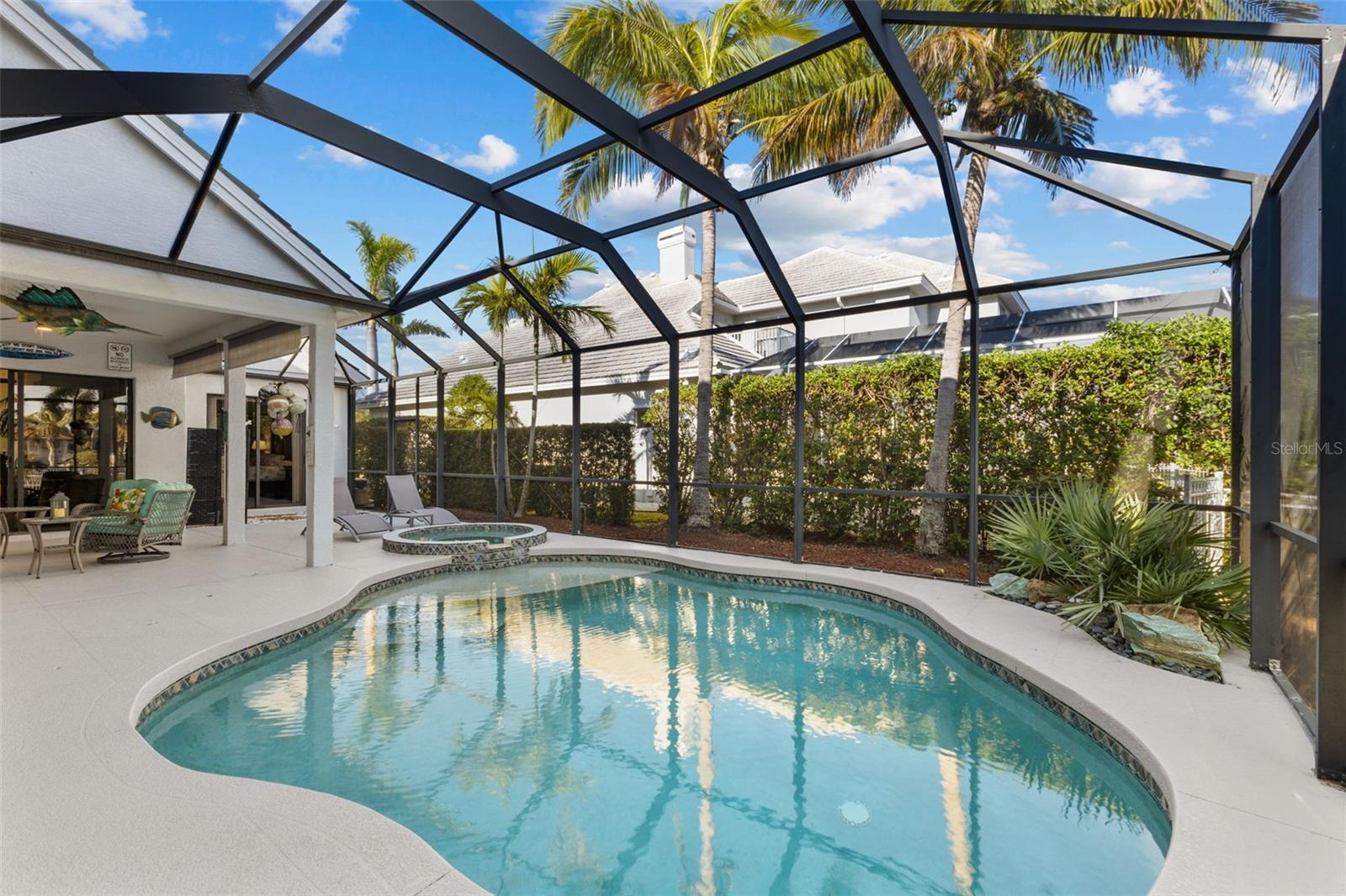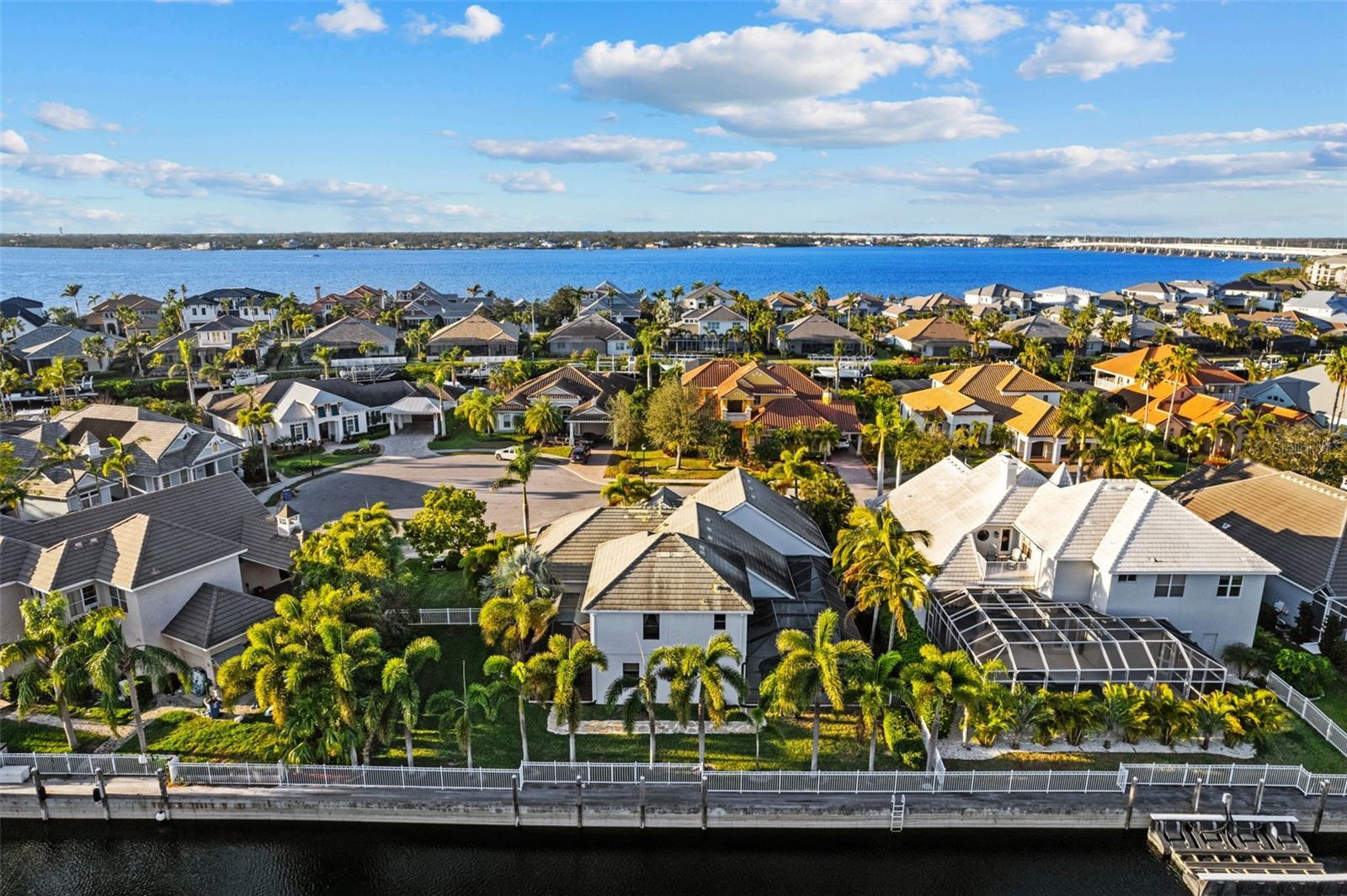Stunning coastal inspired 5 bedroom, 4 bathroom waterfront home with boat dock, pool, spa, 3 car garage and 2 x Lanai's for Sunrise and Sunset. Freshly painted interior. Located in the highly sought after Inlets on the Manatee River, which features tennis courts, kayak launches and a playground, this tastefully updated home has everything you need to live the perfect Florida lifestyle. 4 Bedrooms on the first floor, and an in law suite on the second floor with its own living room, bedroom, full bathroom and a balcony overlooking the water. The boat dock is on a freshwater canal connected through a lift to the salt water. The freshwater dock allows for less maintenance on your boat. This beautifully maintained home has a gas cooktop, double oven and zero corner doors leading from the breakfast dining area to the first screened patio area. A pool, spa and a large TV complete the first lanai with water views and has no other homes overlooking this oasis. The 2nd lanai is perfect for evening sunsets and grilling with private water views. The living room opens on both sides to the 2nd lanai providing a true indoor/outdoor experience. In addition to the 3280 sq ft of living space, There is over 800 sq ft of covered outdoor area with a retractable awning on the west Lanai. The oversized yard is fully fenced in and ideal for pets and children. A full home Generac generator was installed in 2023. There is a new footpath connecting both lanai's on the outside of the home. The Inlets is a friendly riverfront community that is meticulously landscaped throughout with mature palm trees. To top this all off, the community has a LOW HOA and NO CDD This is a true gem. Some photos are virtually staged.