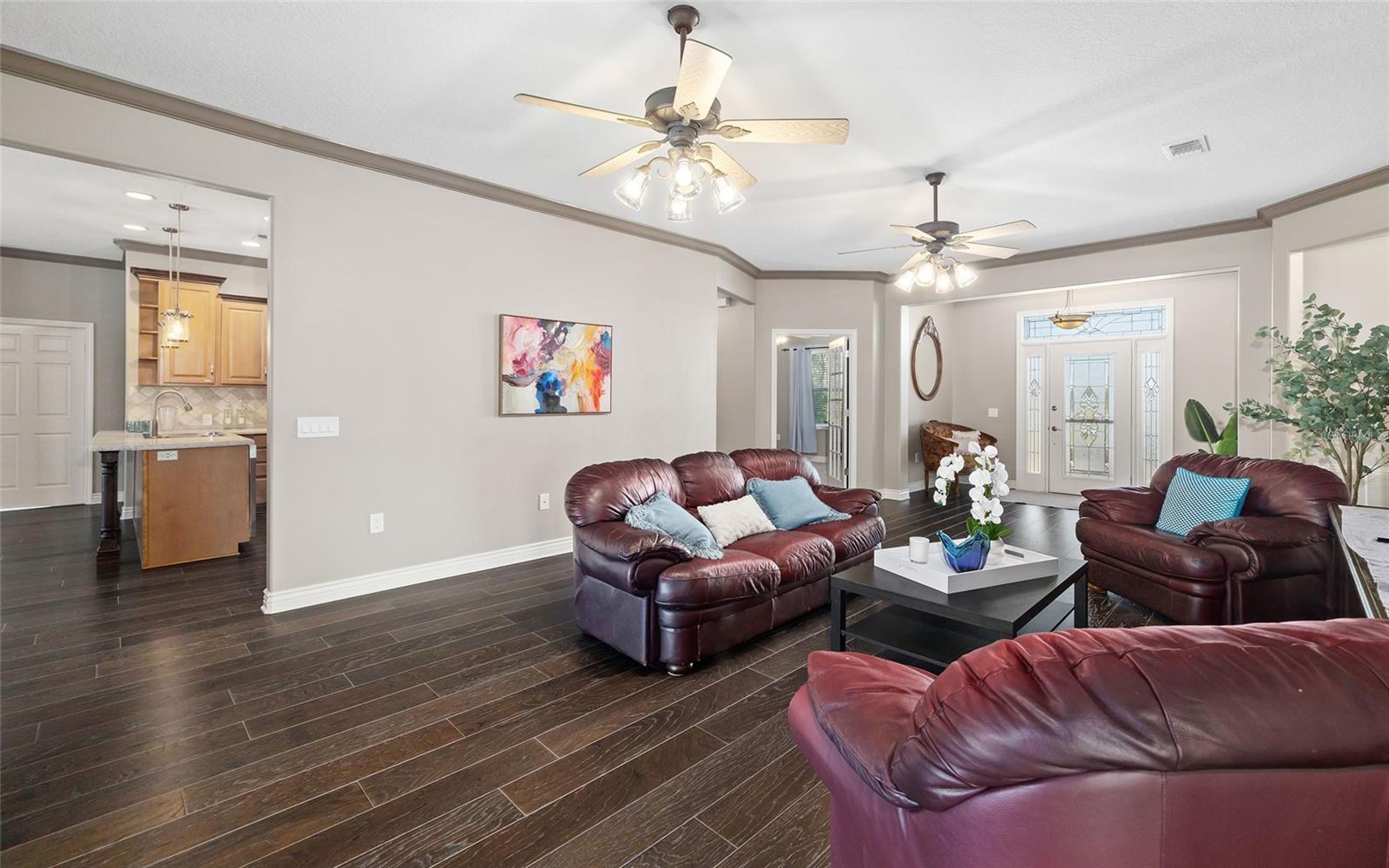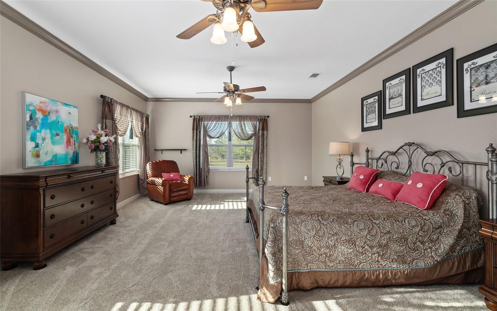 - Built-in Features, Ceiling Fans(s), Crown Molding, Solid Surface Counters, Solid Wood Cabinets, Walk-In Closet(s)