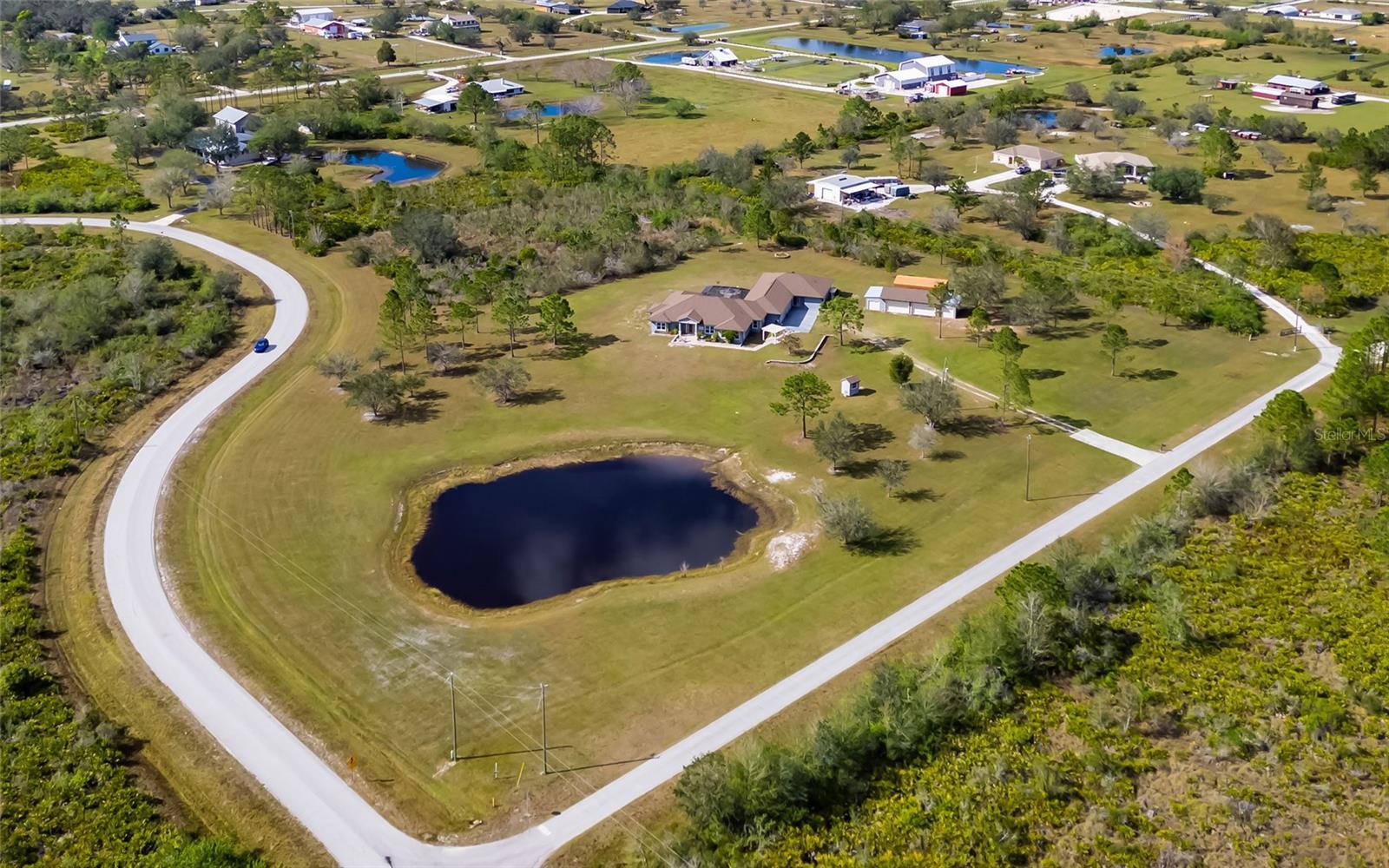 Under contract-accepting backup offers. Privacy. Fresh air. Peace and quiet. Come live a country lifestyle with plenty of room to roam inside and out! Farm animals, poultry, food gardens and wildlife watching are welcome here. At night you can look up and gaze at the brilliance of the star-lit sky. In Myakka City, this 7.3-acre property offers a secluded location just 20 minutes from in-town amenities at Lakewood Ranch and the Interstate 75/SR 70 interchange. This country compound ticks all the boxes. main house with four bedrooms and three baths, separate guest house with two bedrooms and two baths, four-car attached garage, six-car detached garage, oversize carport, well pump shed and freshwater pond. Offering 4,808 square feet of combined living space, the flexible floor plan can be configured to your heart’s desire. Luxury features include engineered hardwood floor in living areas, crown molding, solid wood cabinetry, impact glass windows and doors, built-in fire pit and newer roof in 2020. Both houses are fully independent with separate entrances, kitchens, laundries and covered lanais. They share a screened-in swimming pool and outdoor patio with wood-burning fire pit. The detached 1,000-square-foot, four-car garage has two attached single garages and creates unlimited possibilities for pursuit of hobbies, family life and homesteading. Nature lovers can experience the real Florida in two nearby state parks. Nature walks, bird watching, kayaking and overnight camping are available at Lake Manatee State Park and Myakka River State Park. For those who thrive on outdoor challenges, TreeUmph! Adventure Course for climbing and swinging through the trees is just seven minutes away. In all, come home to an incredible place to live, approved by Mother Nature.