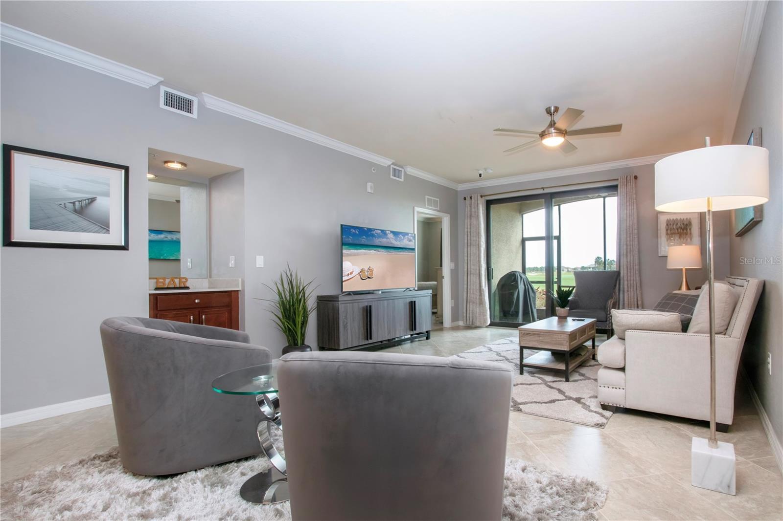 - Ceiling Fans(s), Crown Molding, Eat-in Kitchen, Living Room/Dining Room Combo, Primary Bedroom Main Floor, Thermostat, Window Treatments