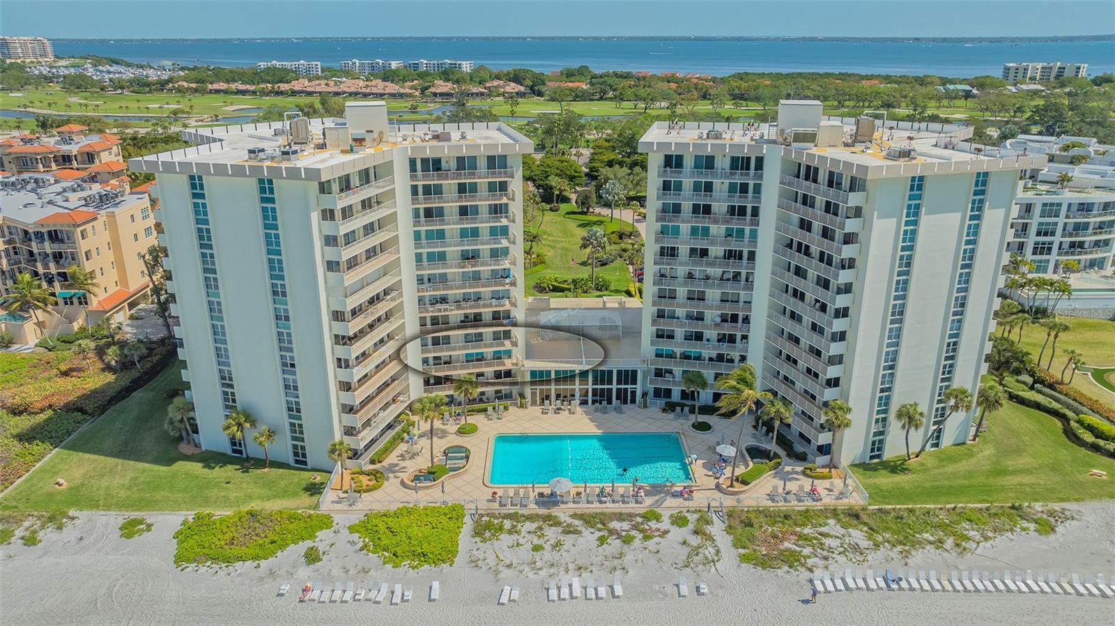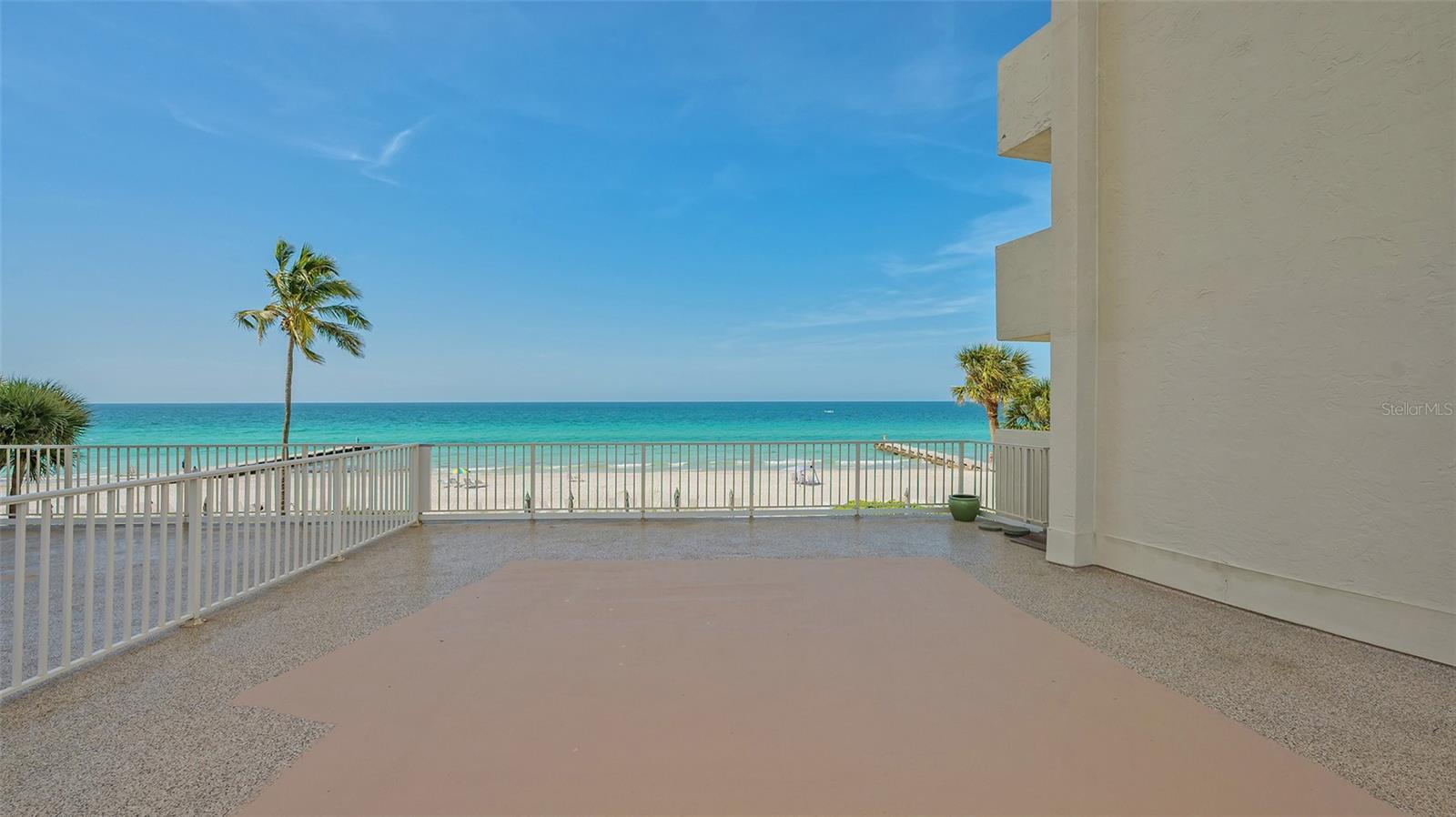 Embrace beachfront living with this two-bedroom, two-bath residence, offering mesmerizing direct views of the Gulf of Mexico. An exceptional feature is the oversized private terrace with breathtaking ocean views, a rarity in beachfront properties. Your private rooftop terrace seamlessly connects to your balcony, extending your outdoor oasis to over 60 feet. Imagine stepping outside and being greeted by the gentle sea breeze, with the vast expanse of the ocean stretching out before you in all its splendor. This generous space offers the ideal retreat for enjoying the coastal lifestyle to the fullest. Whether you're hosting lively gatherings with friends or simply unwinding, you'll have ample room to spread out and make the most of this idyllic setting without leaving the comfort of your home. Retreat to the spacious primary suite, where panoramic ocean views and an en-suite bath redefine serenity. The second bedroom serves as an inviting guest retreat or productive home office. The open-concept living and dining area are for entertaining or simply relaxing while taking in the incredible scenery. The kitchen is equipped with stainless steel appliances and abundant cabinet space for all your culinary needs. The Islander Club is a sought-after community with 400 feet of private beach frontage. Islander Club offers residents on-site management, a heated pool, renovated clubhouse, billiards and table tennis room, fitness center, saunas and two Har-Tru tennis courts. The shopping, dining and cultural attractions of St. Armands Circle and downtown Sarasota are just a short drive away.