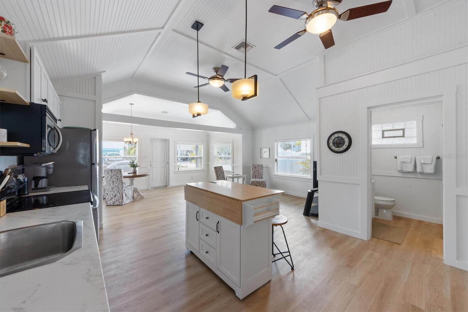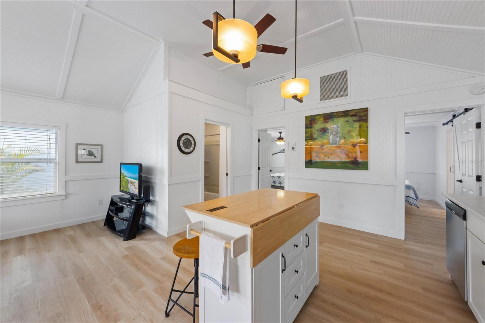 - Cathedral Ceiling(s), Ceiling Fans(s), Chair Rail, Eat-in Kitchen, High Ceilings, Kitchen/Family Room Combo, Living Room/Dining Room Combo, Open Floorplan, Primary Bedroom Main Floor