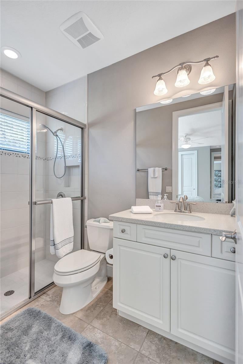 - Ceiling Fans(s), Central Vaccum, Coffered Ceiling(s), Crown Molding, Open Floorplan, Pest Guard System, Primary Bedroom Main Floor, Solid Surface Counters, Split Bedroom, Stone Counters, Thermostat, Tray Ceiling(s), Walk-In Closet(s), Window Treatments