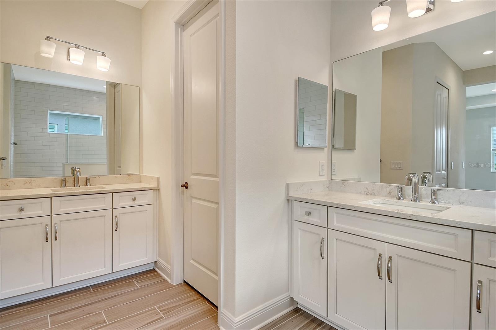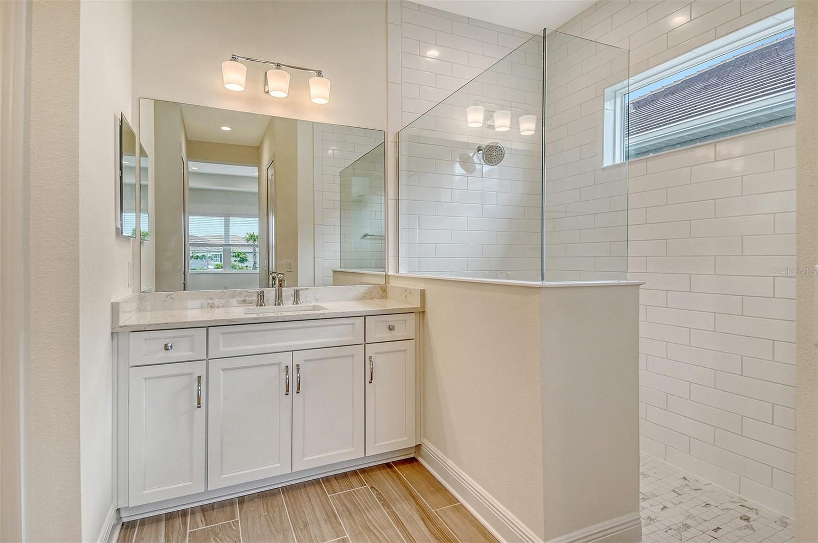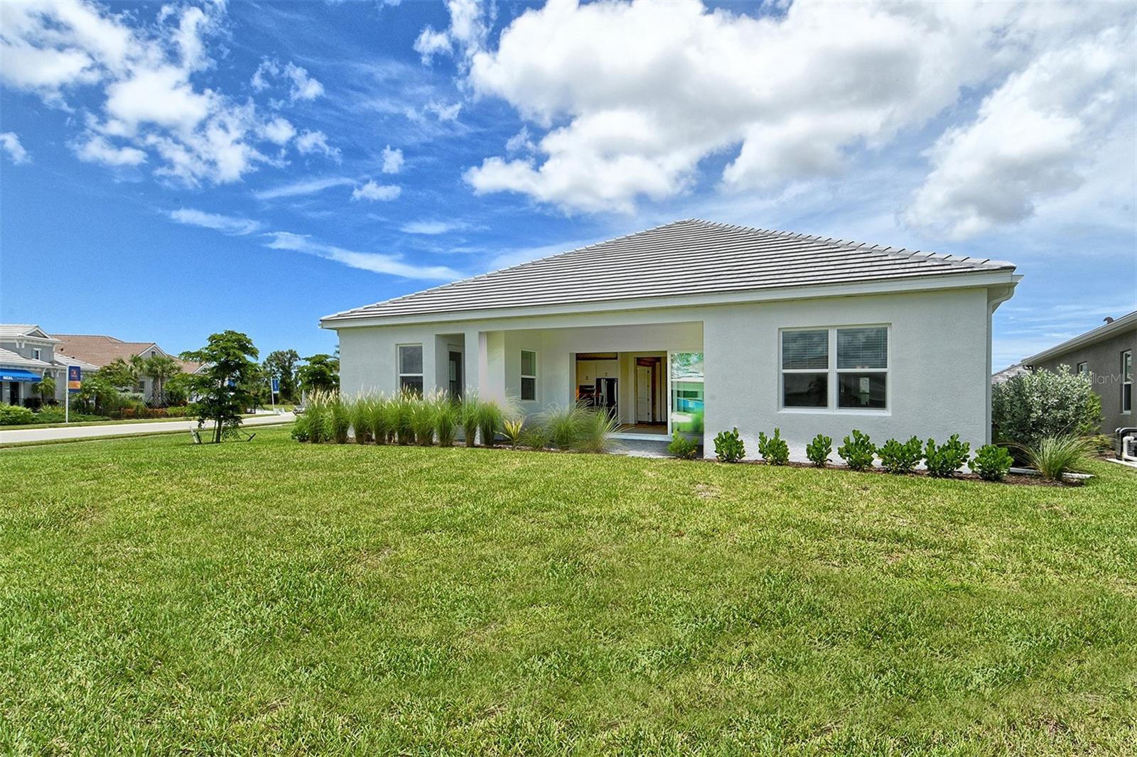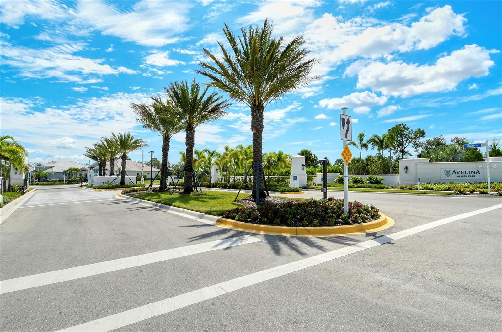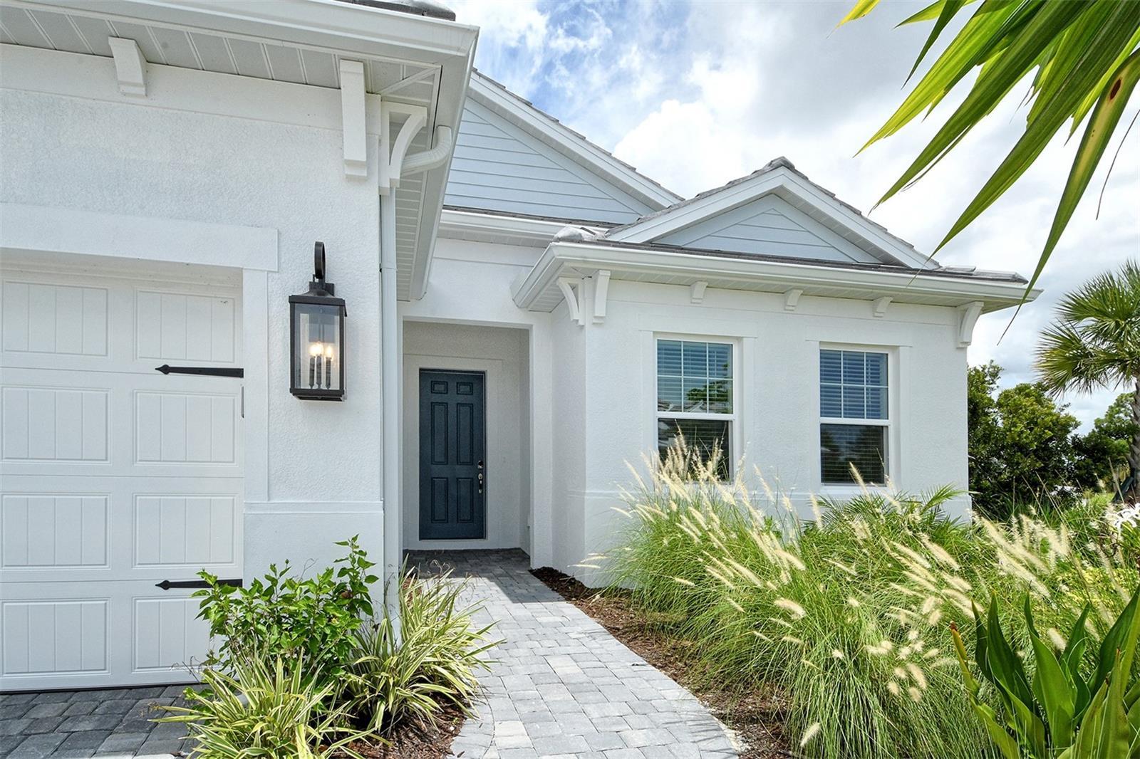 One or more photo(s) has been virtually staged. The Silver Sky Floorplan is perfect for a family, entertaining or extra room for guest's. The foyer/ gallery entry makes an elegant impression leading to an open great room/dining area with sliding glass doors and pool bath. This home includes a den with double swing doors, a large utility room, guest room with en suite, a luxurious master suite that has two walk in closets and two secondary bedrooms. The large covered lanai has a gas stub for grilling and dedicated circuit for refrigerator at outdoor kitchen. A two foot garage extension was added. This spacious new home design is located on a corner homesite with extra green space behind and beside the home providing additional common area on two sides of the home. Conveniently located near a gated entry to go for a bicycle ride, golf cart or take a stroll Downtown Wellen Park close by.