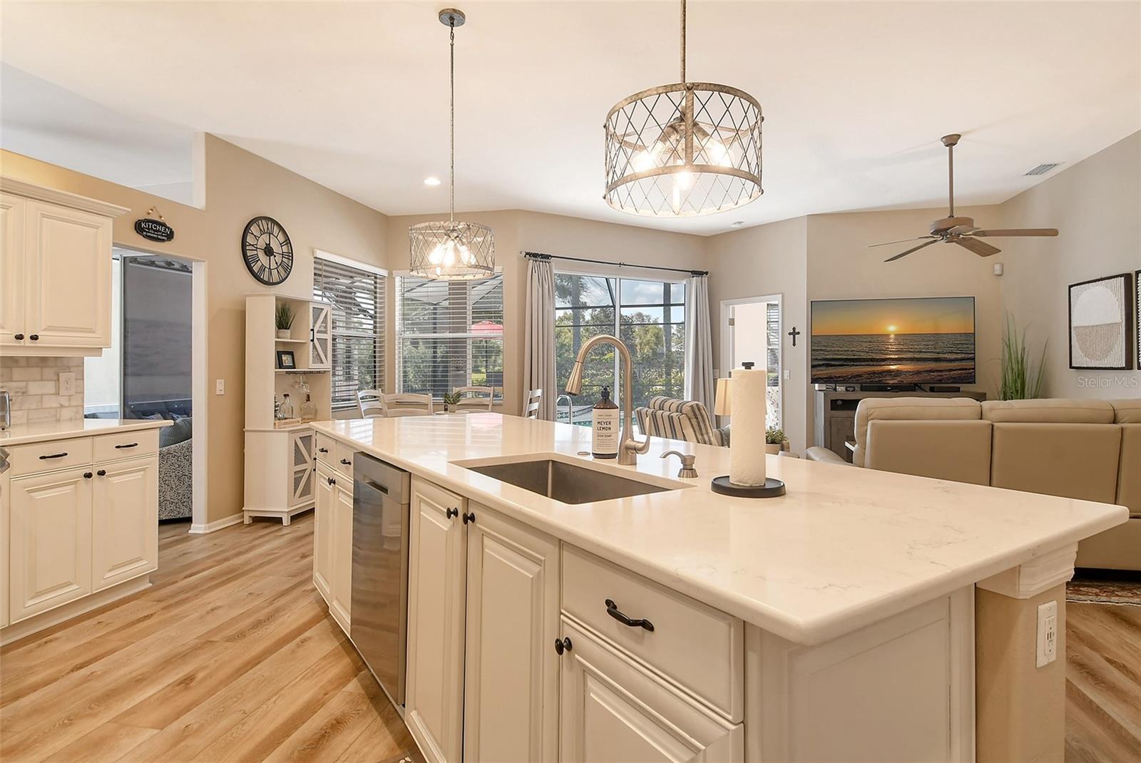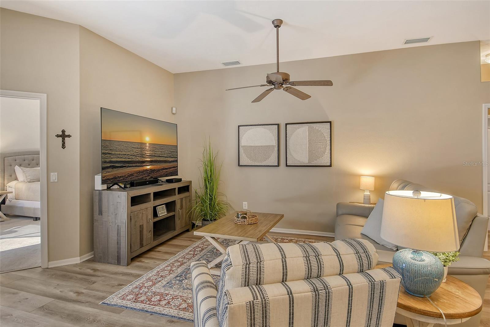 This beautifully updated 3 bedroom, 3 bath pool home, is Located on the golf course, it has a fabulous split open floor plan with a living room/dining room combination and sliding glass doors leading out to the lanai/pool area, spacious combined family room, and kitchen with quartz counters, stainless steel appliances, breakfast bar that seats 4 plus, and an additional breakfast seating area. Leading from the family room you will find the large master bedroom with a king-size bed, walk-in closet, sliders which open onto the pool area, en-suite bath with walk-in shower and separate jacuzzi tub, + 2 separate vanity sinks. The separate guest quarters, both with queen beds, and each has its own bathroom, one with tub/shower and one with walk-in shower. Step outside from the living room sliding glass doors to your private oasis, a covered relaxing seating area with mounted tv, grill, and ceiling fan, leading to the heated sparkling pool and spa, surrounded by lush landscaping. Relax and enjoy this tranquil oasis, with views of the golf course (12th hole) while soaking up the warm Florida sun! The home comes with Full Golf & Social membership to Tara Golf and Country Club where you can enjoy all the amenities, Golf, Tennis, Pickle Ball, Full Fitness Center, Bocce Ball courts, and an active Clubhouse that has daily events, fine dining and a grill room, a pro-shop, driving range, putting green and firepit, and so much more! This community is centrally located with easy access to I-75, shopping, dining, and a short drive to Sarasota/Bradenton International Airport, UTC Mall, the Ringling Museum, downtown Sarasota, and some of the most beautiful beaches in Southwestern Florida, including the world-renowned Siesta Key Beach with its crystal quartz powdery sand and turquoise blue waters of the Gulf of Mexico! Sorry, no pets allowed. 3-month minimum, with Full Golf & Social Membership Transfer.