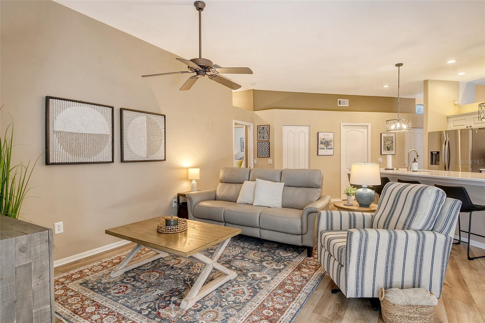 - Ceiling Fans(s), Eat-in Kitchen, Kitchen/Family Room Combo, Open Floorplan, Solid Surface Counters, Split Bedroom, Walk-In Closet(s), Window Treatments