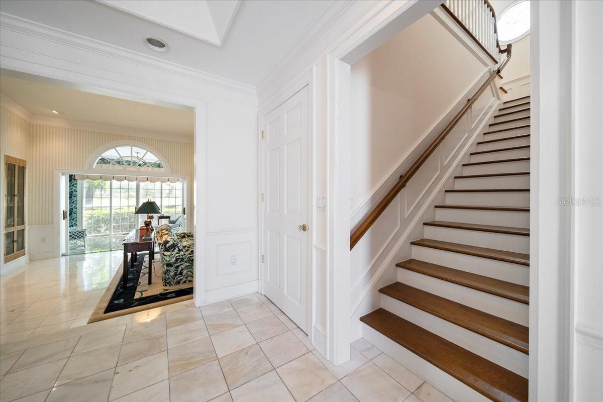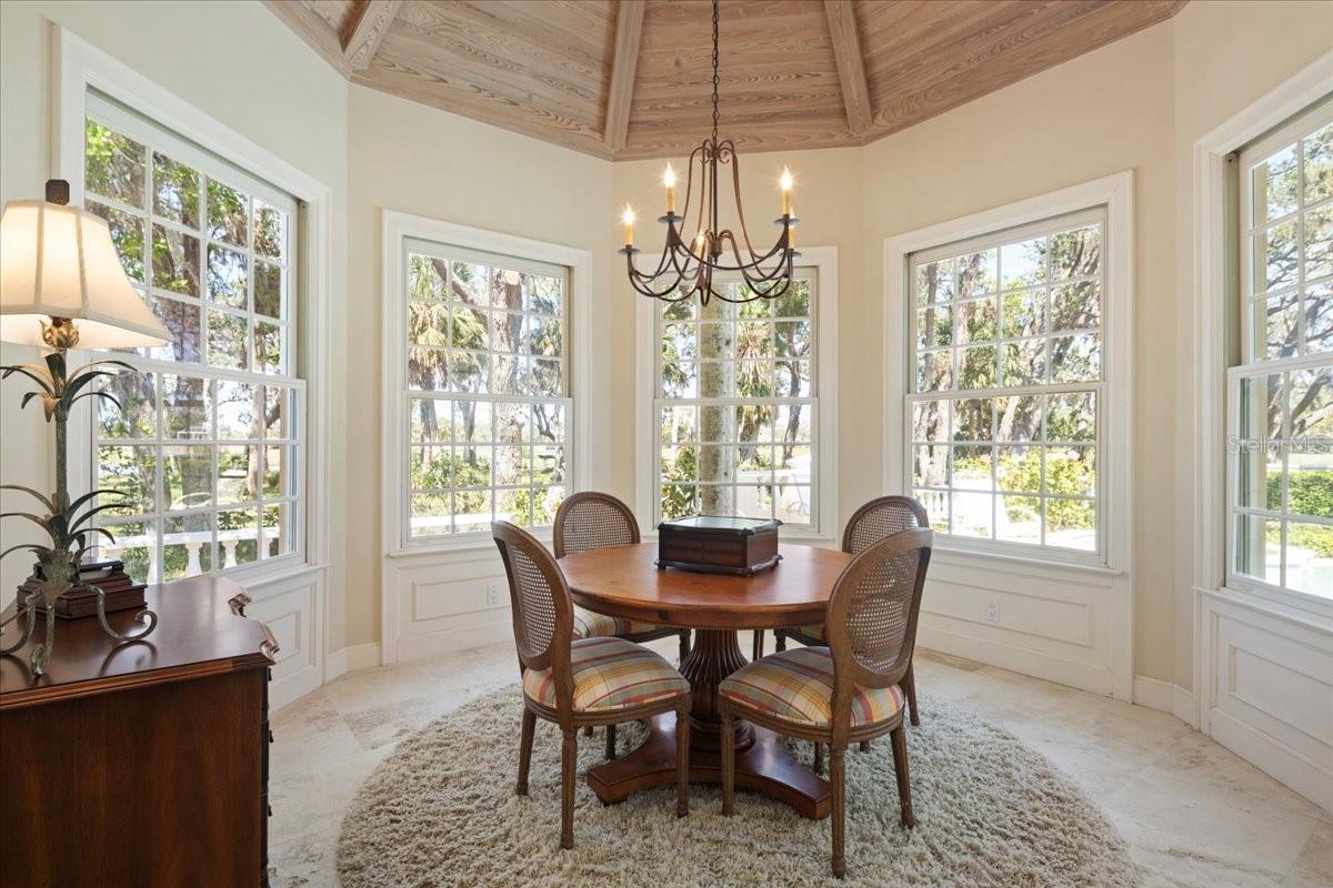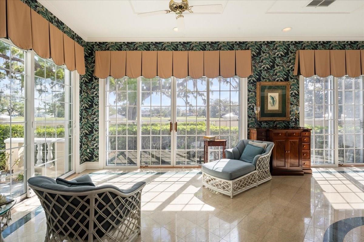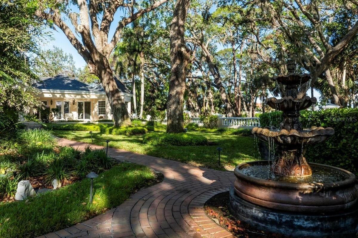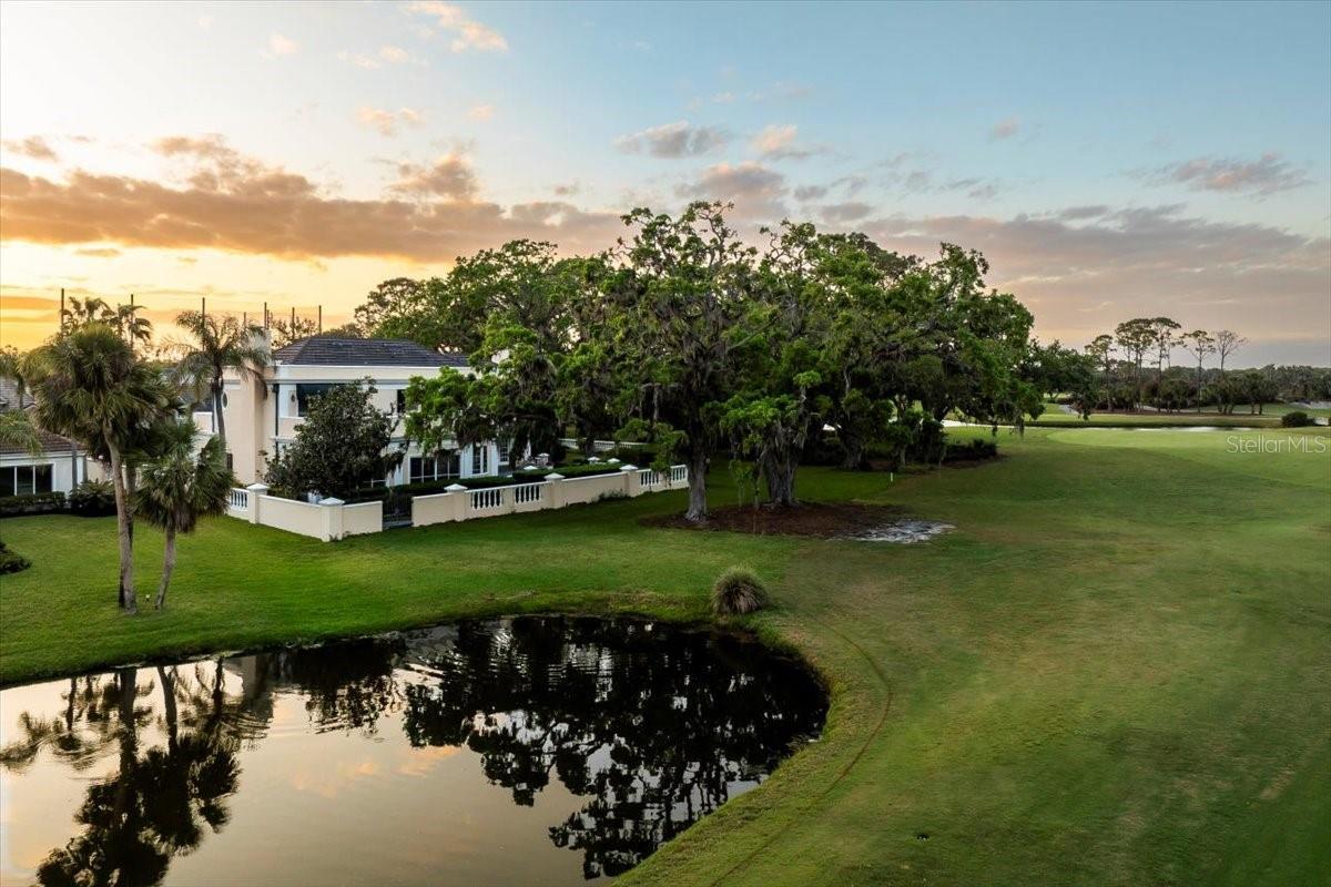 Tucked away in a quiet cul-de-sac on a sprawling double lot beneath majestic oaks, this nearly 5,000 sq ft timeless 2-story residence blends classic elegance with modern luxury. Perfectly positioned on the first hole of one of Sarasota’s most sought-after golf courses, the home showcases soaring 11-ft ceilings, gleaming marble floors, and dazzling crystal chandeliers. A Louis XVI fireplace anchors the dramatic sunken living room, while French doors and expansive windows flood the sunroom with natural light and frame sweeping golf course views. Step outside to three inviting patios—ideal for sunset cocktails, lively gatherings, or peaceful mornings overlooking the greens. A brick path winds through lush, manicured gardens to the expansive guest house, creating a true family compound that offers exceptional flexibility for hosting guests or multigenerational living. The nearly 2,000 sq ft guest house features 2 bedrooms, 2 en-suite bathrooms, a generous living room, dining room, outdoor kitchen, and a private laundry room. Overlooking the sparkling pool and spa, this retreat combines privacy with convenience—perfect for extended stays, visiting family, or an in-law suite. The Oaks Club elevates the lifestyle even further with two 18-hole championship golf courses, fitness center, exceptional dining options, a vibrant calendar of social events, and world-class tennis and pickleball facilities. Ideally located near Casey Key and the powdery white sands of Siesta Key, and just a short drive to Downtown Sarasota’s thriving arts scene and the boutiques of St. Armands Circle. Membership at The Oaks is required.