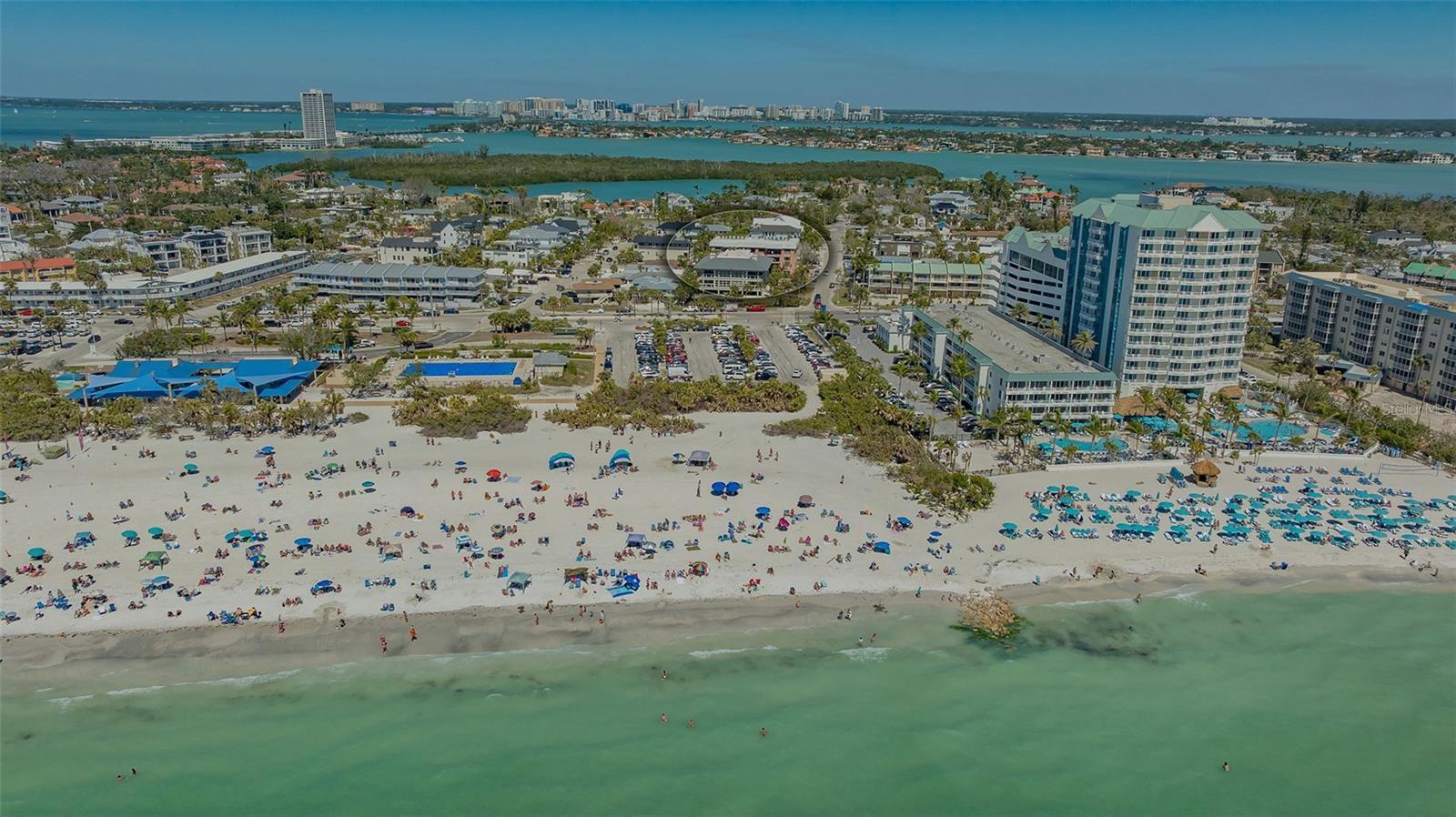 This bright and inviting 1,200 sq. ft. condo is perched on the top fourth floor of the Riviera of Lido Beach, a charming 14-unit complex just steps from the powdery sand of Lido Beach. Large windows fill the space with natural light, while the private terrace offers picturesque city views and stunning sunrises. The updated kitchen features stone countertops and a breakfast bar, perfect for casual dining or entertaining. Both bedrooms offer private full bath access, and the in-unit laundry room adds extra convenience. The well-maintained complex includes a private pool, reserved parking with a storage closet, fenced grounds, and a generator for added peace of mind. Recent updates include hurricane rated windows and slider doors. Complex also has new entry doors. Located just across the street from Lido Beach, this condo offers easy access to sun and surf, while a nearby public kayak launch provides the perfect spot for water adventures. St. Armands Circle, known for its vibrant mix of dining, shopping, and entertainment, is just a short walk away. Downtown Sarasota, with its renowned arts scene and waterfront charm, is only a quick drive, along with Sarasota-Bradenton International Airport for added travel convenience. Experience the best of Lido Key living.