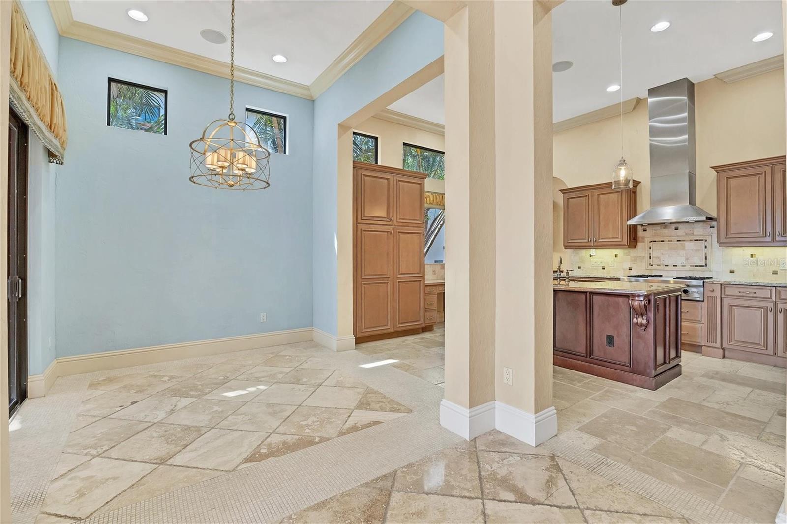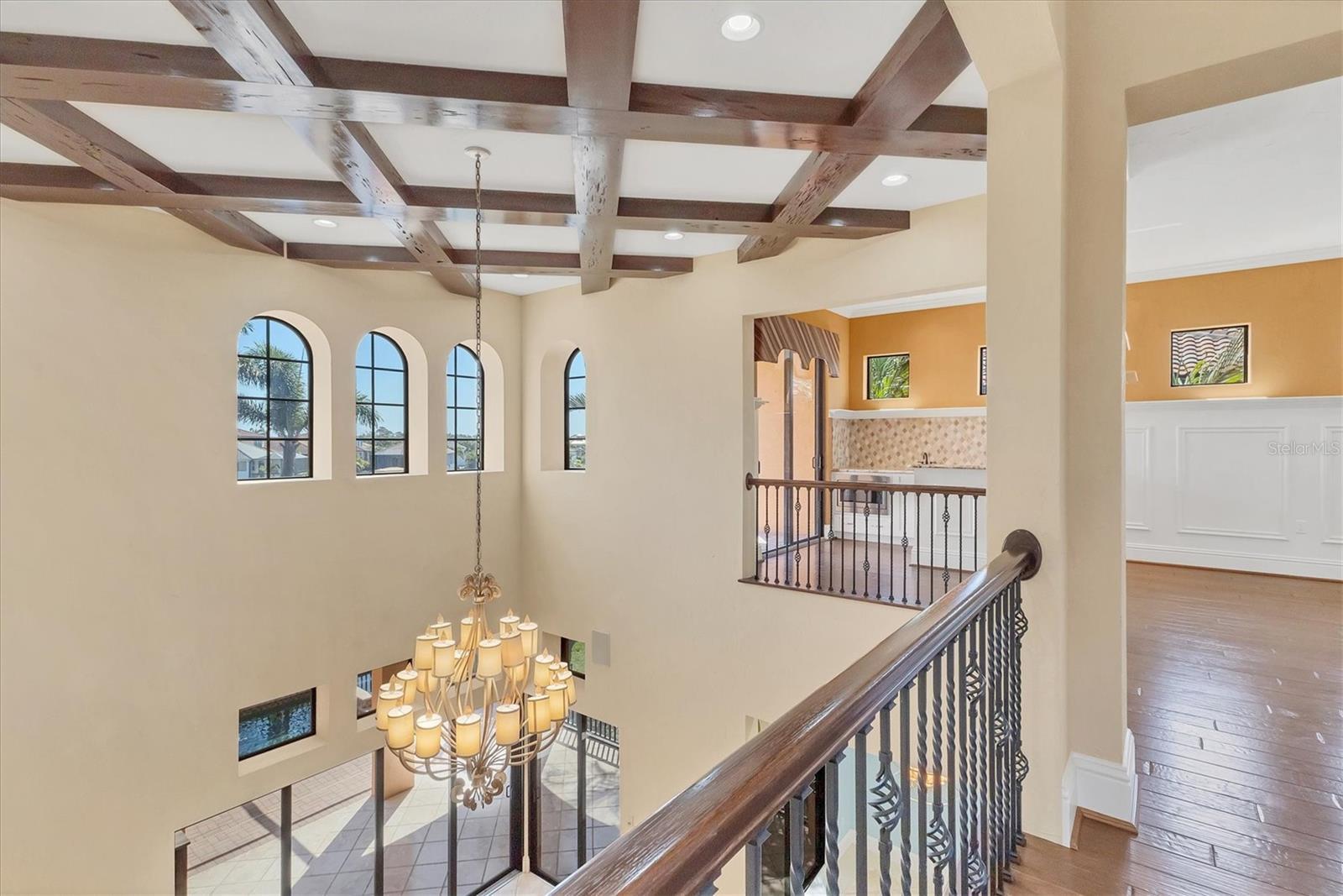 - Built-in Features, Cathedral Ceiling(s), Ceiling Fans(s), Central Vaccum, Crown Molding, Eat-in Kitchen, Primary Bedroom Main Floor, Split Bedroom, Stone Counters, Tray Ceiling(s), Vaulted Ceiling(s), Walk-In Closet(s)