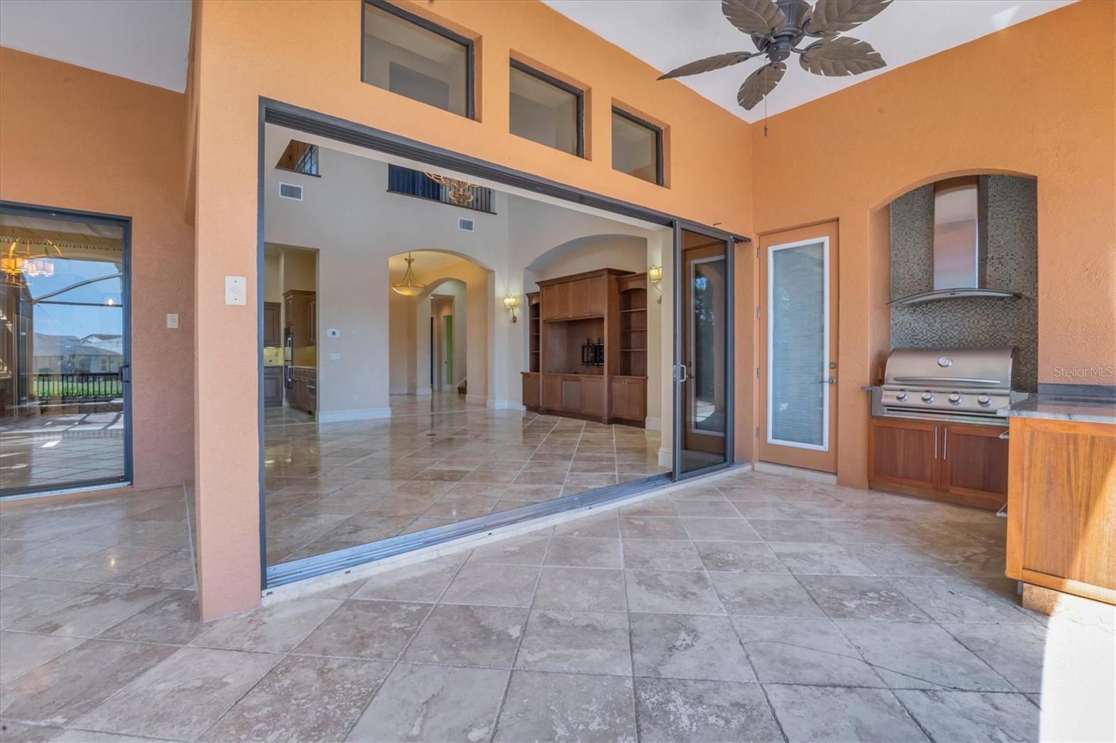 - Balcony, French Doors, Hurricane Shutters, Outdoor Grill, Outdoor Kitchen, Rain Gutters, Sidewalk, Sliding Doors