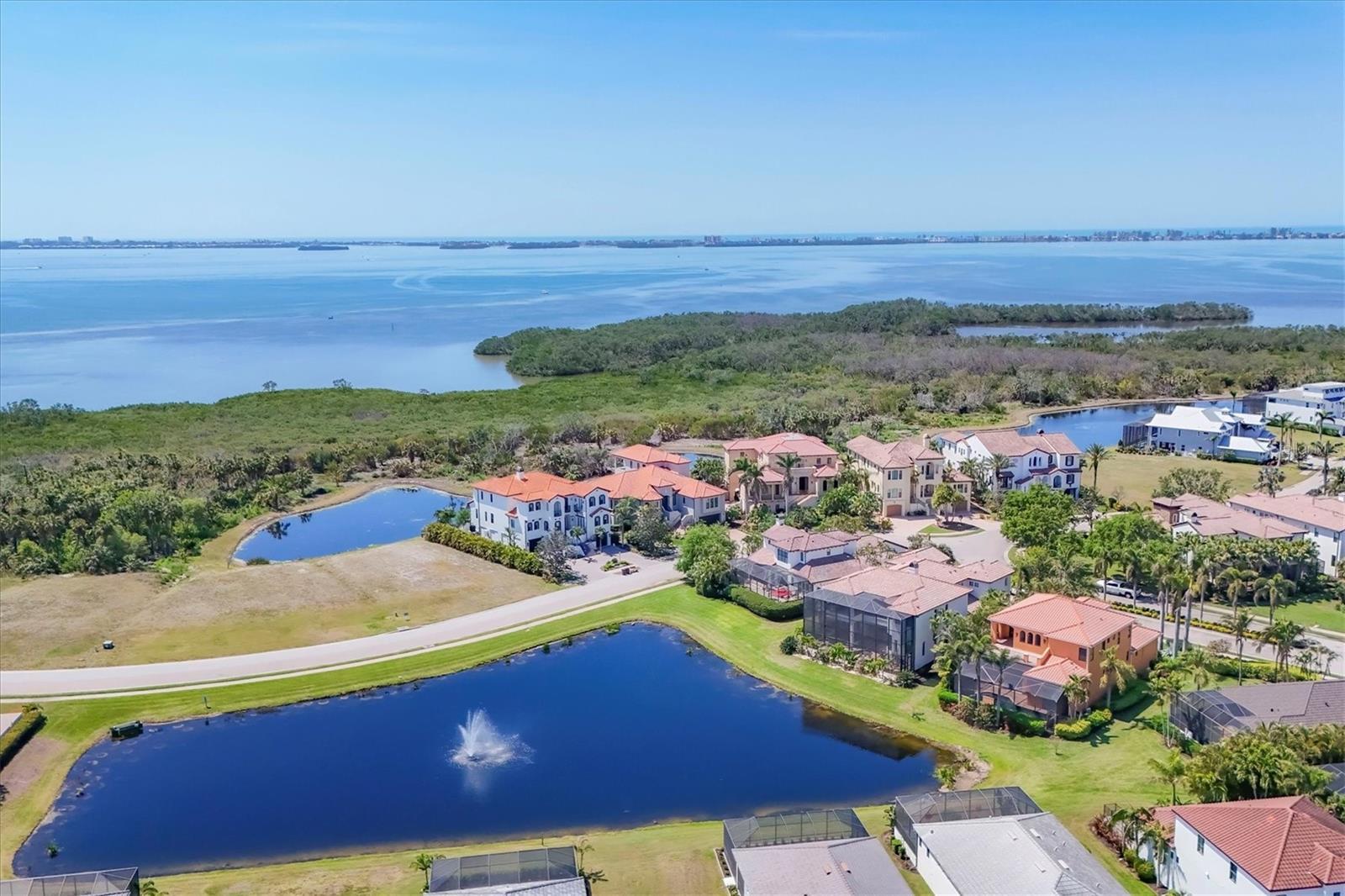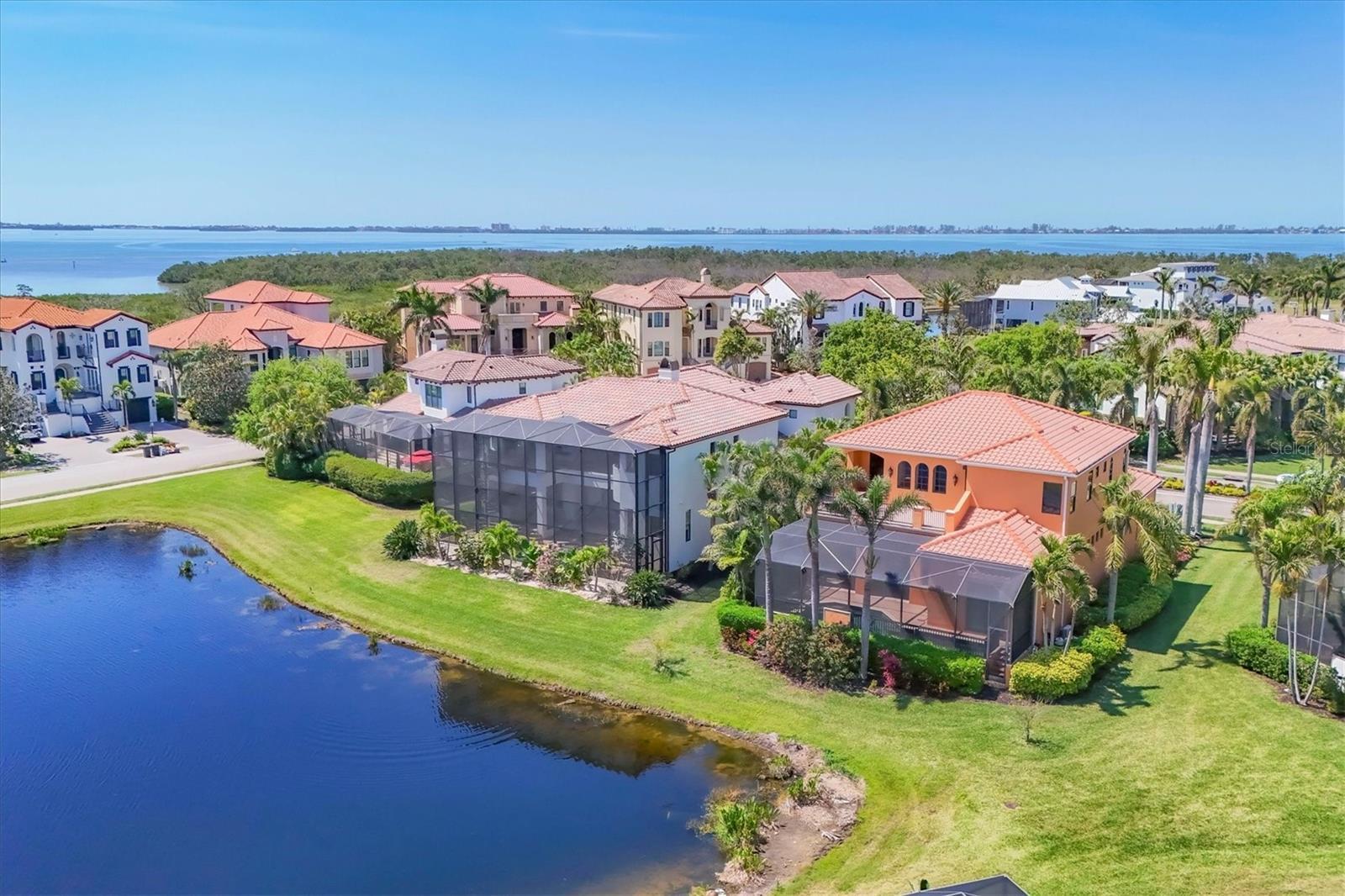 $100,000 Price Reduction! Seller Motivated! Exquisite Former Gibraltar Model with Sarasota Bay Views! Welcome to this stunning home showcasing high-end designer finishes and thoughtful upgrades throughout. Located within the gated community of Legends Bay, this meticulously maintained lakefront estate offers breathtaking views of Sarasota Bay, and is just minutes from world-renowned IMG Academy. Enjoy a highly functional floor plan featuring four private bedrooms. This home offers true four spacious bedrooms, providing ample private space for family and guests. Inside, you'll find a seamless blend of elegance and functionality, with soaring ceilings, hardwood flooring and travertine throughout. The open floor plan seamlessly connects the living area, offering a perfect space for both family gatherings and entertaining guests. The main level boasts a two luxurious en-suites, each with dedicated split A/C units for personalized comfort. The gourmet kitchen is a chef's dream, featuring Sub-Zero, Wolf, and Bosch appliances. Additional highlights includes a Sonos surround sound system, a central vacuum system, a 200-amp whole-house generator, new 75 gallon water tank, and a whole-house reverse osmosis system. The second level oasis offers 2 additional bedrooms, a spacious loft, game room, wine refrigerator, and an expansive balcony perfect for enjoying the serene bay views. The outdoor living space is just as spectacular designed for relaxation and entertainment, featuring expansive pocket sliders, a fully equipped summer kitchen with two beverage coolers, and new grill, and a beautifully designed outdoor bathroom. Enjoy year-round resort- style living with a heated pool and spa enhanced by a pool cage lighting system. This maintenance-free community offers a private clubhouse with a resort style pool and a scenic boardwalk leading to a fishing pier on Sarasota Bay. This exceptional home is conveniently located near world-class Gulf Coast beaches, premiere golf courses and country clubs, tennis facilities, Sarasota-Bradenton International Airport, Museums, Theaters, Performing Arts, fine dining and shopping. Experience the best of Florida luxury and coastal elegance!