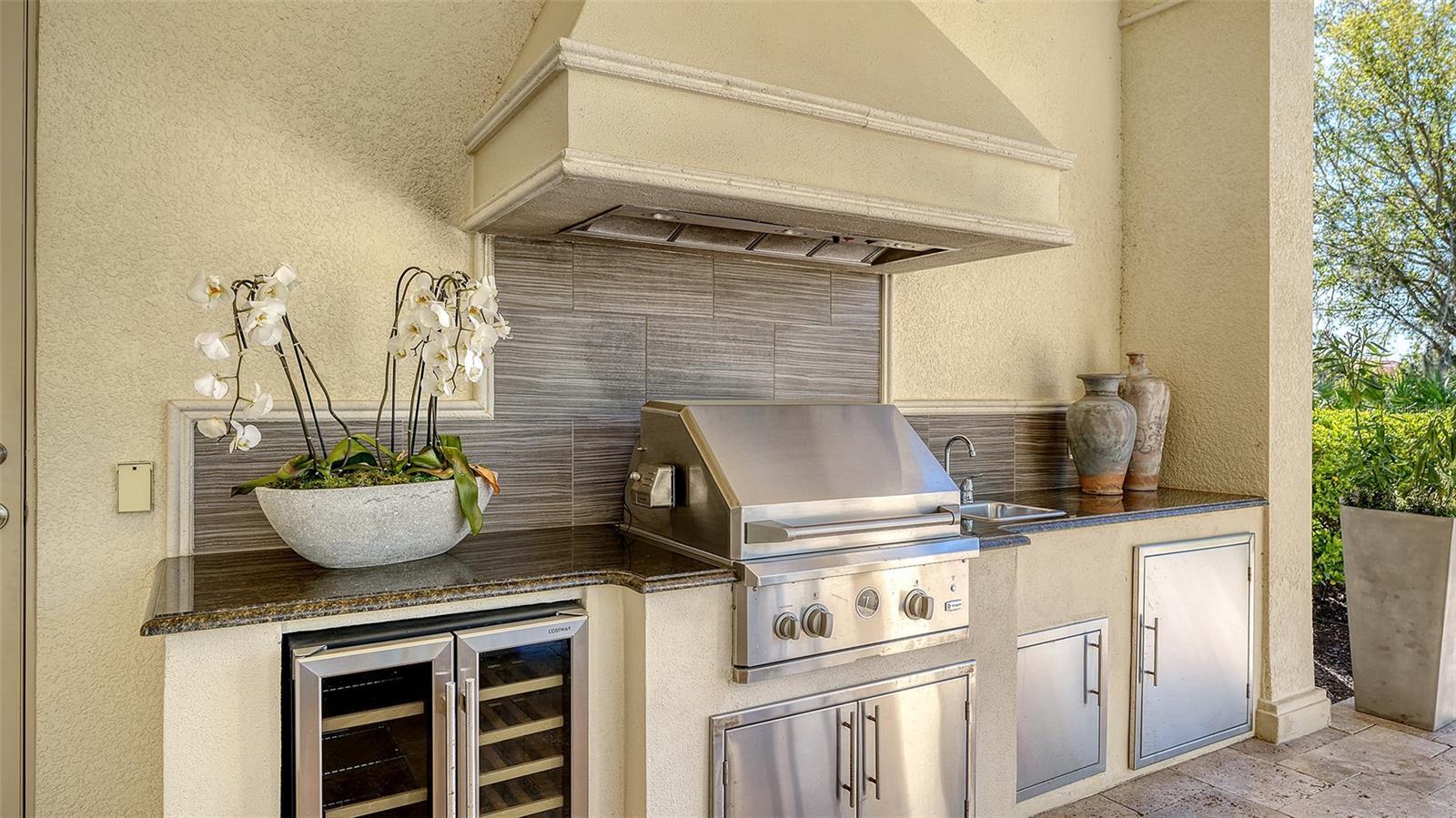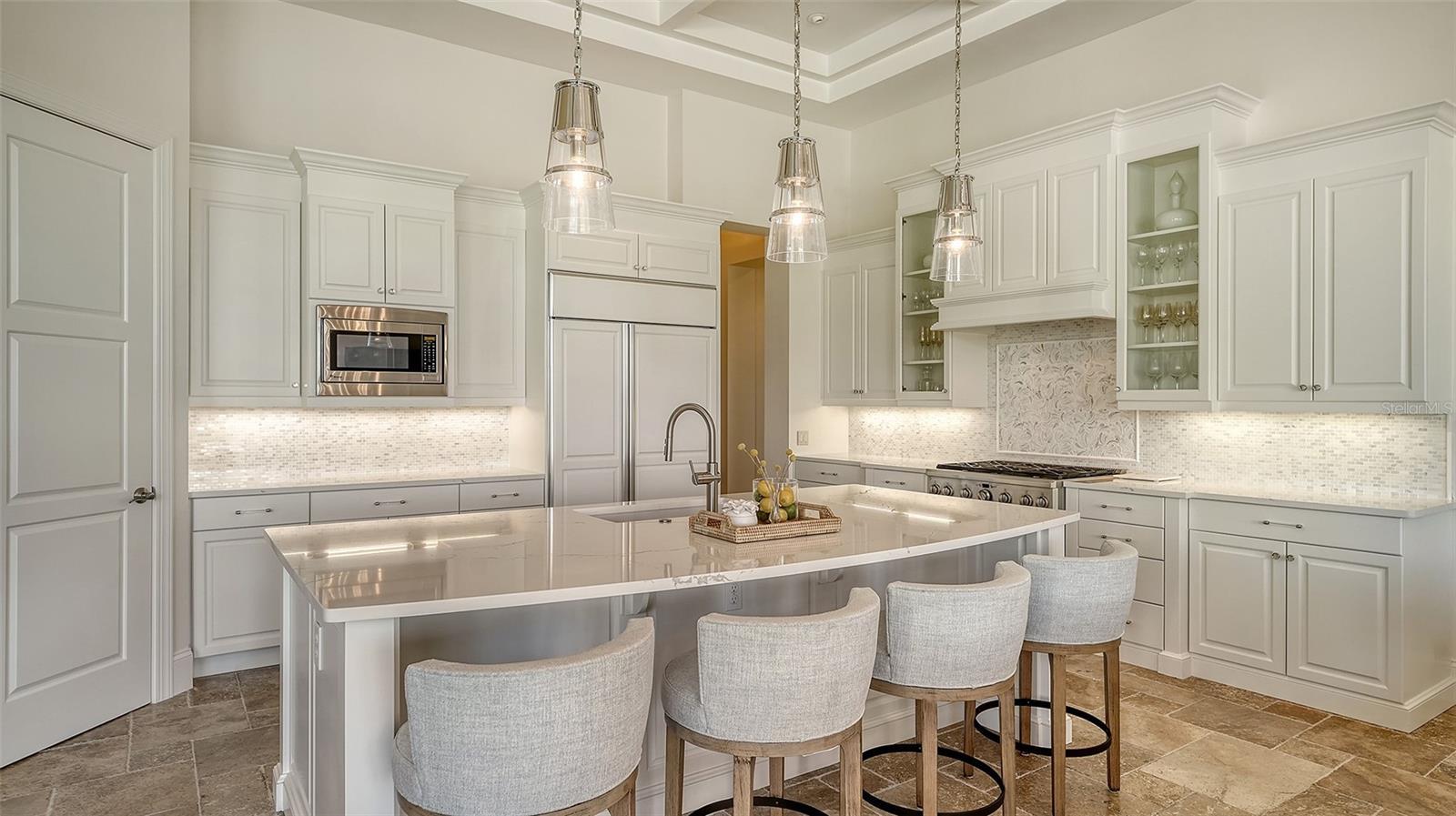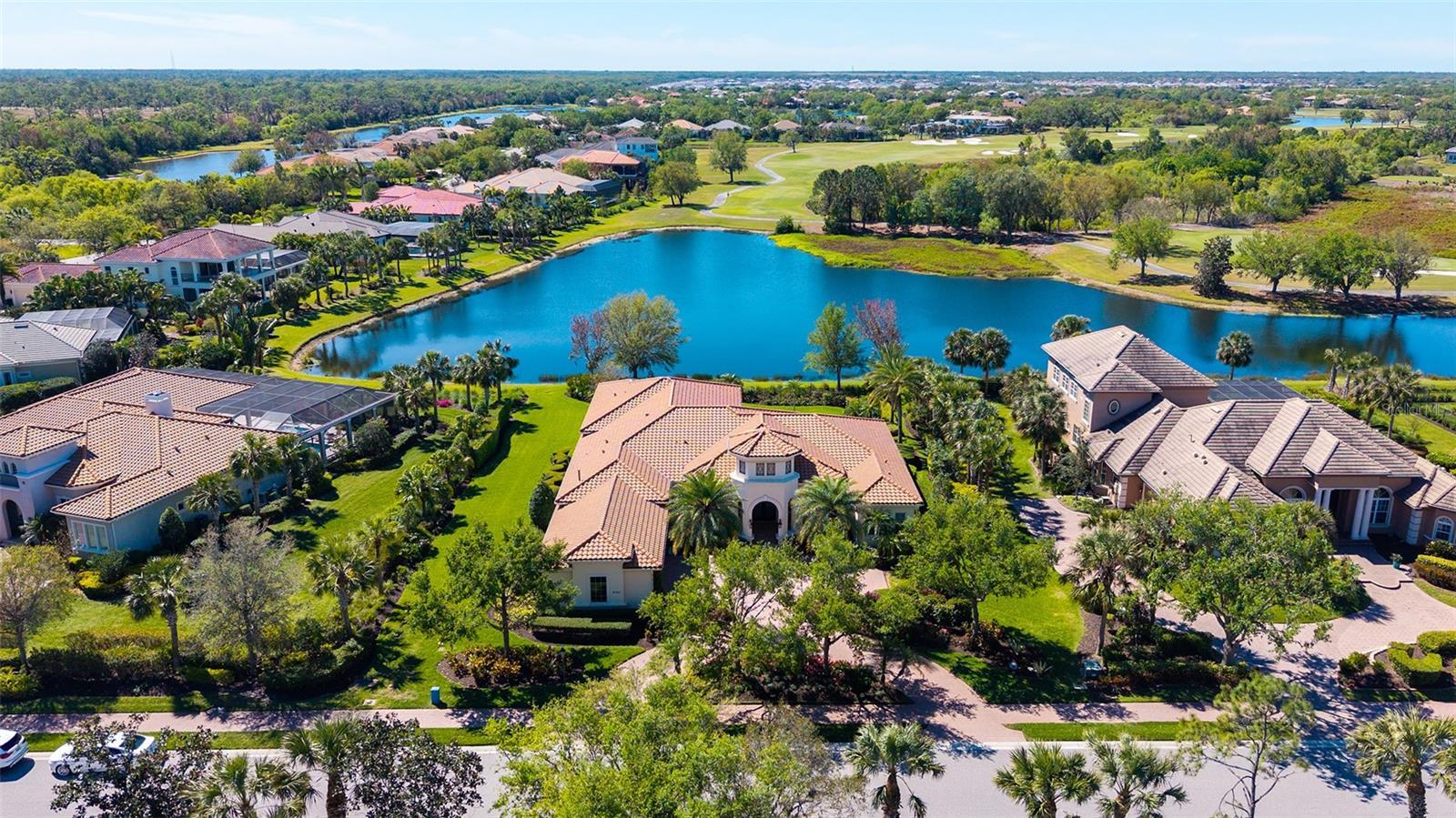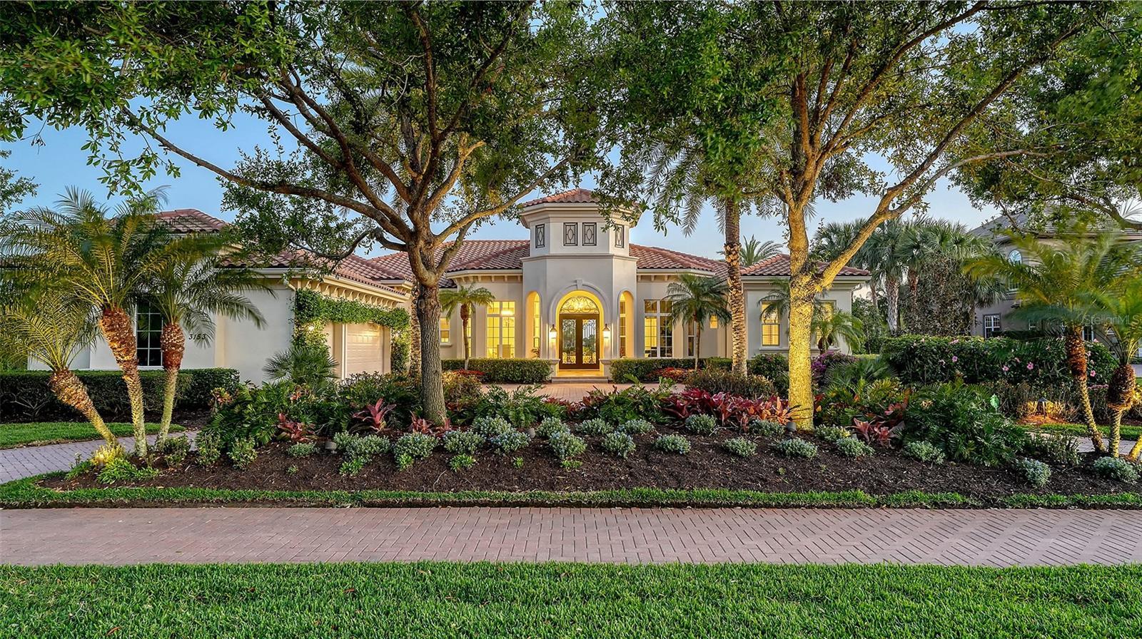Timeless elegance meets modern luxury in this stunning 4-bedroom, 4.5-bath CERTIFIED FLORIDA GREEN custom home, situated on a private, fenced lot of over half an acre in the prestigious “Estates” section of Sarasota’s finest, The Founders Club. The Founders Club is an award-winning private member-owned golf club community offering 24 hour guarded gate access, just 262 homes nestled along 700 acres of lakes, fairways, and nature preserves. Originally a London Bay showcase model, the owners have transformed the residence into a stunning serene, spa-inspired retreat with one of Sarasota’s top designers, Angela Rodriguez Interiors. Upon entering the grand iron glass double doors, you are immediately captivated by the magnificent setting of the property and its breathtaking views looking out to the pool, pond, preserve and the club’s famous Robert Trent Jones Jr golf course. A dramatic courtyard entry, enhanced by refreshed landscaping and ambient lighting, leads you in through the intricate architectural elements including coffered ceilings, elegant crown moldings, 8-inch baseboards, Phillip Jeffries wall coverings, Serena and Lily décor accents, and chiseled travertine flooring that extends seamlessly to the outdoor living areas through 10-foot disappearing corner sliders. A chef’s kitchen, complete with Cambria quartz countertops, a Calacatta Gold backsplash, cabinet-front Monogram appliances, remote-controlled shades, and a built-in banquette with a custom-crafted wood table (that does convey with the home) flows effortlessly into the great family room. A dedicated dining room and versatile bonus/billiard room add character and function, while the private office supports today’s lifestyle needs. The serene owner’s suite occupies its own private wing. This luxurious space includes a cozy sitting area, expansive walk-in closet, freestanding soaking tub, oversized rain shower, double quartz vanity with makeup station, and refined designer finishes. Outdoors enjoy a true resort-style sanctuary with two covered lanais, an open-air pool, a raised spa with fountains, and a fully equipped outdoor kitchen. Retractable awnings extend shade over the veranda for relaxed dining and entertaining. Throughout the home, fresh paint, statement walls, tongue-and-groove ceilings, and mercury glass details add texture and polish. Additional features include 3 new HVAC systems installed this year, motorized blinds and plantation shutters throughout, hurricane impact windows and sliders, an oversized 3-car motor court garage with temp-controlled storage space. Every inch of this home has been thoughtfully designed to impress not only beauty but peace of mind and energy efficiency, as this home offers a suite of smart and energy-efficient upgrades: a new whole-house gas water heater, Control4 smart lighting and sound, a Halo water purification system, a full-house Generac generator, hurricane impact windows and sliders helping earn its status as a Florida Green Certified Home issued by the Florida Green Building Coalition. Residents of The Founders Club enjoy access to tennis courts, a sports court, playground, and community center. This extraordinary residence exudes refined sophistication, all within a short drive to Sarasota International Airport, shopping, dining and Sarasota’s rich art’s culture such as the Ringling Museum, Marie Selby Gardens, Van Wezel Performing Art Hall, Sarasota Orchestra, Asolo Theater.