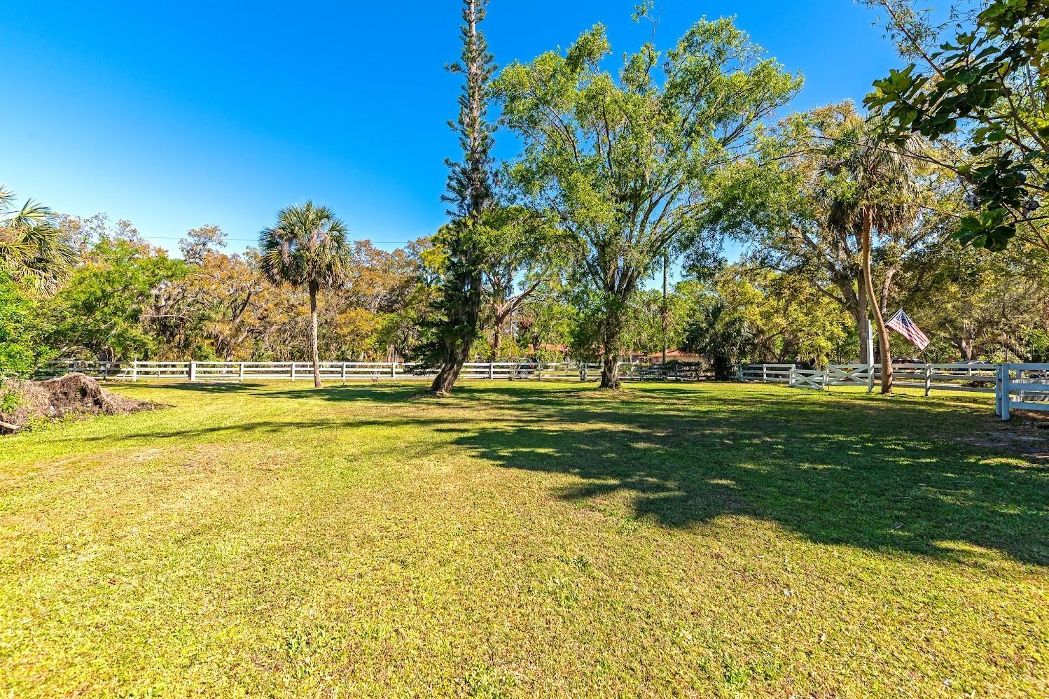 Welcome home to your private slice of country living—right in the heart of Sarasota. Located in the highly sought-after, well-established DeSoto Acres neighborhood, this beautifully maintained 3-bedroom, 3-bath home sits on 2.25 acres of naturally landscaped land within a designated bird sanctuary, offering rare peace, privacy, and freedom—without sacrificing convenience. Inside, the 1,745 sq ft open floor plan is filled with natural light and designed for comfort and flexibility. One bedroom has been thoughtfully converted into a brand-new mother-in-law suite (2024) with a private entrance and optional interior access—ideal for multi-generational living, guests, or rental income. Recent upgrades include hurricane-impact French entry doors and sliding glass door, new ceiling fans throughout, and a new water heater (2025). A Vermont Castings wood-burning stove adds warmth and charm, while central heat and air provide year-round comfort. Outdoor living shines with two spacious screened lanais, both with ceiling fans—perfect for relaxing or entertaining. The property also features an oversized 2.5-car garage, 20x40 covered carport, and an attached utility shed on a concrete slab, offering ample space for vehicles, RVs, tools, and storage. There’s even room to add a pool. Animal and garden lovers will appreciate the fertile soil, fenced pasture, and 20x10 corral, easily adaptable for horses, chickens, or hobby farming. With no CDD fees, no deed restrictions, and only a voluntary HOA, this property offers rare freedom in a tranquil, canopy-lined neighborhood—lovingly maintained by a single owner for over 40 years. All of this just: 5 miles to UTC 4 miles to Downtown Sarasota 8 miles to Lido Beach & St. Armands Circle A truly one-of-a-kind opportunity to enjoy space, nature, and flexibility—right in town. Motivated seller.