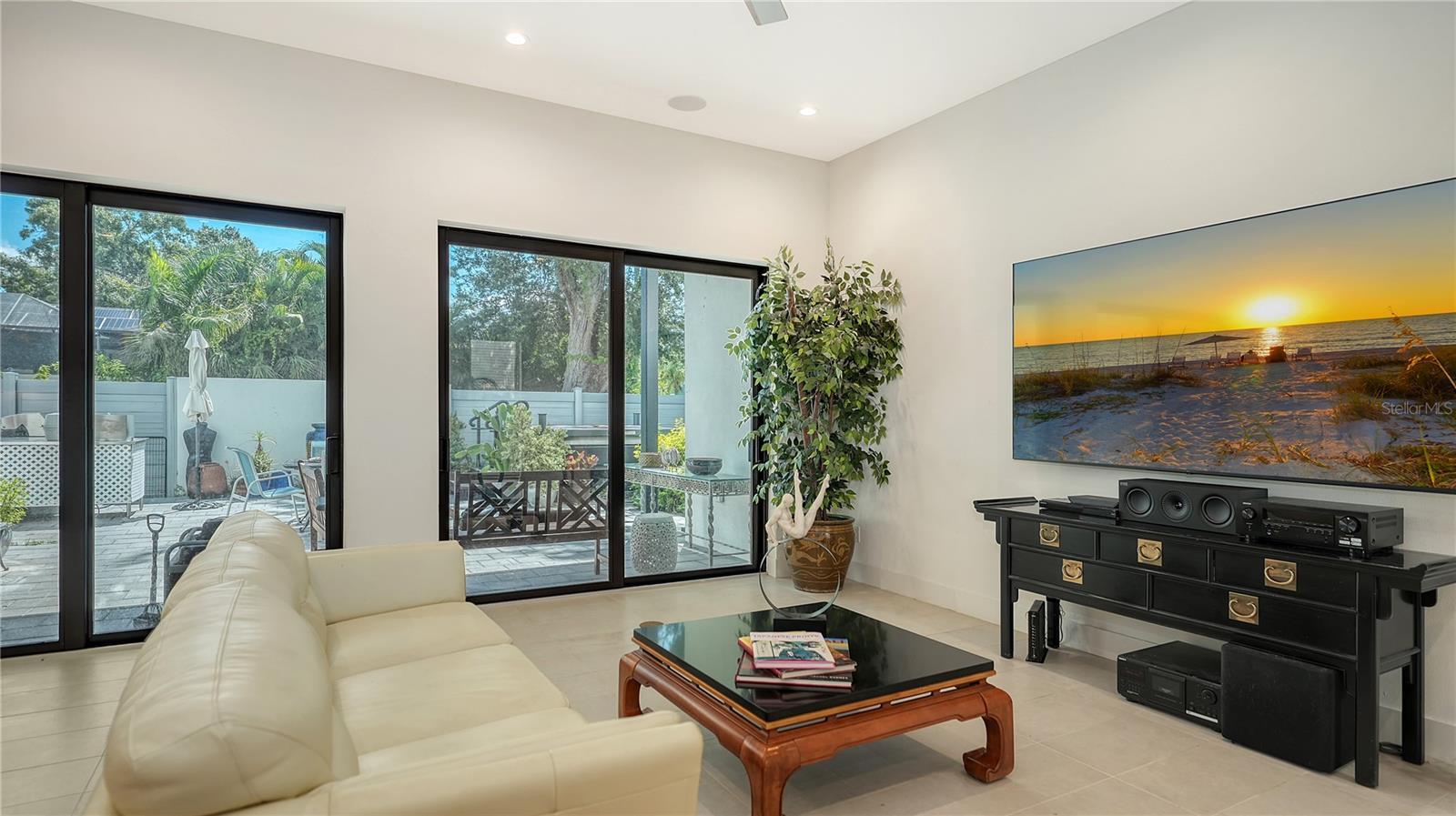 DOWNTOWN FAMILY COMPOUND OR INVESTMENT DUPLEX. TWO ADA-COMPLIANT RESIDENCES WITH THREE CAR GARAGE, ELEVATOR, SOLAR, PIPED NATURAL GAS. Welcome to one of Gillespie Park’s most extraordinary finds—a sleek, contemporary MULTI-GENERATION residence or INCOME PRODUCING INVESTMENT just steps from downtown Sarasota! This 2023 custom-built two-story home offers over 4,400 sq. ft. of luxurious living space, thoughtfully crafted for two households to live independently yet connected, or easily transformed into a spacious single-family retreat. • TWO 2200 SQ.FT. RESIDENCES: Each floor boasts a 2 bed / 2 bath ADA-compliant layout, soaring 10-ft ceilings, and abundant natural light with motorized blinds, downstairs surround sound. • Gourmet Kitchens: Downstairs: Thermador appliances, 6-burner gas cooktop, dual dishwashers, walk-in pantry, and a stylish coffee/wine bar, laundry room. Upstairs: Bosch appliances, laundry room, and two ensuite bedrooms. • Outdoor Living: Ground Floor courtyard with outdoor kitchen, hot tub, and lush privacy walls. Expansive Second Floor Balcony is partially covered, perfect for relaxing or entertaining. • Energy Smart: Natural Gas tankless hot water heaters. Solar panels currently power the second floor but can be switched to the ground level. • Rare 3-Car Garage with rear alley access—one of the few blocks in Gillespie Park with this feature. • Elevator + Wide Stairwell for seamless access between floors. • Zoned for Short-Term Rentals – a golden opportunity for investors! • Gillespie Park Amenities: Dog run, tennis courts, and a vibrant community vibe. • Walkable Lifestyle: Minutes from the Rosemary Arts District, downtown dining, shopping, and theaters.