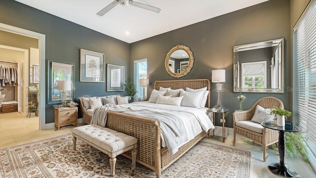 - Ceiling Fans(s), Elevator, High Ceilings, In Wall Pest System, Living Room/Dining Room Combo, Open Floorplan, Primary Bedroom Main Floor, Split Bedroom, Stone Counters, Thermostat, Walk-In Closet(s), Wet Bar, Window Treatments