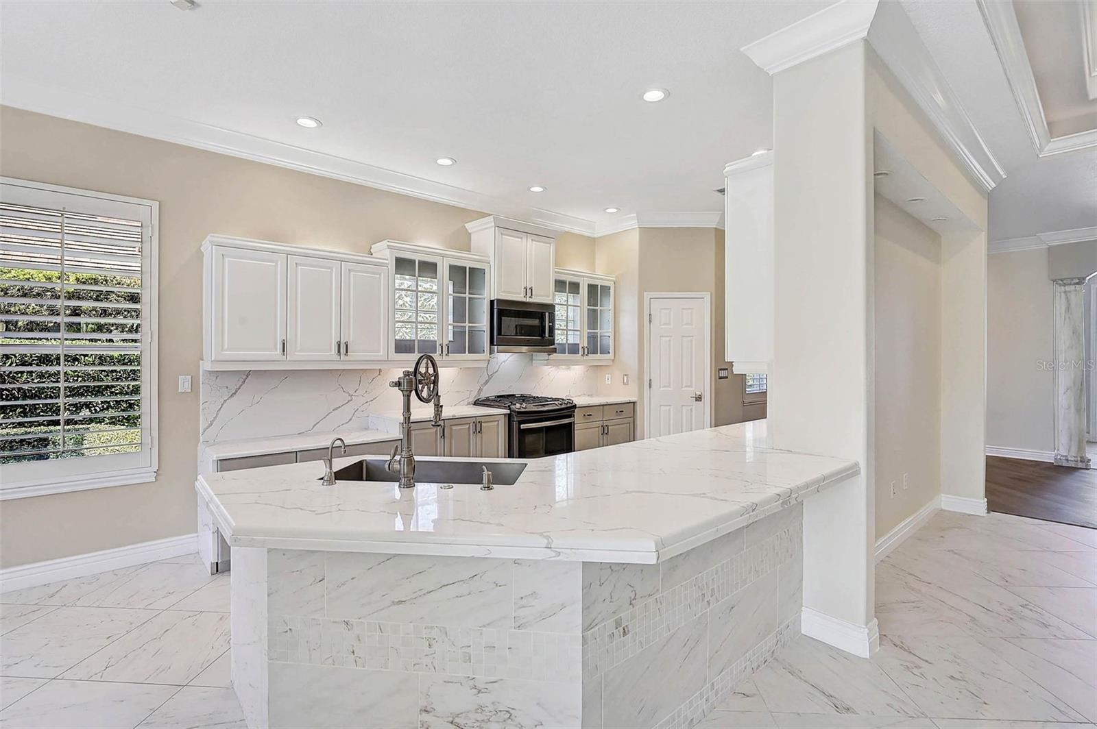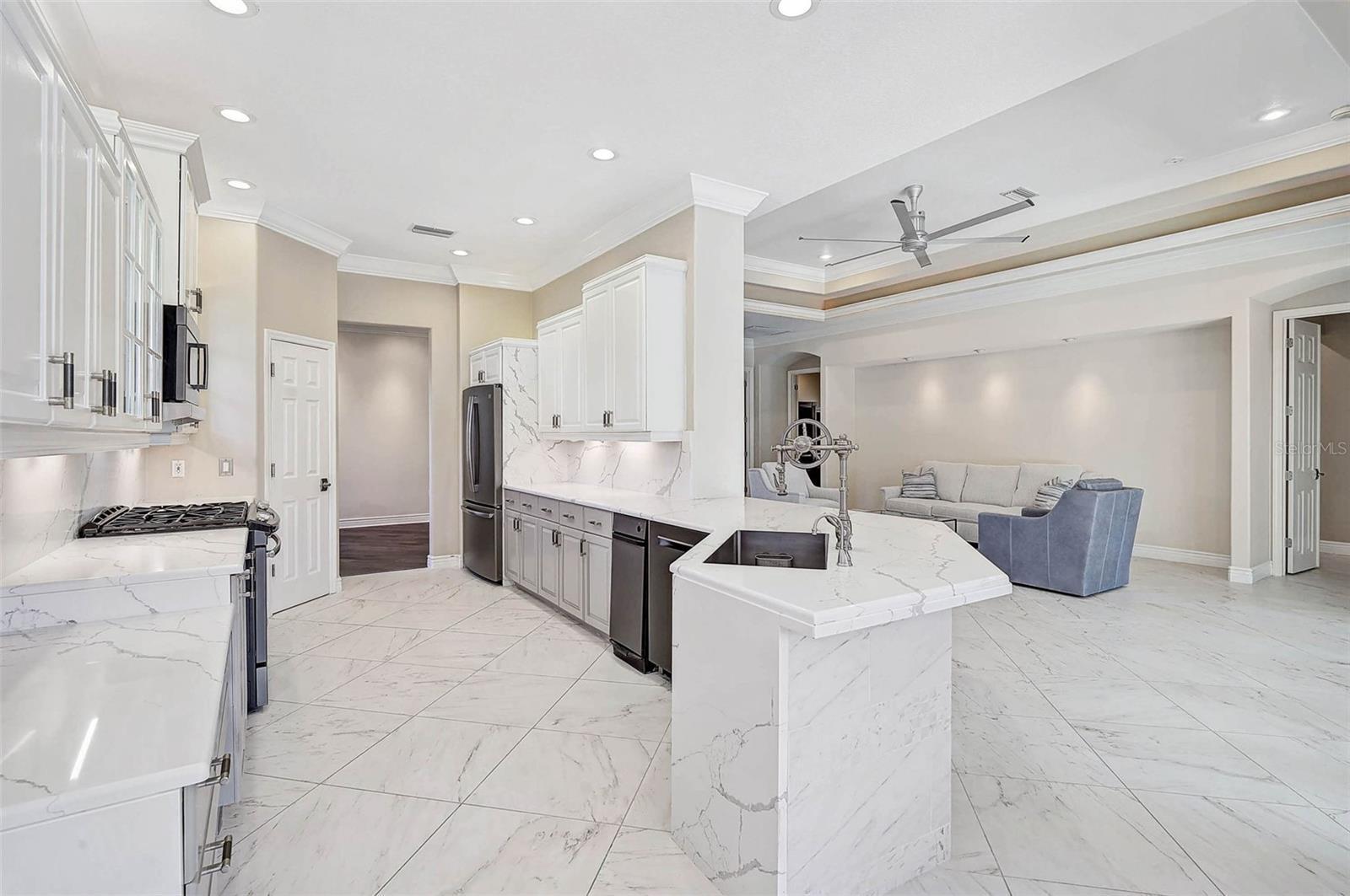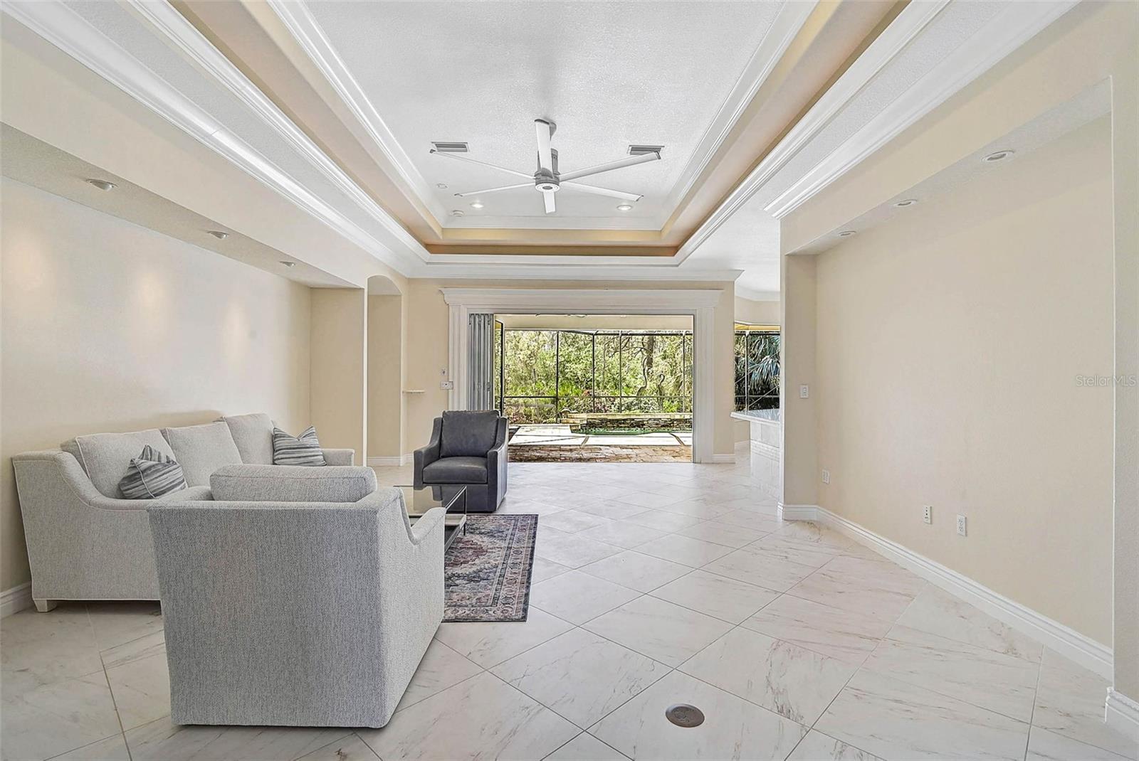 - Built-in Features, Ceiling Fans(s), Coffered Ceiling(s), Crown Molding, Dry Bar, High Ceilings, In Wall Pest System, Open Floorplan, Solid Wood Cabinets, Split Bedroom, Stone Counters, Thermostat, Vaulted Ceiling(s), Walk-In Closet(s), Window Treatments