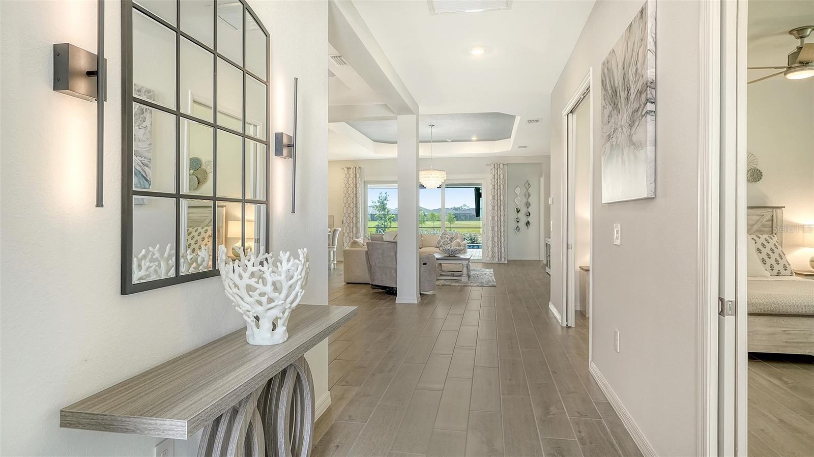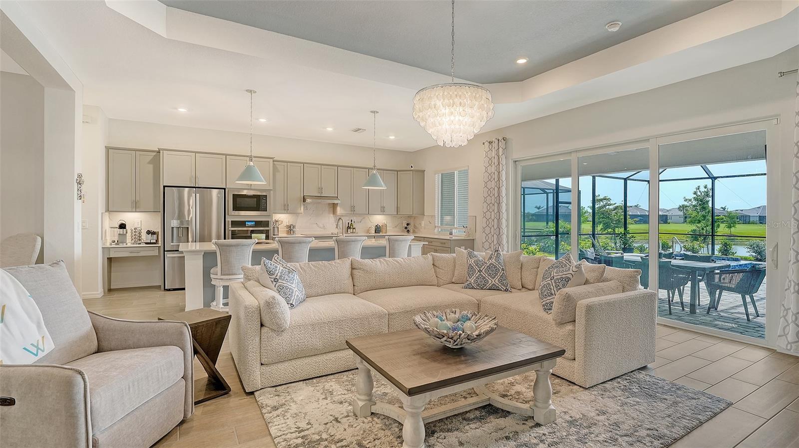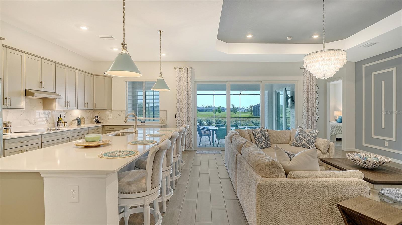 Welcome to Paradise! This lovely 3-bedroom 2-bathroom single family home is located within the gated golf Community of Wellen Park Golf & Country Club. The Angelina executive home delivers an airy open feel, with a nice floor plan designed for resort style living. Enter through the front door into an expansive great room/dining room with glass sliders leading to the spacious lanai with private heated pool and spa. The kitchen with a large island is every cook’s dream and marries the kitchen and living room. This split-plan offers privacy for owners and guests alike featuring an owner’s suite in the back of the home with two walk-in closets, a large ensuite bath with dual sinks, large walk-in shower and private entry to the lanai. As you enter the front of the home, the bedroom and the den (1 set up as an office with a queen sleeper sofa and the other offering a queen bed and TV) are located at the front of the home and share a full bath. Enjoy balmy evenings and meals on the lanai. Relax and entertain in your very own private oasis with private heated pool and spa. Hurricane impact resistant windows and doors are featured. Take your love of the game to the next level on the newest Gordon Lewis championship golf course. This Property offers the option to purchase a golf membership as well as access to resort style amenities such as main resort style pool, 3 satellite pools, fitness center, tiki bar, pickle ball, tennis courts, bocce ball, walking trails, kayak and paddle board rentals, farmers market, and more. Nearby Gulf beaches and take in a game at the new Cool Today Atlanta Braves training stadium. Enjoy resort style living in Wellen Park's newest golf Community! ***LONG OR SHORT TERM RENTAL ACCEPTED*** $12,500.00 per month DEC. ~ April** 6,000.00 per month MAY ~ NOV. $65.00 monthly min. expenditure is required at the on-site Tiki Bar/Restaurant (Alcohol Excluded). Easy access to I-75, shopping, dining, Farmers market, live music and more in downtown Wellen Park. Close proximity to the Cool Today Atlanta Braves Stadium.
