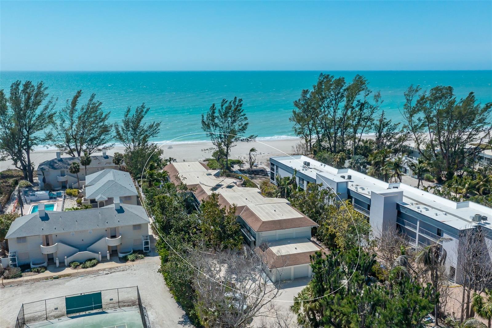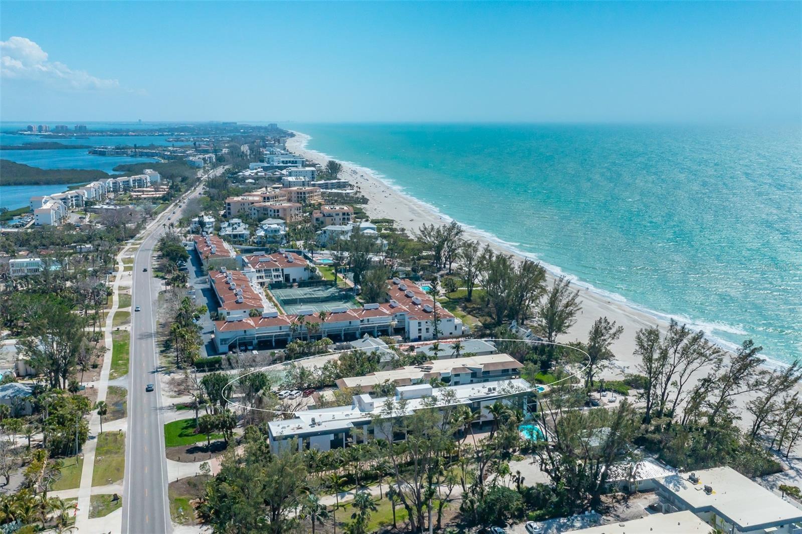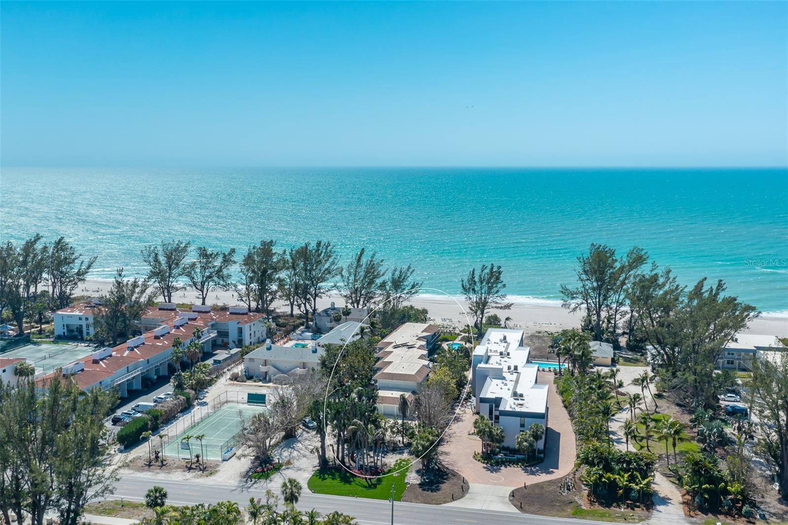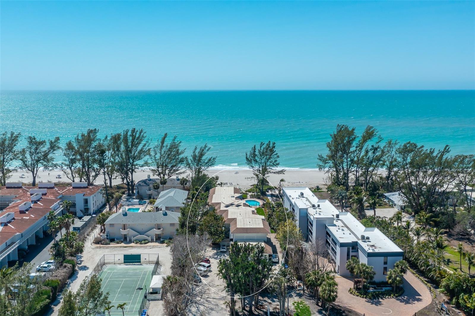 Attention Investors! This is a rare opportunity to own on the beach on LBK and collect rent. The GROSS INCOME from 1/1/25-12/31//2025 is approximately$76,478. This intimate, unique beachfront resort has only 8 condos and is available for daily, weekly or monthly rentals. All condos are beautifully appointed and smoke free. You will enjoy many relaxing hours on the beach where chairs are provided for you. The kitchen has stone counters and every small appliance you like to use. The screened porch is a quiet refuge from which to view the Gulf water and the lush landscaping. On site management handles all rentals, cleaning, advertising, bookkeeping and other administrative business. There are no HIDDEN CHARGES, (NO linen rental fee, NO cleaning fee, No business tax fee,) as there are in other vacation rentals. This lovely condo is being offered TURNKEY FURNISHED. Restaurants, nature trails, a park with tennis and pickleball, and food shopping are close by. Financials will be provided upon request. This condo is heavily booked so showings are available only on check out day which is usually Saturday at 10.Call agent for availability. Life is good on Longboat Key!