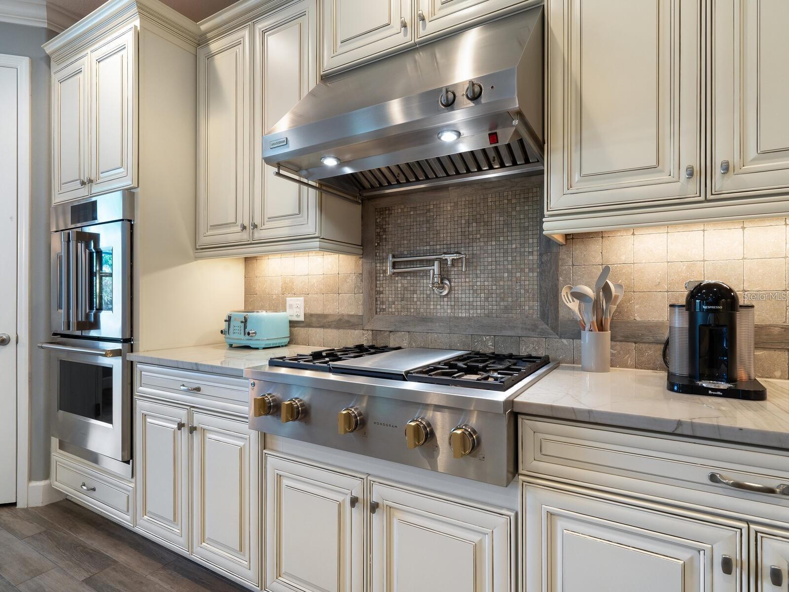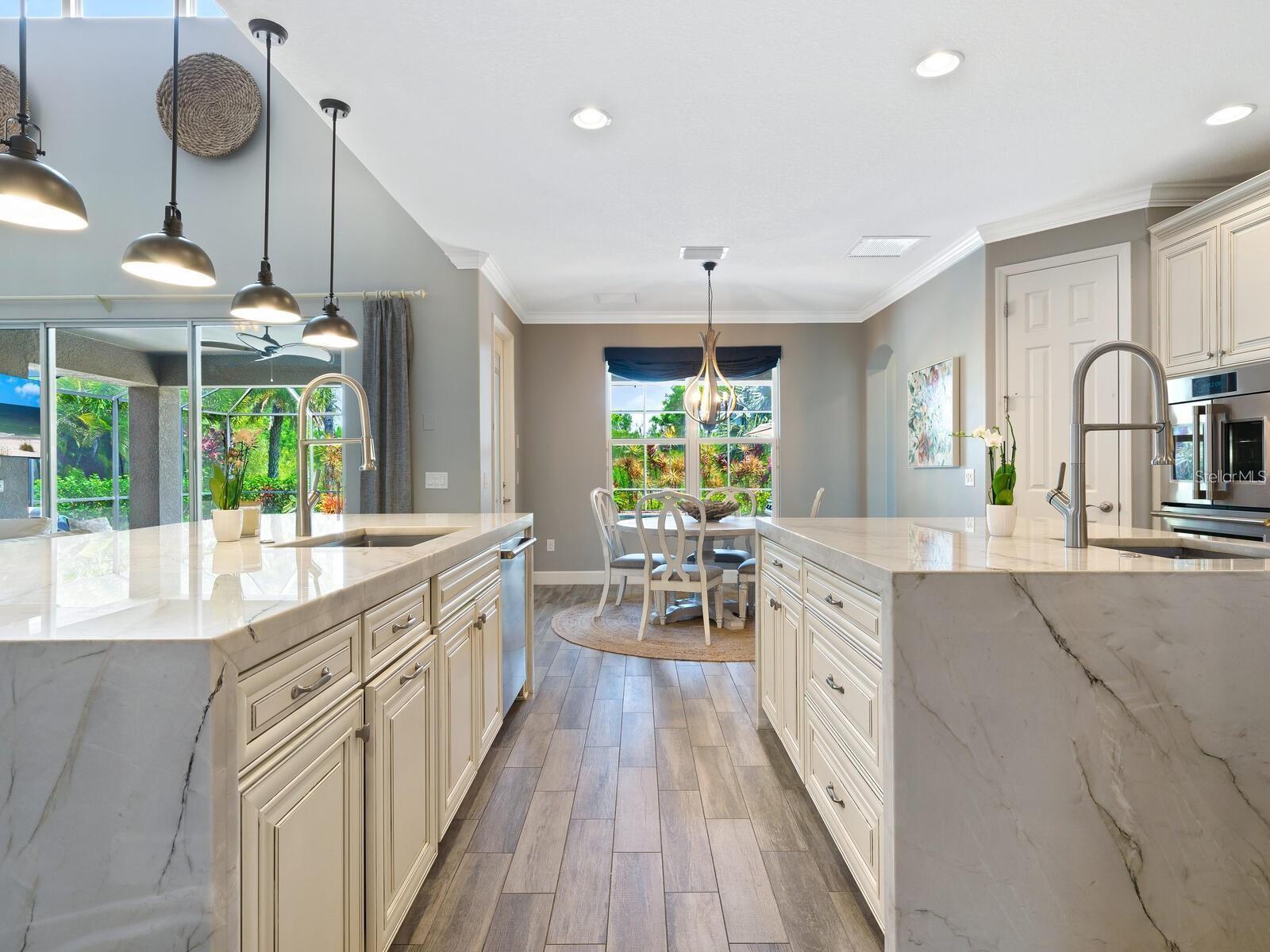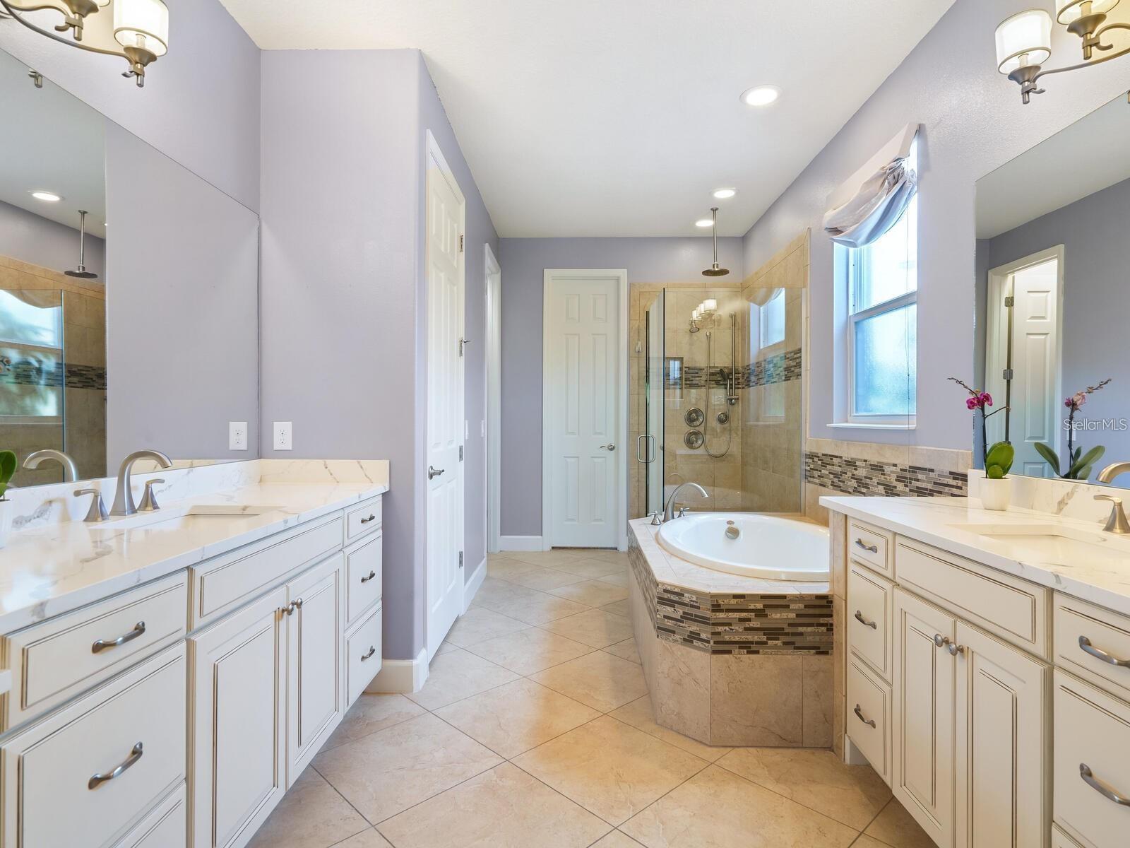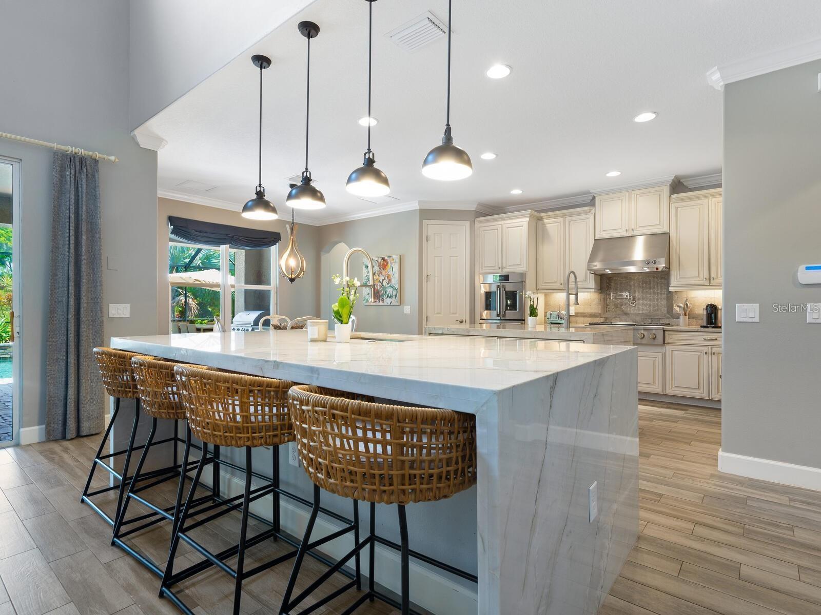Under contract-accepting backup offers. This fabulous 6-bedroom, den + loft home is both spacious and stylish with no expense spared on the upgrades and finishes. One of Taylor Morrison’s most popular floorplans, the elegant yet functional layout of the Hemmingway III model enables family and friends to enjoy open plan living, cooking and dining together as well as ample additional space in the second-floor loft and workspace, and even a media room! The outdoor living space is spectacular with a huge pool and spa set in front of a beautiful firepit feature, lush landscaping, elegant brick pavers, a spacious covered dining and lounging area with outdoor kitchen with natural gas grill. The yard offers complete privacy since it backs onto a preserve. The first floor comprises of a large 20 ft high foyer with a formal dining room, an office and a powder room, and opens to a lovely light filled two story living room and huge kitchen with two islands topped with 3-inch mitered Aria quartzite with waterfall edges. Chefs will appreciate the amount of high-quality cabinet space in the kitchen, the gas range with griddle and pot filler, two full-size sinks, a full pantry, and dry bar. The GE Monogram appliances in the kitchen are both good looking and functional - the French door refrigerator includes instant hot water. There is both countertop seating and an informal eating area for everyday meals. The primary suite overlooks the pool deck, and the ensuite bathroom has two closets, a separate WC, dual sinks, plus a vanity, a soaking tub, and a floor-to-ceiling tiled shower with 3 separate shower heads. The second floor comprises of a huge loft with 3 bedrooms - two of which have walk-in closets - a media room and a bathroom. A landing overlooking the main living area connects the loft to two additional bedrooms and a work/study space with a shared bathroom and a separate sink and walk in closet. The 2.5 car garage features custom flooring, EV outlet and storage racks. While this preserve lot offers complete privacy, this home is surrounded by a vibrant, active neighborhood where homeowners gather to enjoy the amenities: resort-style pool, playground, hot tub, grill area, kid’s waterpark with slide, dog park, and a covered pavilion. A-rated public schools, easy access to the recreational Legacy Trail, and close proximity to the white sands of Siesta Beach and the I-75 corridor make Arbor Lakes a fabulous choice for the very best that Sarasota has to offer.