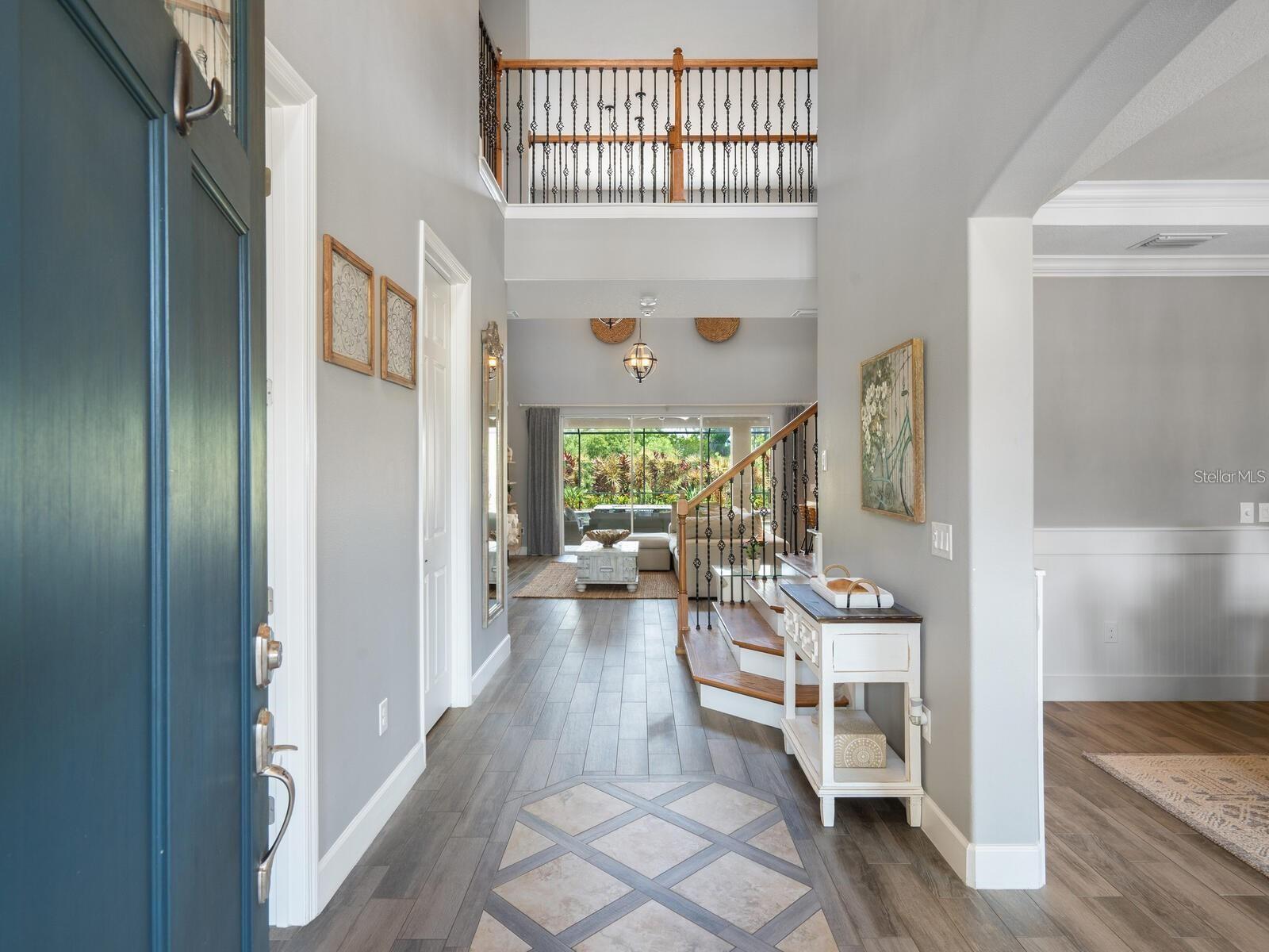 - Built-in Features, Ceiling Fans(s), Crown Molding, Dry Bar, Eat-in Kitchen, High Ceilings, Kitchen/Family Room Combo, Open Floorplan, Primary Bedroom Main Floor, Solid Surface Counters, Solid Wood Cabinets, Split Bedroom, Tray Ceiling(s), Walk-In Closet(s), Window Treatments