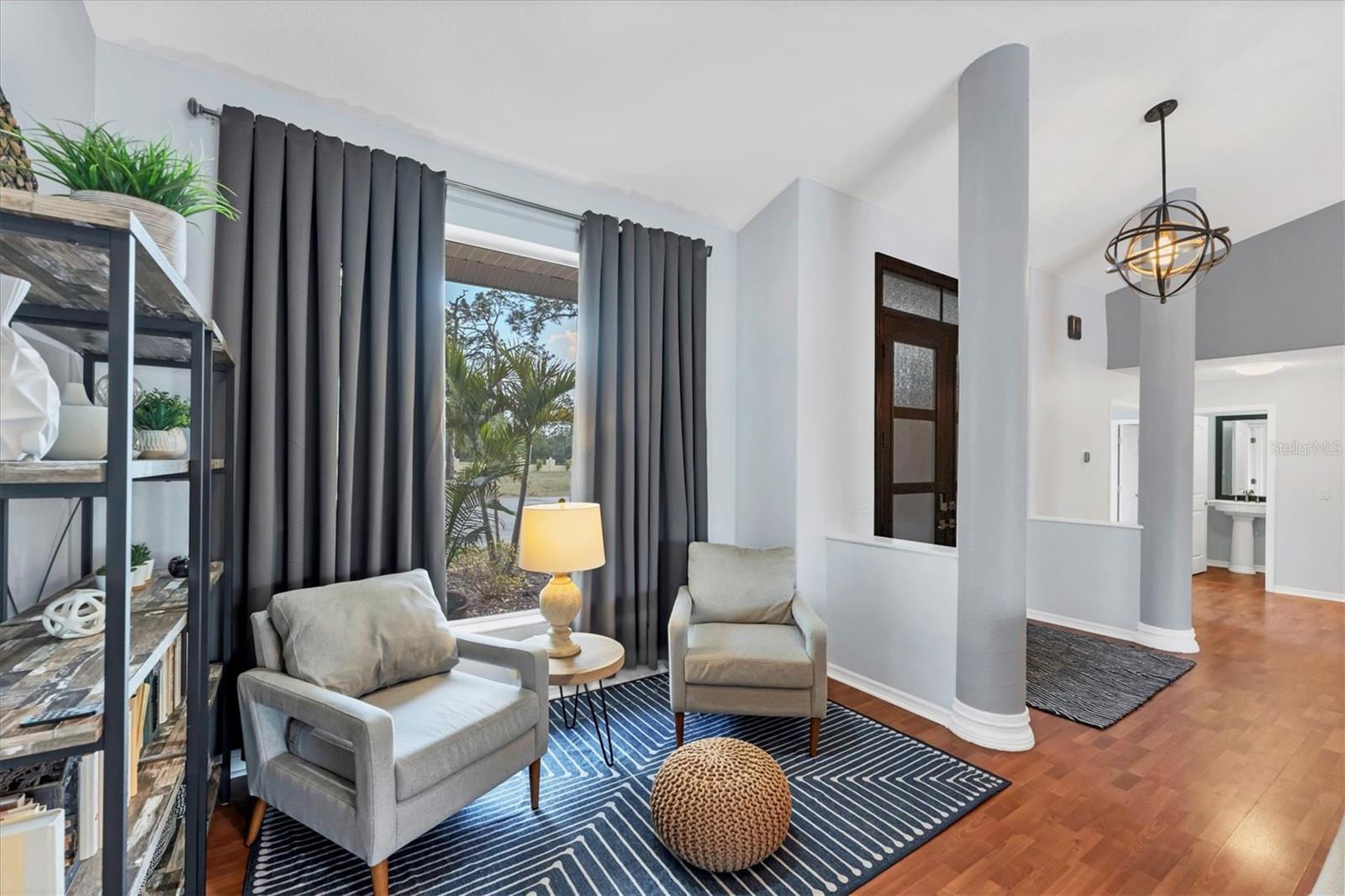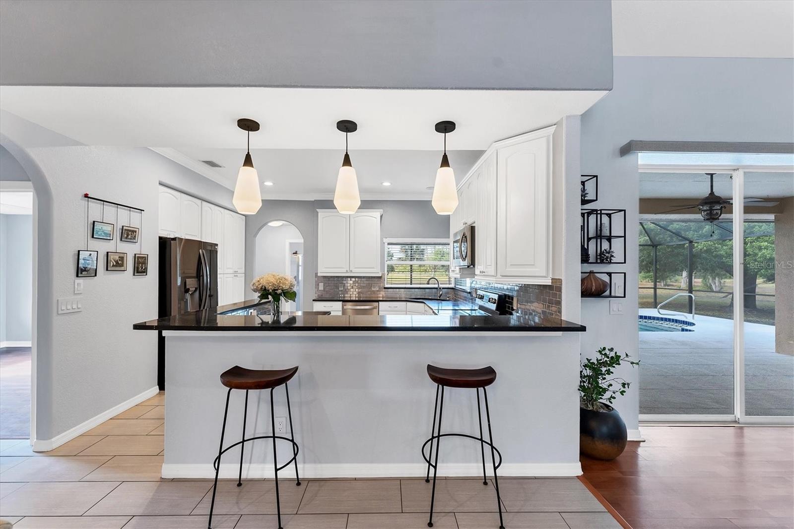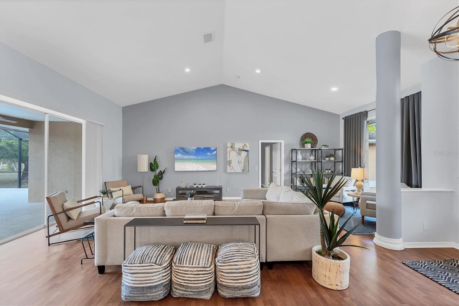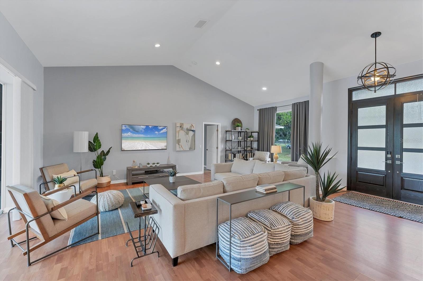 Looking for a location that gives you peaceful countryside living with the convenience of being a short drive from restaurants and shopping? Look no further! This charming home is nestled on over 3 acres in the highly desired North Port Estates. When you walk through the grand double door entry, you'll find the open floor plan and high ceilings give an airy feel! The large windows maximize the natural light and let you take in the beauty of the property. With 4 bedrooms, 3.5 bathrooms and a large bonus room, there's plenty of space for the whole family! The kitchen has been updated with Quartz countertops and stainless-steel appliances. The owner's suite, which is on its own wing of the house, has a large bathroom with a jacuzzi tub and walk-in shower. A walk-in closet that has built-ins as well as a wall safe. The windows and door leading to the lanai have remote operated shades. On the other wing of the house, you will find 3 bedrooms as well as a bonus room that has endless possibilities. If outdoor living is what you love, the fully screened-in pool area is perfect for entertaining. There are also concrete seating areas in the back and side of the home. Other home highlights include a long driveway and parking pad large enough to fit an RV and/or a trailer. It's only minutes from I-75 and is zoned Agricultural so horses are welcome! Recent home updates include a new septic tank, roof, A/C, Pool cage, Eco-Smart tankless water heater, and a Generac transfer switch was installed. All circuits have been replaced and the whole house has new piping. Come experience everything this property has to offer today!