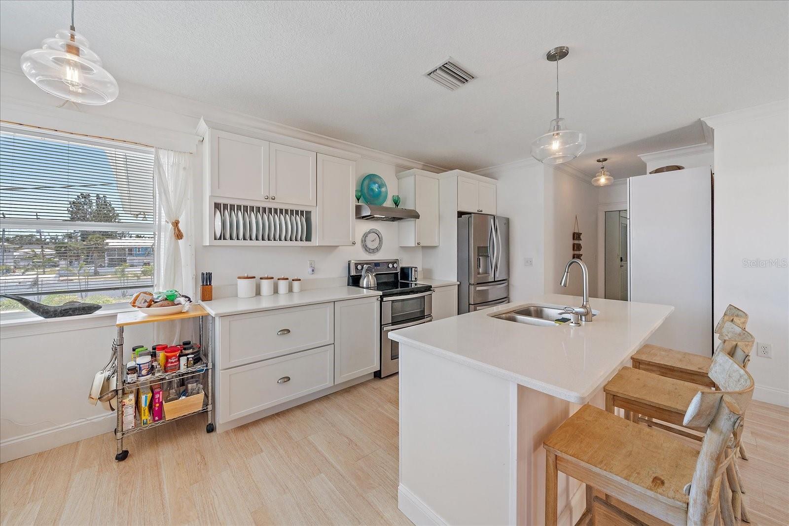 - Ceiling Fans(s), Crown Molding, Eat-in Kitchen, Open Floorplan, Stone Counters, Thermostat