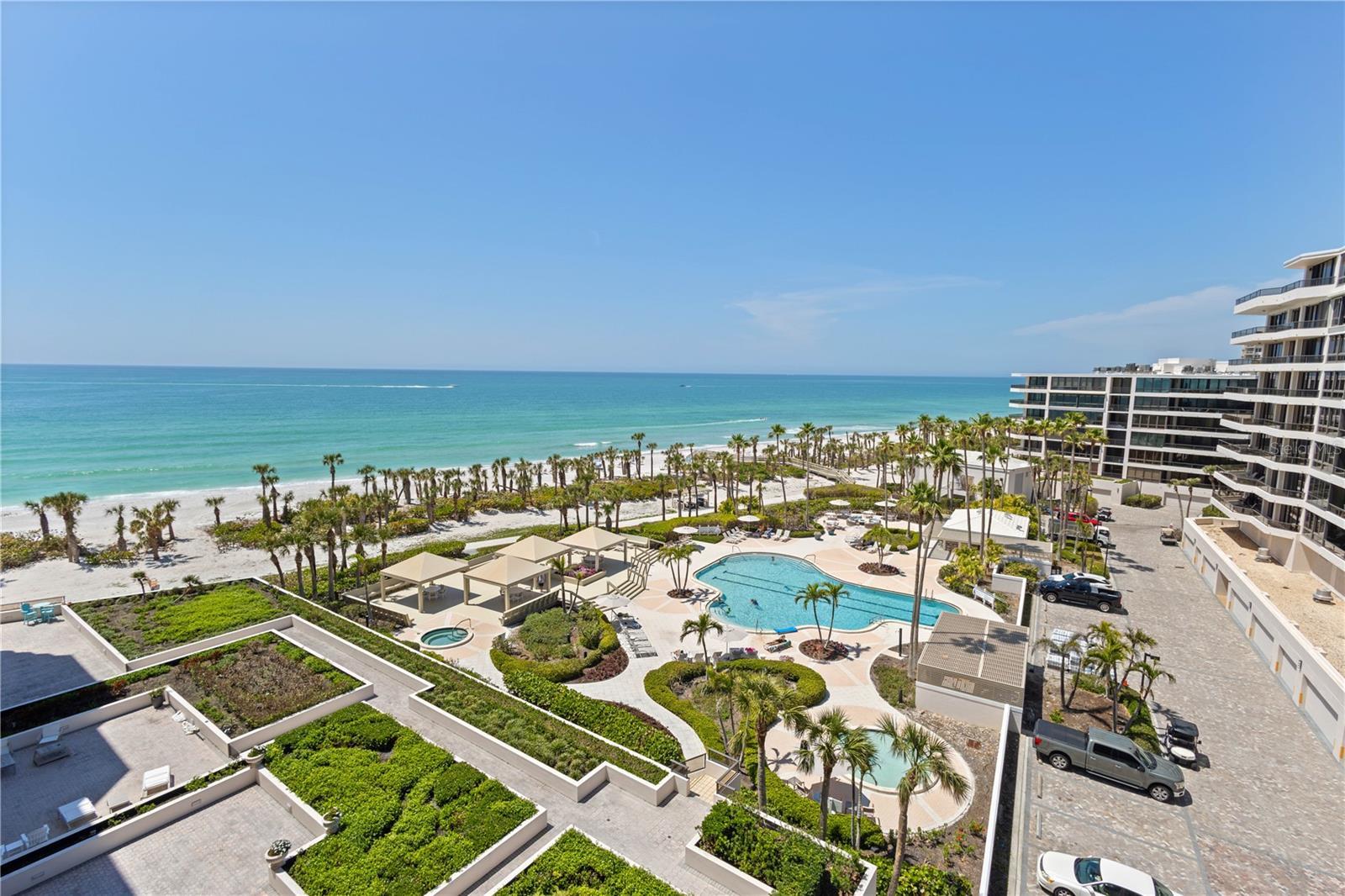 Under contract-accepting backup offers. Welcome to paradise! This 3 bedroom floor plan offers Northwest and Southeast terraces boasting direct beach and sunset views from the great room and primary suite along with City and Bay views from the kitchen, den and guest bedroom. Floor to ceiling sliders showcase the big views at both ends and provide a bright welcoming atmosphere. The kitchen features a large center island, breakfast nook, granite counters, built-in desk, abundant cabinet space and all the conveniences to create memorable meals. Retreat to the primary suite where owners are pampered with terrace access, sunset views over the water, a walk-in closet and a spacious primary bath with separate shower, garden tub, dual vanities and water closet. Visitors will be comfortable staying in the ensuite guest bedroom that shares the Southeast terrace with the kitchen and 3rd bedroom that can also be used as a den. Other highlights include a separate laundry room with sink, an under building parking space, high speed fiber optic internet access and a smartphone app for easy tenant/guest access to the gates and building. Located behind the prestigious gates of The Longboat Key Club on the desirable South end of Longboat Key, owners will enjoy being minutes from the fine dining and shopping on St. Armands Circle in addition to the close proximity to Southwest Florida’s cultural hub of downtown Sarasota. At the Sanctuary, you will be part of 18 incredible beachfront acres with trails, an Olympic sized heated pool and spa, lighted tennis courts, a fitness center, onsite management, 24-hour manned security gate and a club house with planned activities. Become a member of the Longboat Key Club and partake in the superior golf courses, 6 private restaurants, spa and wellness center and other AAA four-diamond beach resort offerings. Roof replaced in 2023, Elevators modernized in 2022, drainpipes re-lined in 2024 and pool decking replaced in 2024. Building passed the Milestone Structural Integrity Inspection.