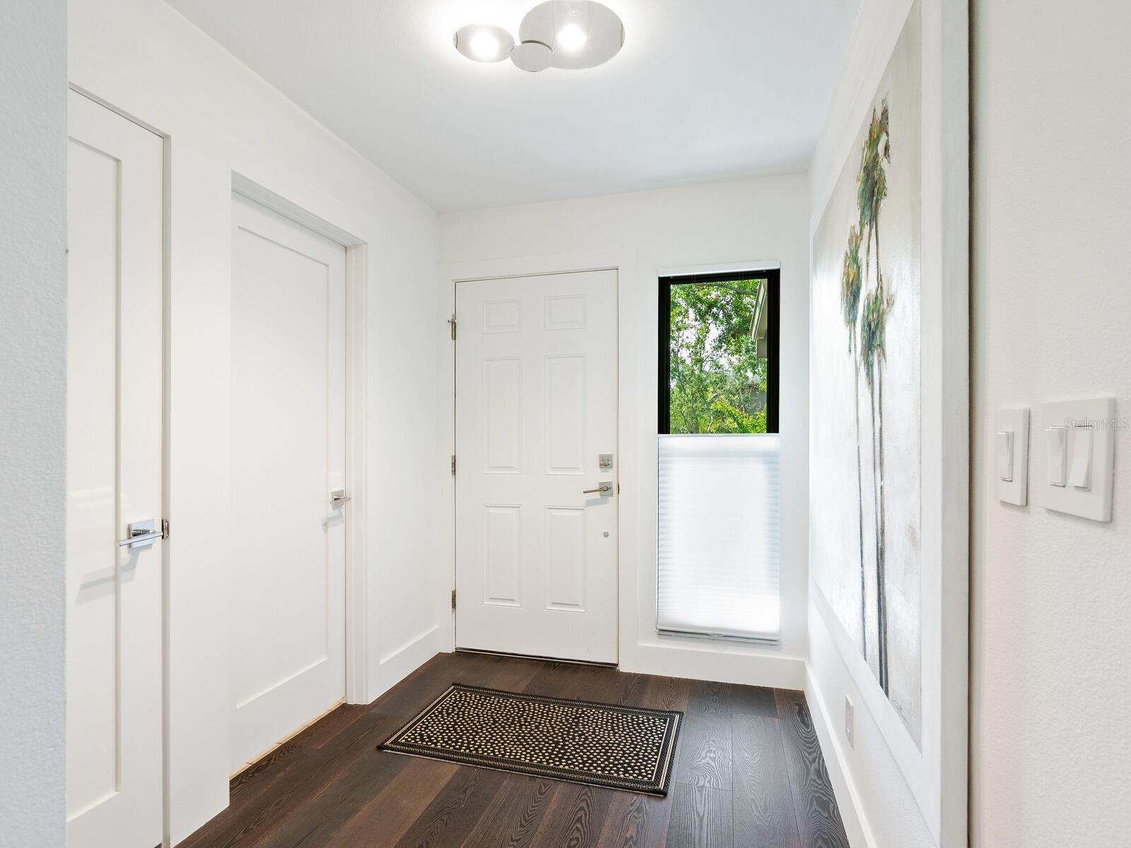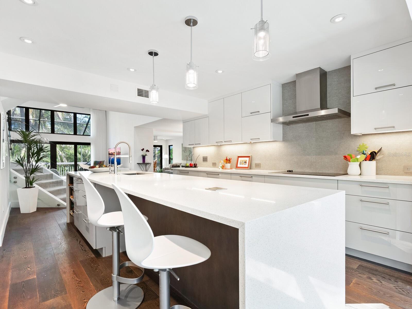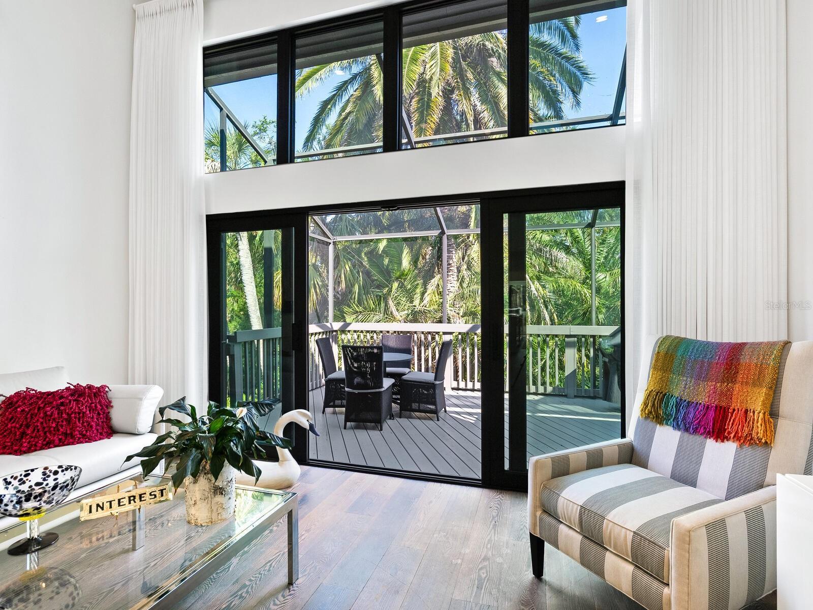Take a look- this 3 bed, 2.5 bath treehouse is stunning- a top-quality renovation enhanced with sleek sophisticated contemporary styling. Every detail was thought of and no expense spared- peace of mind is prioritized with hurricane windows installed throughout the residence, enhancing energy efficiency and reducing ambient noise. Upon entering you are captivated by the abundant light which bathes this modern, split floor plan, multi-level treehouse thanks to the “wall of glass” featured in the living room by the combination of expansive feature windows above the large sliding glass doors. Open the sliding doors and you walk out to the sizable, screened deck, perfect for outdoor entertaining. The open-concept living area features a cathedral ceiling with sky-lights, a re-positioned custom staircase with glass sidewalls, all new LED lighting, new modern baseboards and engineered wood flooring throughout the first floor. Additional upgrades include all new interior doors, updated electrical outlets, switches, fans, and ceiling lighting fixtures. This treehouse has been expanded off the dining area is a retreat for casual living, as well as access to the outdoor deck. The beautifully remodeled kitchen boasts an expansive island with breakfast bar, a deep sink, white lacquer cabinets with plenty of storage, neutral quartz counter tops, and sleek stainless-steel Samsung appliances. Another expansion from the kitchen is convenient for casual dining or a workspace, adding versatility to this spacious and airy home. The primary bedroom has an open deck with an enchanting treehouse view, carpeted flooring, a walk-in custom California Closet, and redesigned ensuite with walk-in shower. The staircase, upstairs landing, and guest bedrooms have engineered wood flooring. The second bedroom's sliding doors lead to its open deck. The third bedroom has been expanded and creates an ideal retreat for your guests or as your own upstairs den/office. A walk-in closet offers more storage. The upstairs guest bath and lower-level powder room have been tastefully updated. Roof, exterior, and decks are maintained by the Treehouse Homeowner’s Association. A single car garage and laundry room complete this remarkable move-in ready home. The Landings is a gated community with 24-hour security located “West of the Trail” close to the revitalized Landings Shopping Center, Siesta Key, and Sarasota’s vibrant downtown. The community boasts a nature trail leading to the Intracoastal Waterway with a fishing pier and storage racks for kayaks. Membership to the Landings Racquet Club with tennis, pickle ball, gym with cardio and weight equipment, pool and spa, and two community rooms for all sorts of social functions is optional.