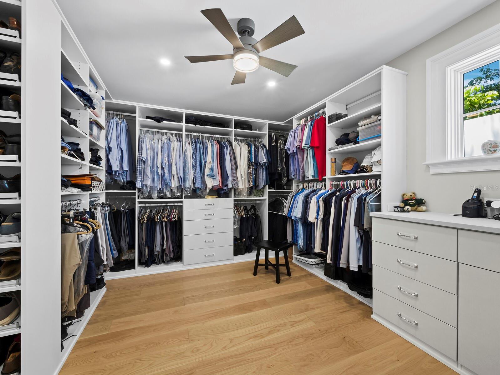 - Built-in Features, Ceiling Fans(s), Coffered Ceiling(s), Crown Molding, Eat-in Kitchen, High Ceilings, Kitchen/Family Room Combo, Living Room/Dining Room Combo, Open Floorplan, Primary Bedroom Main Floor, Smart Home, Split Bedroom, Stone Counters, Thermostat, Tray Ceiling(s), Walk-In Closet(s), Wet Bar, Window Treatments