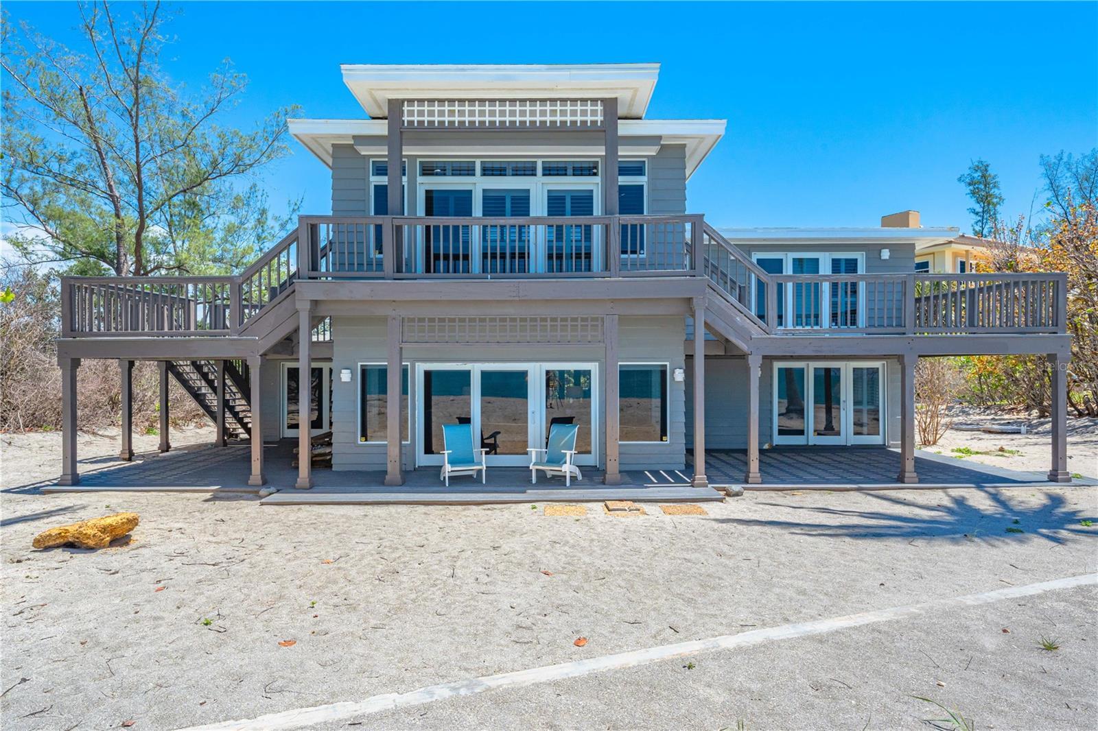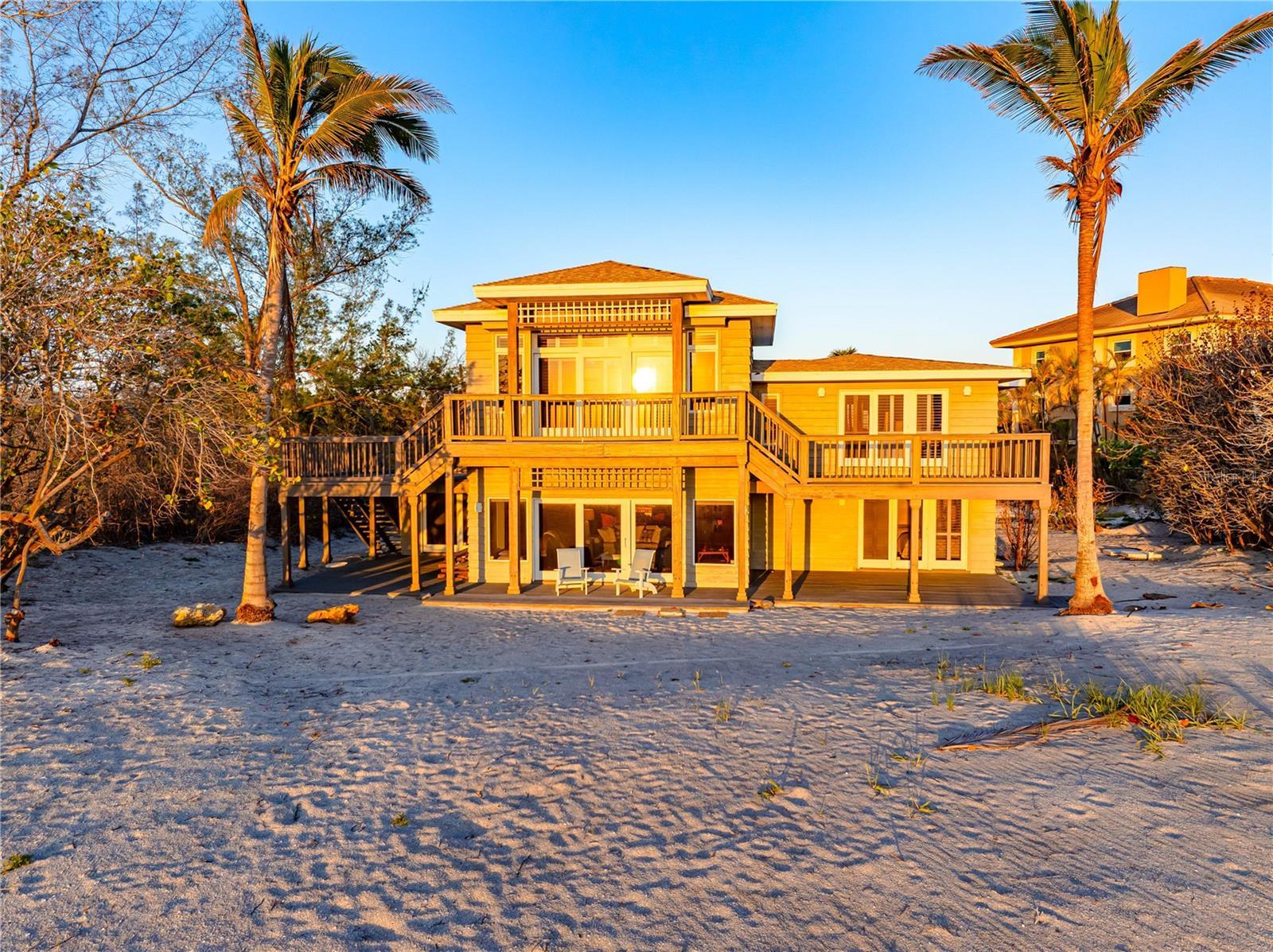 ON THE GULF, ON THE BEACH! One of a kind UPDATED 4-bedroom 4- bath beach/gulf front home directly facing the beautiful gulf waters of world-famous SIESTA KEY with your own 100 feet of PRIVATE BEACH to enjoy. Unrestricted views and access to the beach in your backyard make this one of the most highly desirable locations on Siesta Key. This property is very private and is located on the quiet south end of Siesta Key just north of Turtle Beach and is accessed by a private road. Large windows and sliding glass doors throughout the home allow for breathtaking panoramic beach and gulf views. You will enjoy watching the spectacular sunsets whether inside or outside the home. Open floor plan with a total of 3632 sq. ft. of living area. A total of five large individual private decks are facing the gulf with access from the family room, dining room, owner’s suite second floor, guest bedroom first floor and side deck off second floor, A magnificent second story family room and owner’s suite was added by the current owners. Making life easier there are two owners suites, one on the first floor and one on the second, take your pick. Updated kitchen appliances. Spacious bedrooms all with their own baths. 2-car attached garage. Home includes a private deeded kayak dock and even includes a Kayak for your enjoyment. Property is being sold turnkey furnished. This property is separate and apart from the Heron Lagoon subdivision. Folks, this is a unique opportunity that may not be seen again for a very long time. Visit our virtual tour and make an appointment today!