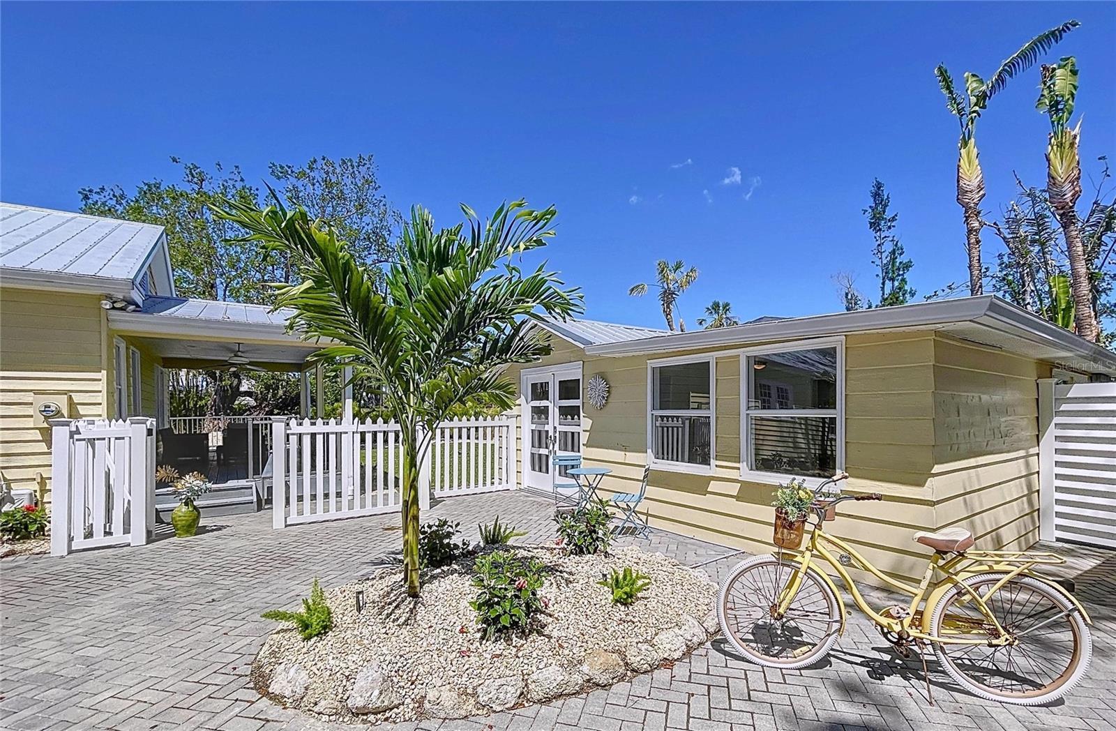 Unleash your imagination with this stunning property, perfect for short or long-term rentals, or simply for your personal enjoyment. Both the house and guesthouse were restored with meticulous care and exquisite taste following Hurricane Milton, ensuring that their original beauty and charm have been gracefully preserved. Step through secure gates into one of Bay Island’s original Florida bungalows, a beautifully restored haven set on a lush 1/4 acre private oasis. Featuring a captivating three-bedroom main house and an enchanting one-bedroom guest suite, this home exudes charm and elegance—every room boasts unique handcrafted finishes sourced from local and international artisans. Experience the perfect blend of vintage allure and modern convenience. The chef-inspired brand new kitchen is a true masterpiece with all new THOR appliances and custom made chic cabinetry.The indoor laundry room is conveniently located off the kitchen. The sun-drenched dining area flows effortlessly into the kitchen, creating an inviting atmosphere perfect for gatherings and celebrations. Retreat to the formal living room, adorned with a charming restored brick wood-burning fireplace (2022), perfect for cozy evenings. The newly updated Florida Room features a secure sub-floor and foundation (2022), impact-resistant PGT double-pane windows, and two new exterior doors. This serene space is ideal for enjoying your morning coffee or hosting intimate dinners while overlooking the beautifully landscaped tropical garden. Two delightful bedrooms adjacent to the kitchen share a stylish full bath, complete with blue subway tiles, elegant marble flooring. The luxurious Owner’s Suite features a private dressing area, a spacious walk-in closet, and an additional new California Closet with a secure locking system. The spa-like Owner’s Bath is truly a retreat, showcasing a magnificent 67” cast iron Katheryn Bateau skirted soaking tub, A double vanity accompanied by a Toto toilet. French doors lead from the Owner’s bedroom to a freshly re-stained wraparound deck, seamlessly connecting indoor and outdoor living—your own private outdoor escape. The charming Guest House serves as an ideal additional living space, home office, or guest accommodation, showcasing the same character and charm found throughout the property. Recent upgrades include new roofs on all structures (with gutters), Teco Natural Gas, tTwo independent custom drainage pump systems. You'll also find an outdoor rain shower, a spacious two-car enclosed garage, a fully fenced and gated perimeter, a stylish paver driveway, and meticulously designed ambient lighting and landscaping. Positioned on the tranquil North End of Siesta Key within Sarasota City Limits, this property offers unparalleled access to vibrant downtown Sarasota’s arts and culture, stunning Siesta Key beaches, delightful dining, shopping, and so much more. Don’t miss the opportunity to make this exquisite property your own! POOL CAN BE BUILT, WE HAVE A FULL DESIGN, SITE PLAN AND ENGINEERING READY.