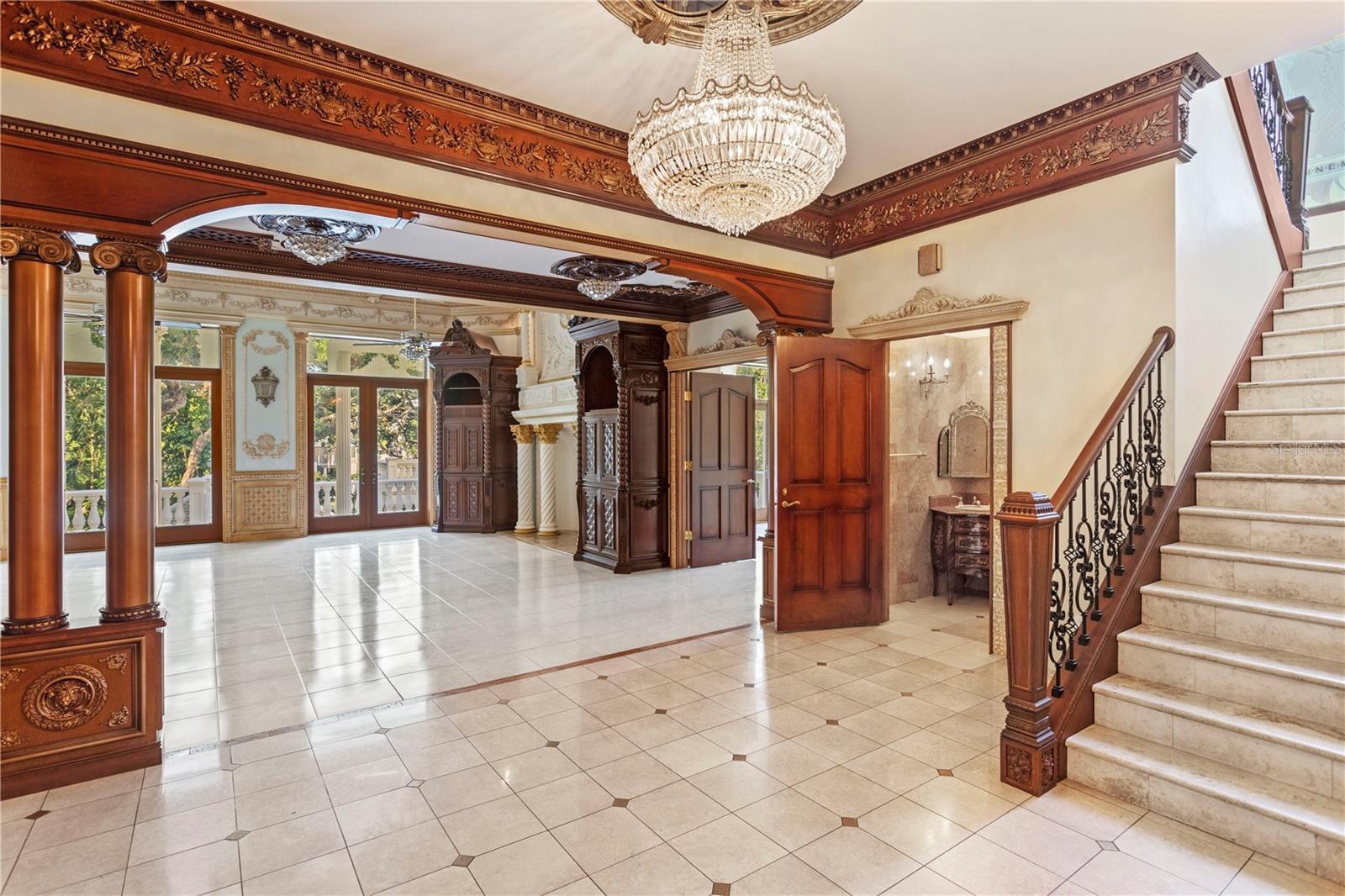 One or more photo(s) has been virtually staged. Grand Belleair Estate – European Elegance, Endless Potential!! Step into timeless elegance with this over 6,000 square foot masterpiece, gracefully situated on an **almost half-acre lot** in one of Belleair’s most sought after neighborhoods. Featuring six spacious bedrooms and five and a half bathrooms, this estate offers a rare opportunity for those seeking a luxurious blank canvas — ready to personalize while embracing its opulent European-inspired interiors. Designed with influences from the Baroque, Rococo, and Neoclassical eras, the home's intricate moldings, soaring coffered ceilings, detailed woodwork, and lavish finishes create an ambiance reminiscent of a European palace. Whether you are drawn to the romantic grandeur or envision blending classic beauty with contemporary upgrades, this estate invites your imagination. The main residence features a grand two-story formal living room adorned with custom architectural details, an elegant formal dining room perfect for entertaining, and multiple living spaces designed for both comfort and sophistication. The chef’s kitchen is appointed with premium **Wolf appliances**, offering the perfect canvas for culinary creativity. Nearby, relaxed dining and family areas flow seamlessly for everyday living. The private first-floor primary suite serves as a luxurious retreat, complete with expansive closets and a spa-inspired bathroom featuring a **steam room** — your own personal wellness sanctuary. Guest bedrooms throughout the home are generously sized, providing comfort and privacy for family and visitors alike. Adding even greater flexibility, a fully equipped one-bedroom, one-bathroom **guest suite** with its own **private entrance** is perfect for visiting friends, extended family, or in-law stays — offering both independence and connection under one roof. The expansive backyard, enhanced by the nearly half-acre lot, provides the perfect setting to design a show-stopping **custom infinity pool** overlooking a peaceful stream. Covered patios, lush mature landscaping, and the serene natural surroundings create an extraordinary outdoor living experience. Practical upgrades ensure peace of mind and modern comfort, including **four separate AC units** (three updated in **2021 and 2022**, and one original from 1995) along with **two hot water heaters** installed in **2018** and **2022**. Roof is 2019 main house and 2015 ADU. Located in the heart of Belleair, this grand estate places you just minutes from world-class golf courses, boutique shopping, fine dining, and the powdery sands of Florida’s Gulf Coast beaches. A true canvas of opportunity, 1577 Alexander Road blends timeless European artistry with modern luxury and endless potential. Homes of this scale, character, and flexibility rarely come available — this is your chance to create something truly extraordinary.
