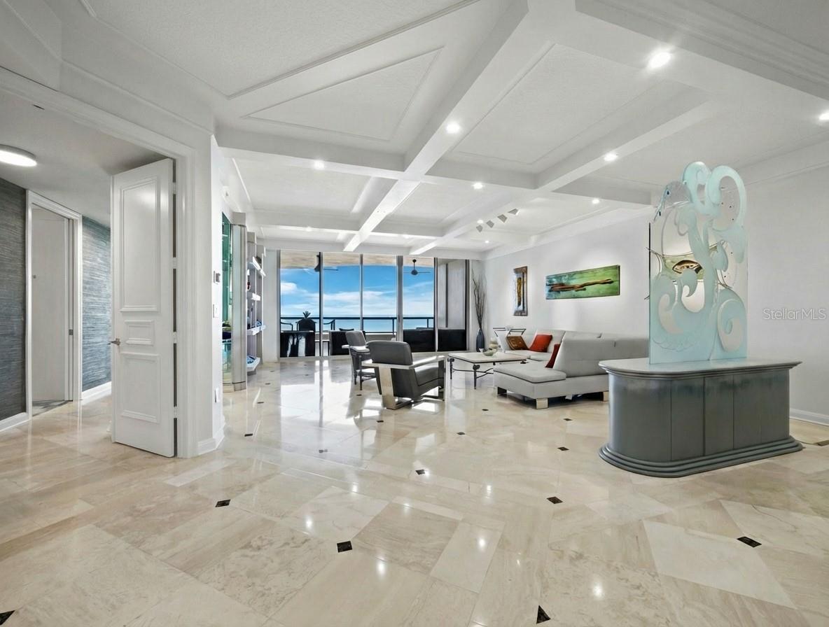 One or more photo(s) has been virtually staged. Exquisite Gulf-Front Residence at L’Ambiance. Presenting a truly rare opportunity—this direct Gulf-front 2-bedroom plus den residence offers the pinnacle of beachfront living at the L’Ambiance on Longboat Key. Featuring the coveted Sabal floor plan, this thoughtfully designed home boasts both sunrise and sunset terraces. Start your mornings with serene eastern light and end your day with sweeping, unobstructed views of the Gulf from your expansive western terrace. Effortlessly blending refined coastal style with luxurious finishes, the residence offers a spacious layout with two bedrooms and a versatile third space—ideal for a home office or guest room—paired with a nearby full bath. The Gulf-front primary suite is a peaceful retreat with panoramic water views, direct terrace access, abundant closet space, and dual bathrooms designed for privacy and comfort. L’Ambiance is Longboat Key’s premier beachfront community, offering an exceptional lifestyle with a 24-hour staffed gatehouse and full-time concierge, a resort-style beachfront pool surrounded by lush tropical landscaping, and two Har-Tru tennis courts. The state-of-the-art fitness center includes his and her locker rooms, and residents enjoy access to game and billiard rooms, a wine room, and a private library. Three elegantly appointed guest suites are available for visiting friends and family. Additional highlights include secured underground parking, a private storage locker, and an unbeatable location just moments from the shops and dining of St. Armands Circle. The residence is also within reasonable walking distance to the Longboat Key Club’s acclaimed restaurants and resort amenities. This is beachfront living at its most luxurious—an extraordinary coastal retreat that rarely becomes available.