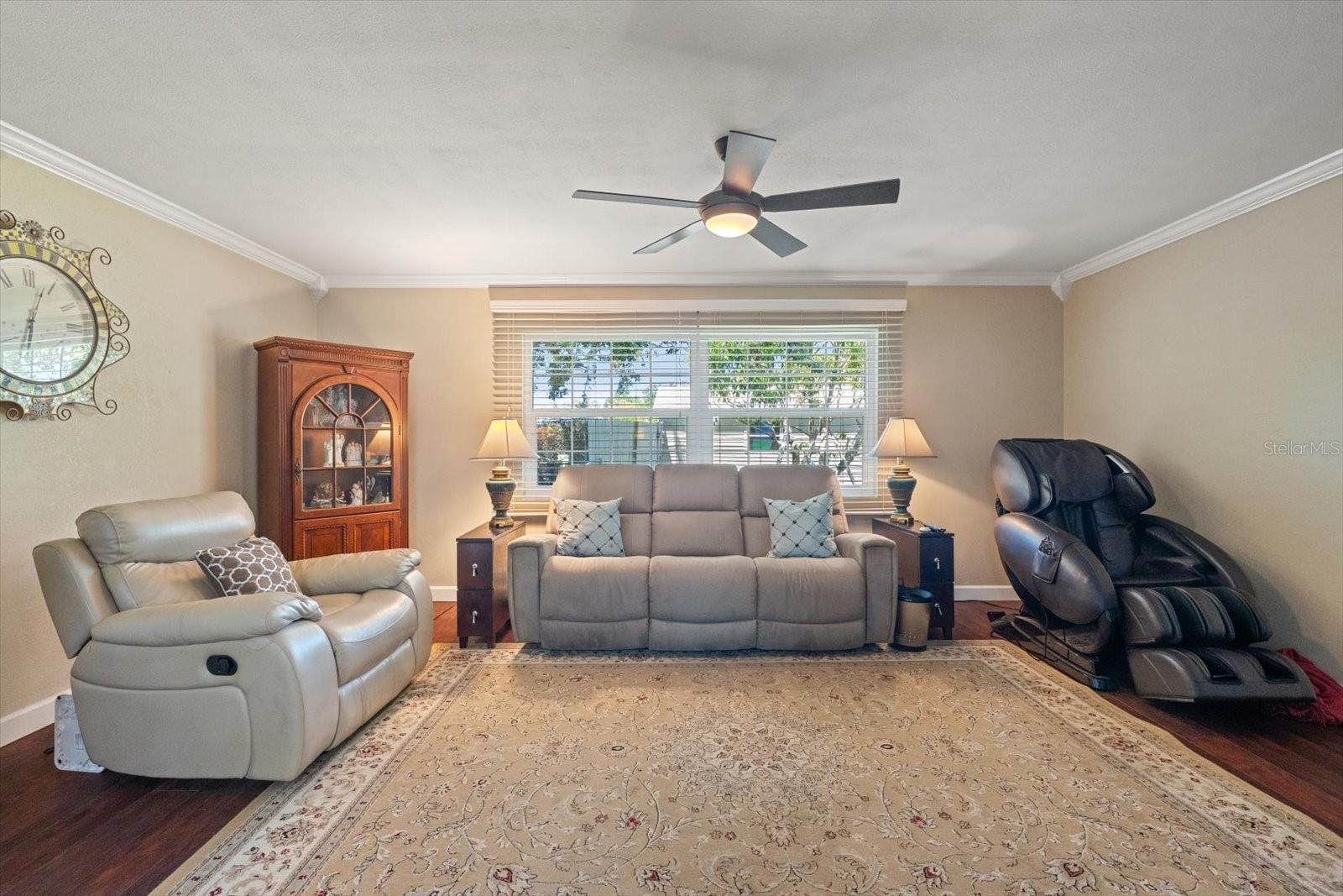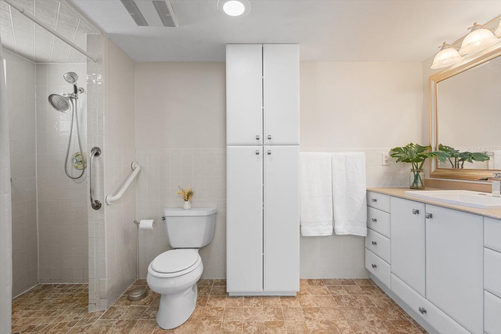 - Accessibility Features, Attic Ventilator, Ceiling Fans(s), Eat-in Kitchen, Living Room/Dining Room Combo, Primary Bedroom Main Floor, Solid Surface Counters, Solid Wood Cabinets, Walk-In Closet(s)