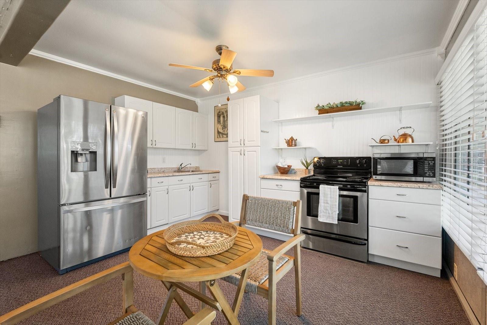 - Cooktop, Dishwasher, Dryer, Electric Water Heater, Microwave, Range, Refrigerator, Washer