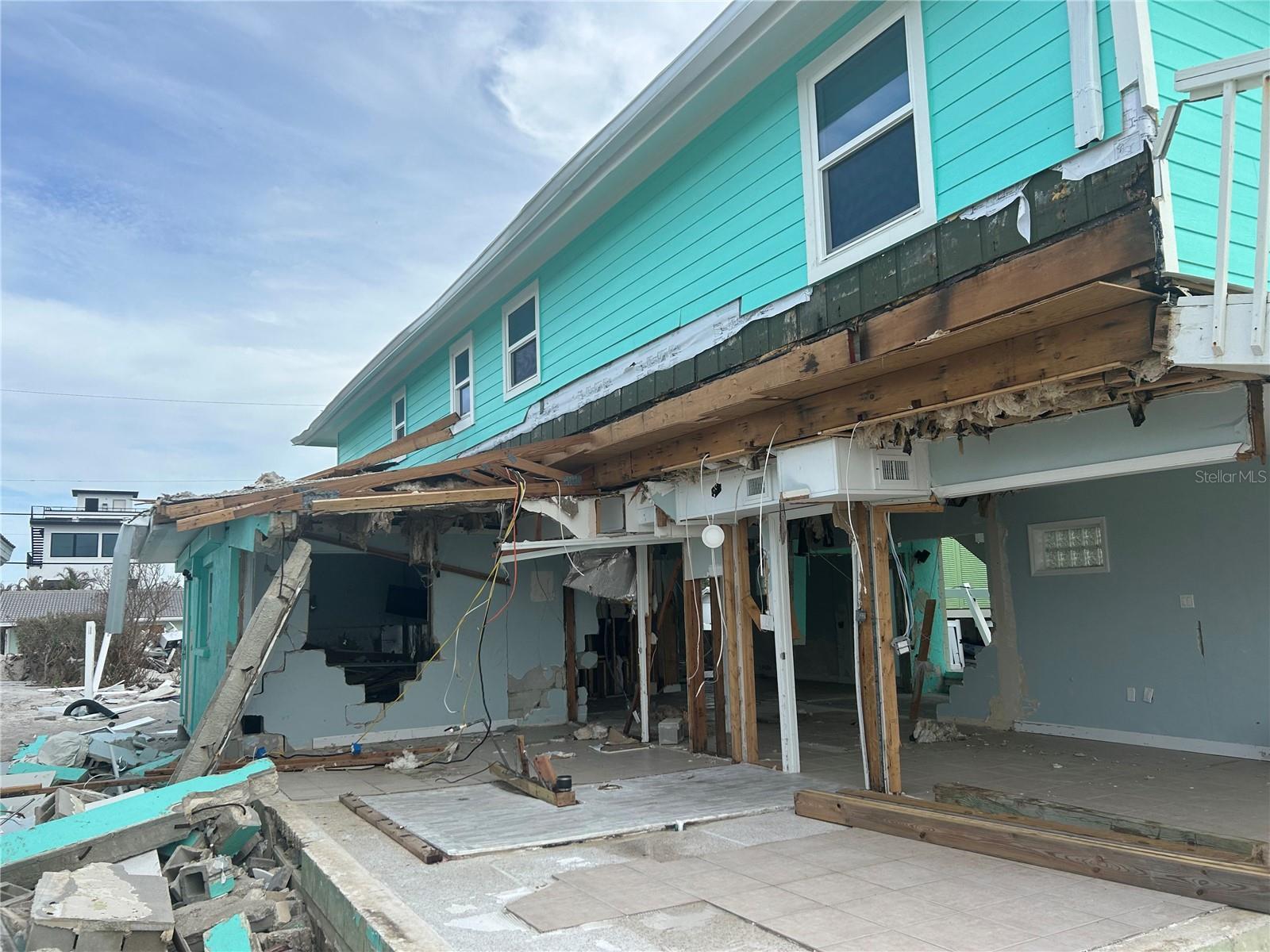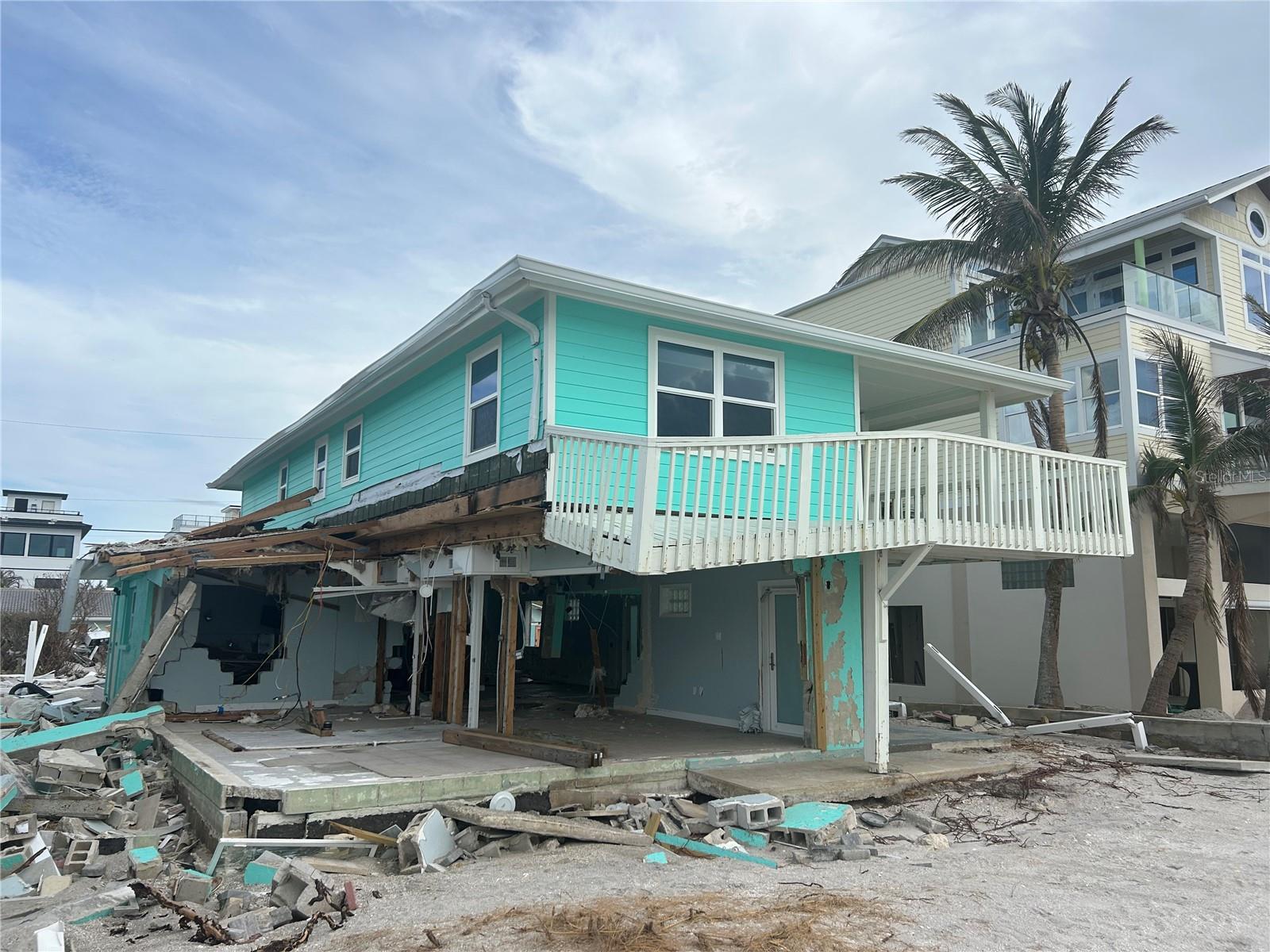 Rarely available gulf front tri plex can be used as a rental or single family home.First floor damaged by Hurricane Milton flooding can be repaired or torn down to build new.The 2nd floor is in good shape recently remolded with a newer roof and furnished.Can show from outside do not enter the house.
