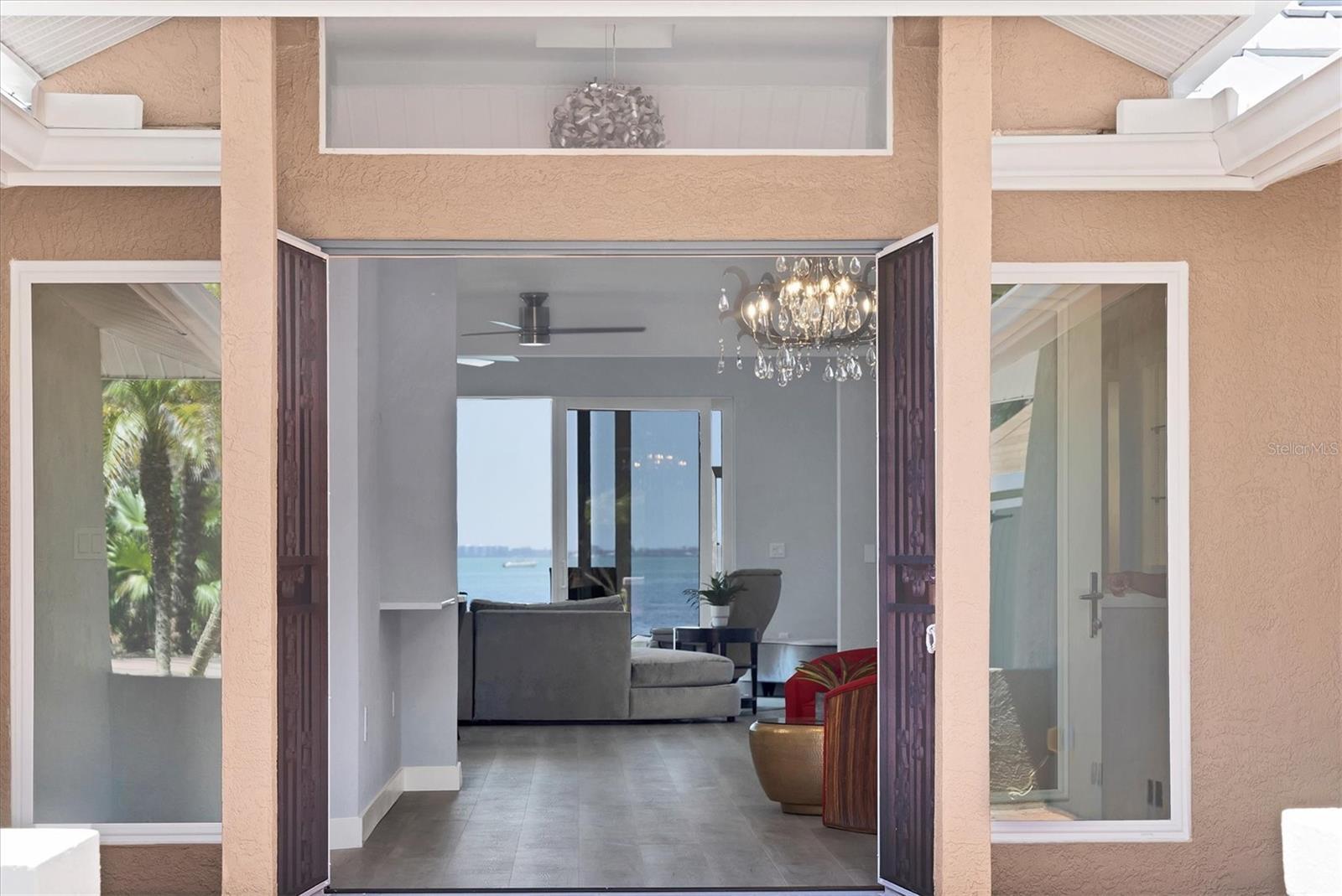 One or more photo(s) has been virtually staged. • Welcome to Beyond the Gates, where timeless elegance meets coastal serenity in the heart of the historic Indian Beach-Sapphire Shores neighborhood. Perfectly nestled between Sarasota College of Art & Design and the iconic Ringling Museum, this bayfront estate offers an unmatched blend of privacy, architectural distinction, and location. Reimagined in 2010 by renowned architect Terry Green and meticulously updated in 2025, this single level 4-bedroom, 3-bathroom modern Coastal retreat highlights clean lines, warm textures, and panoramic water views that will take your breath away. By day, watch sailboats drift across the turquoise bay; by night, the lights of Longboat Key dance across the water, creating a magical ambiance that soothes the soul. Whether you are entertaining guests or enjoying a quiet evening at home, the views alone are a masterpiece—providing a daily dose of peace and inspiration. Inside, an eclectic blend of historic charm and modern design welcomes you into spacious living areas filled with natural light, seamlessly blending indoor comfort with outdoor beauty. Each room is thoughtfully designed to encompass views of Sarasota Bay and the surrounding landscape and provide a sense of effortless luxury. This exceptional residence is not just a home, it is a private sanctuary where luxury, location, and lifestyle converge just 3.5 miles to Downtown Sarasota and approximately 5 miles to St. Armands Circle & Lido Beach.