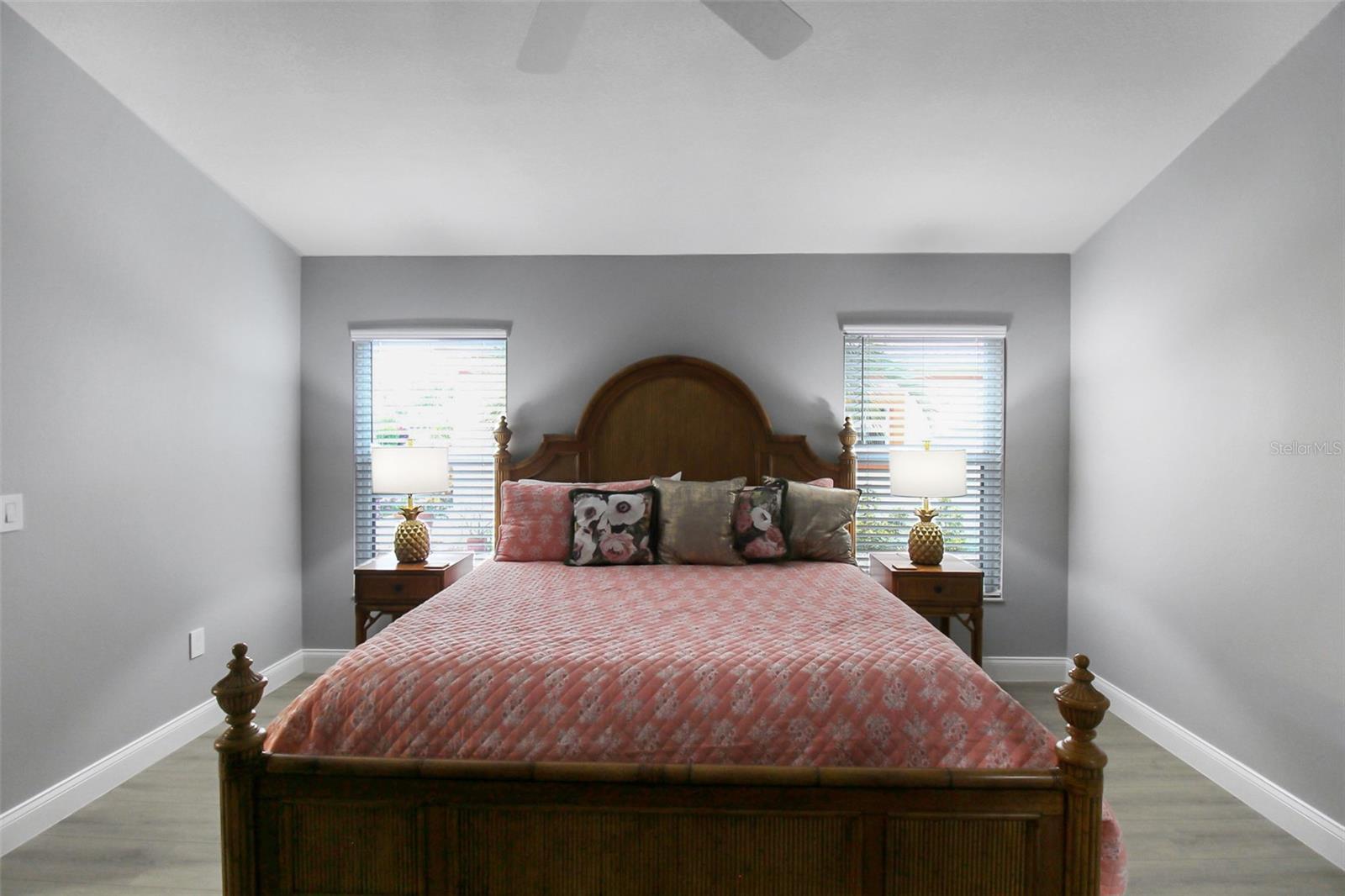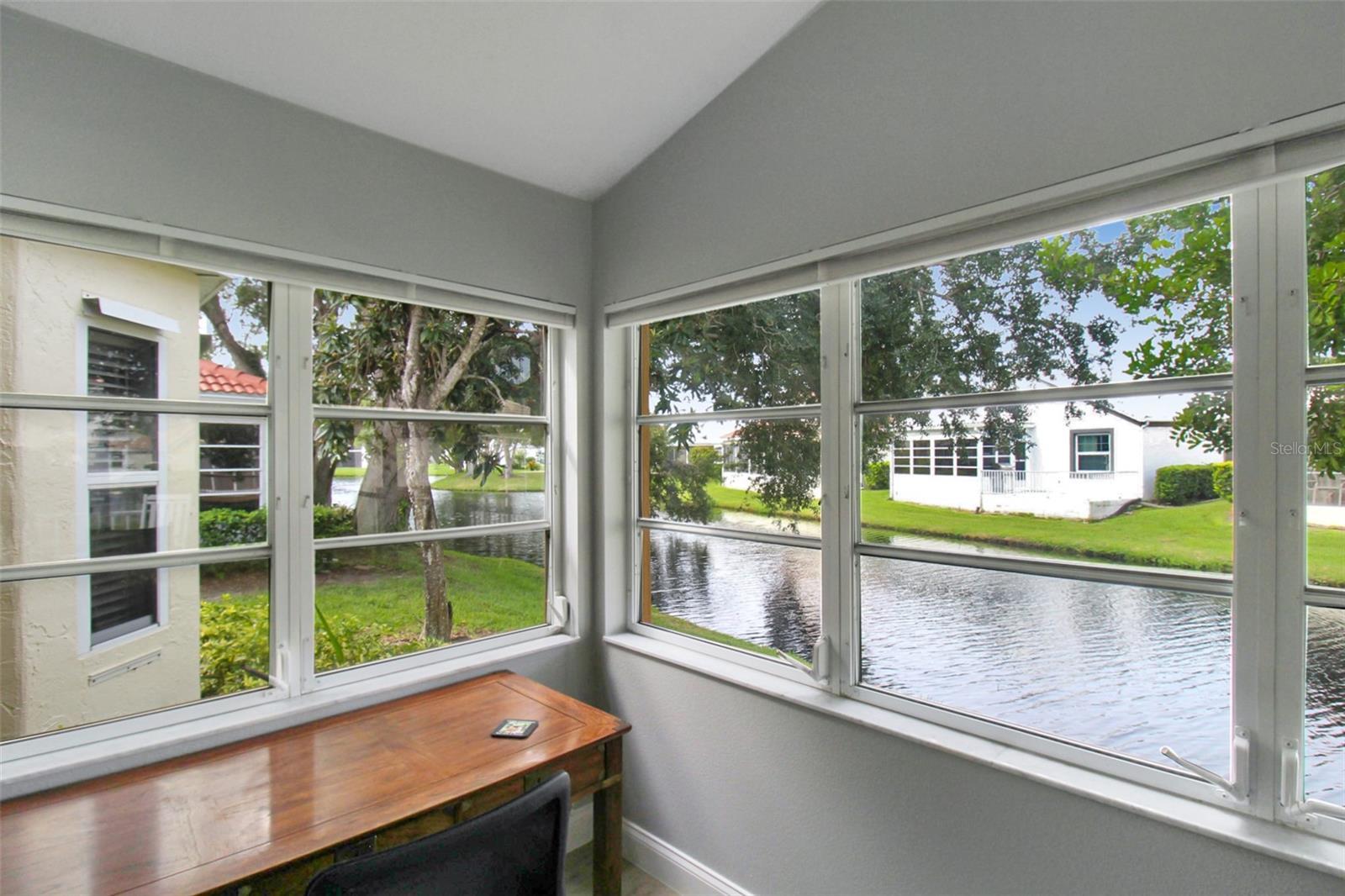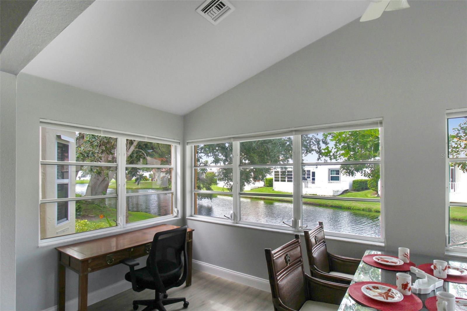 Welcome to Breezy Dream! This serene lakefront retreat in Palm Villas, located on Capri Isles Blvd in Venice, FL. This charming 2-bedroom home with a den and 2 bathrooms offers a peaceful escape with beautiful lake views. The spacious sunroom, featuring a dining table and desk, is the perfect spot to enjoy a meal or get some work done while taking in the tranquil lake. Step outside to the cozy seating area, where two chairs invite you to savor your morning coffee by the water. The living room is designed for relaxation after a day of adventure, while the kitchen features stainless steel appliances and a table for two. Down the hall, you'll find a cozy den with a trundle bed and a unique swinging chair, perfect for unwinding. The second bedroom includes a queen-size bed and an updated bathroom with a shower/tub combo and modern vanity. The primary bedroom offers a king-size bed, TV, and an attached bathroom with a walk-in closet and a walk-in shower, creating a private oasis for restful nights. This lakefront home blends comfort, style, and picturesque views for a perfect Venice getaway. This community is located within a few miles of the Historic Venice downtown and Venice Beach, and there are numerous golf courses in the immediate area. House Rule: No smoking. No burning candles inside of lodging. No parties. No Pets.
