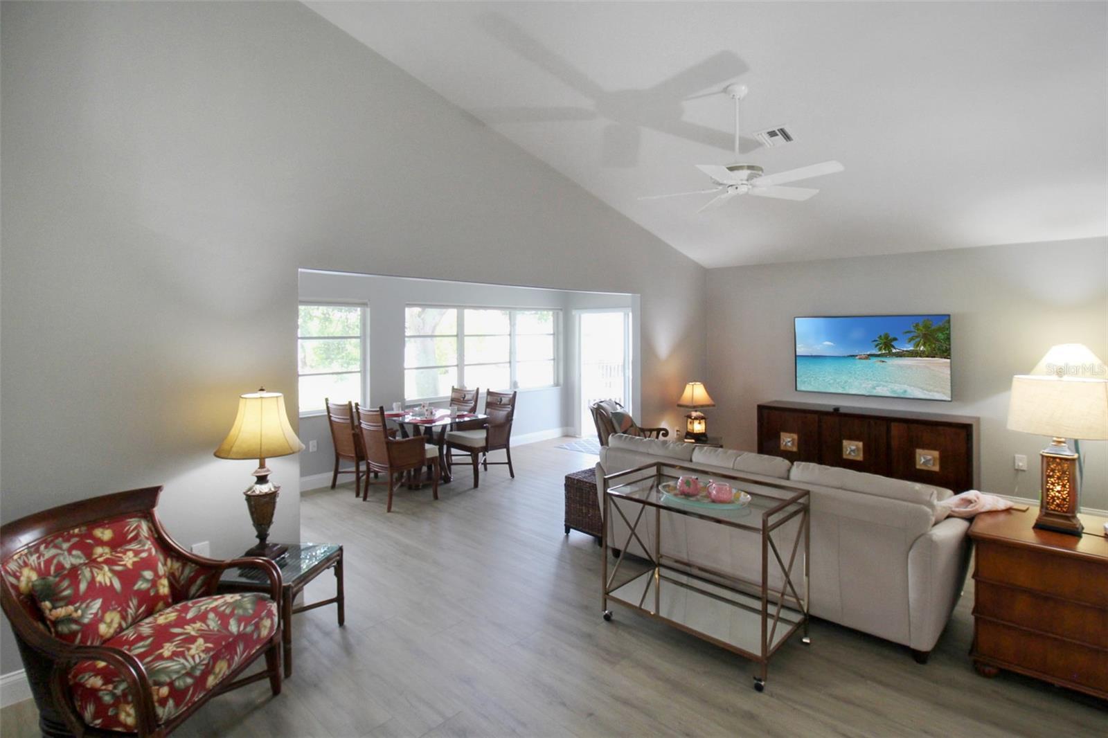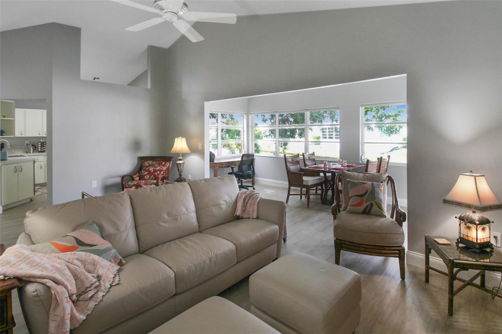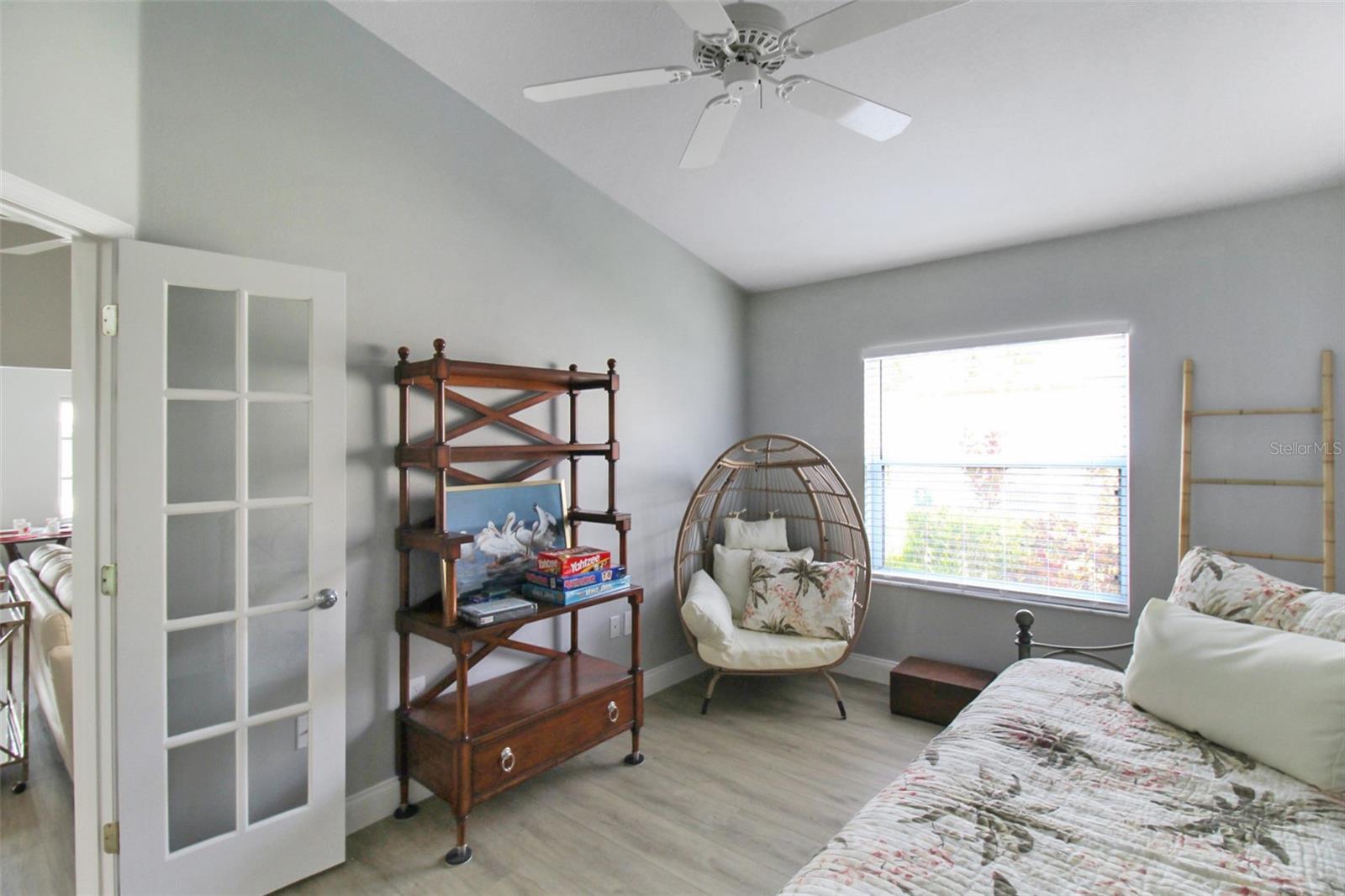 Welcome to Breezy Dream! This serene lakefront retreat in Palm Villas, located on Capri Isles Blvd in Venice, FL. This charming 2-bedroom home with a den and 2 bathrooms offers a peaceful escape with beautiful lake views. The spacious sunroom, featuring a dining table and desk, is the perfect spot to enjoy a meal or get some work done while taking in the tranquil lake. Step outside to the cozy seating area, where two chairs invite you to savor your morning coffee by the water. The living room is designed for relaxation after a day of adventure, while the kitchen features stainless steel appliances and a table for two. Down the hall, you'll find a cozy den with a trundle bed and a unique swinging chair, perfect for unwinding. The second bedroom includes a queen-size bed and an updated bathroom with a shower/tub combo and modern vanity. The primary bedroom offers a king-size bed, TV, and an attached bathroom with a walk-in closet and a walk-in shower, creating a private oasis for restful nights. This lakefront home blends comfort, style, and picturesque views for a perfect Venice getaway. This community is located within a few miles of the Historic Venice downtown and Venice Beach, and there are numerous golf courses in the immediate area. House Rule: No smoking. No burning candles inside of lodging. No parties. No Pets.