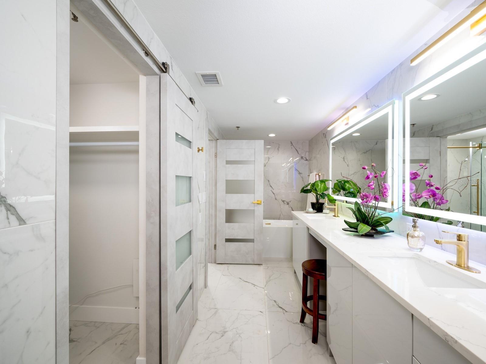 One or more photo(s) has been virtually staged. This extraordinary unit has been exquisitely remodeled to an impeccable standard, utilizing only the finest materials. Every detail has been meticulously crafted to provide an unparalleled luxurious living experience. Prepare to be enchanted by the breathtaking views of Sarasota Bay from three expansive balconies that showcase both waterfront and vibrant downtown panoramas. The sophisticated marble flooring extends seamlessly throughout the entire unit, including the balconies, creating an elegant atmosphere. Eye-catching design elements include brushed gold finishes on all faucets and door handles, low-profile lighting, complemented by custom European doors and exquisite trim work. An open floor plan ensures the views can be enjoyed from every corner of this city dwelling. The modern European kitchen features high-end appliances and elegant finishes, such as marble countertops, a breakfast bar, and a matching backsplash, while maintaining the home's aesthetic. It also includes a convenient service entrance with private laundry facilities. The thoughtfully designed split floor plan guarantees privacy for you and your guests, featuring two primary suite options, each with en suite baths. You can relax in one that has an indulgent soaking tub and dual sinks with LED backlit mirrors, while both include luxurious showers with glass doors and custom fixtures. Plus, this coveted Bay Plaza residence has an exceptional rarity of a third bedroom and third full bath! As a resident, you will enjoy unparalleled amenities, including 24/7 valet parking, convenient EV charging stations, and round-the-clock concierge services that are second to none. The building has recently been transformed with the installation of impact-resistant glass, elevating its sophistication and ensuring both style and safety. Unwind in the luxurious heated swimming pool, soak in the rejuvenating Jacuzzi spa, or maintain your fitness routine in the state-of-the-art fitness room, complete with a European sauna and steam room. Nestled in the heart of downtown Sarasota, this prestigious building is surrounded by various trendy restaurants and boutiques. Residents can effortlessly immerse themselves in the vibrant cultural scene, with Whole Foods, the Theatre, and the Opera just moments away. Enjoy the spectacular 4th of July fireworks at Marina Jacks from the comfort of your balcony. With its unbeatable location just minutes from St. Armands Circle, Longboat Key, and Sarasota’s stunning beaches, this unit offers an unparalleled opportunity to embrace the dynamic social lifestyle that downtown Sarasota proudly provides. Don't miss your chance to make this exquisite residence your own!