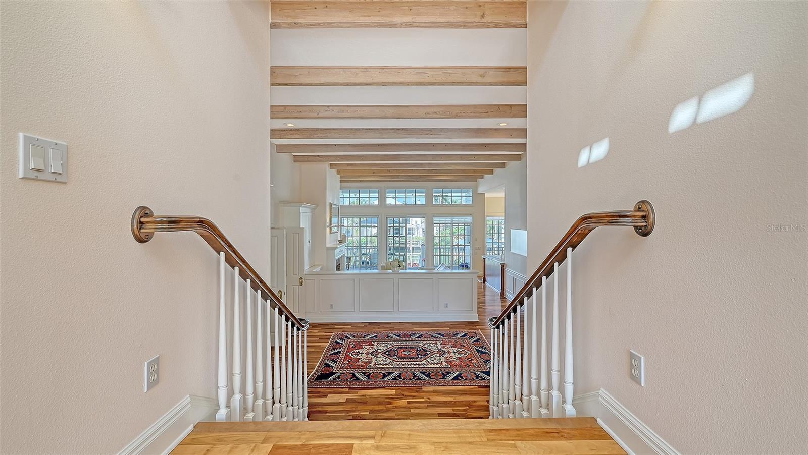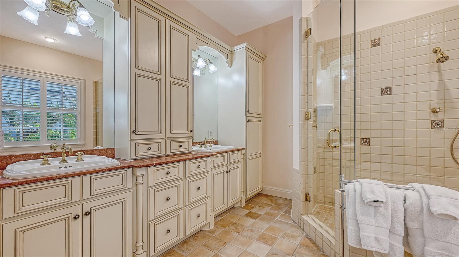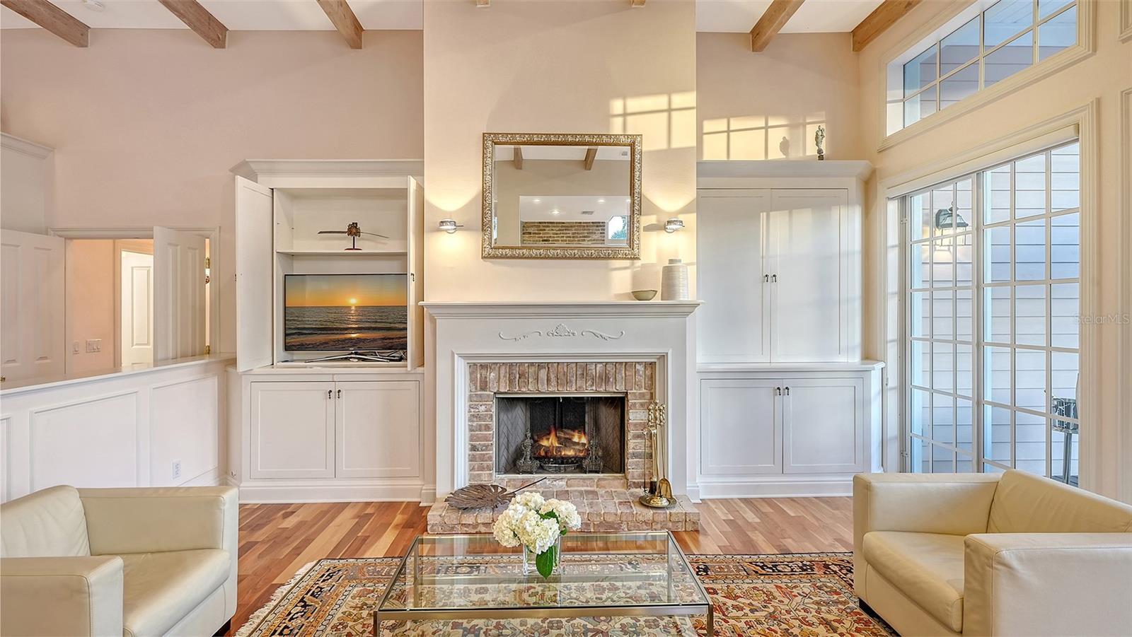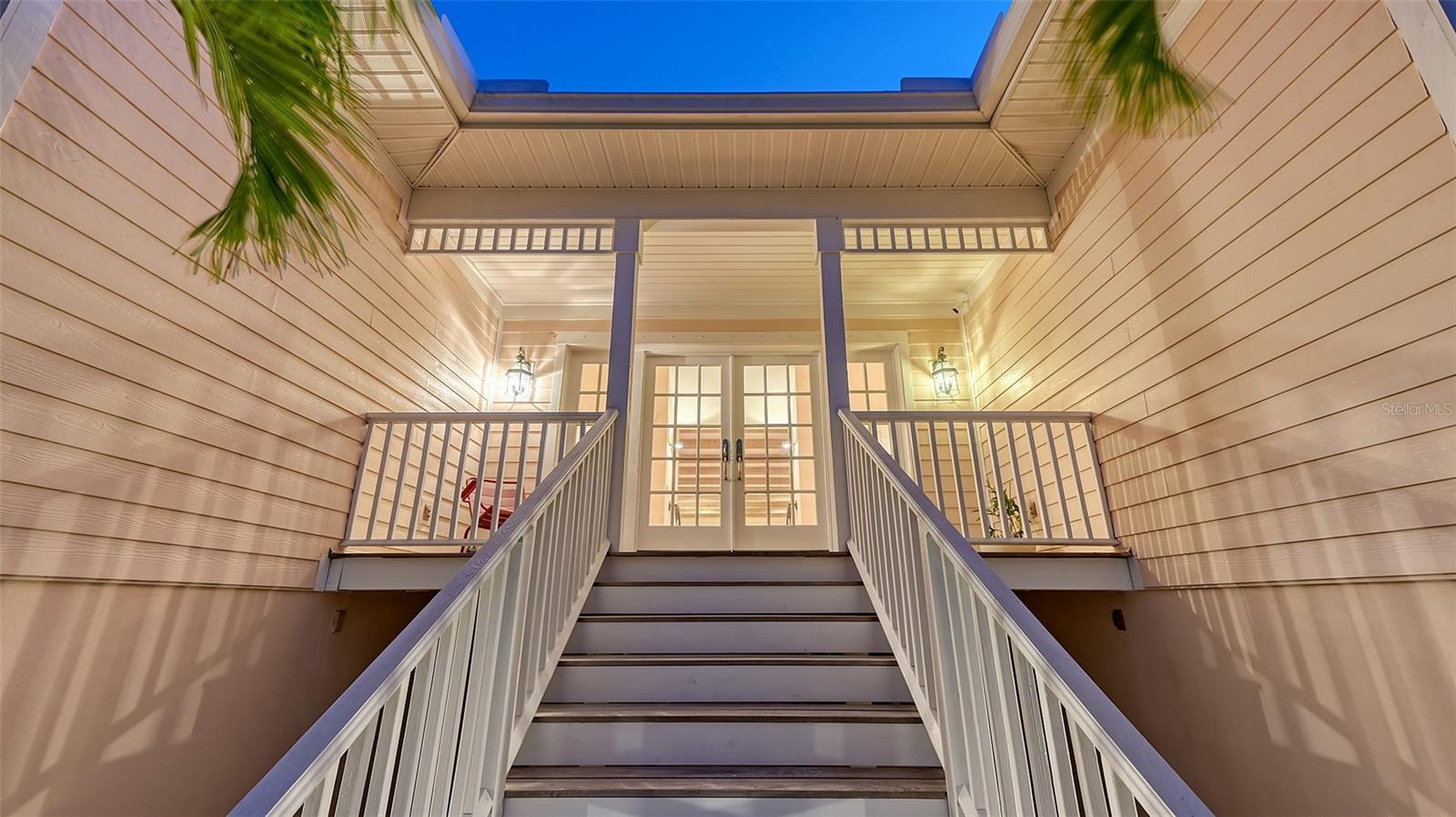 Nestled in the quaint neighborhood along the Grand Canal on Siesta Key, this Key West style home offers the perfect blend of old-world charm and modern living. This exceptionally well-appointed custom-built home is being offered turnkey. The home's grand entrance welcomes you through a covered porch that leads to an oversized foyer. You are greeted with a spectacular open floor plan, where an abundance of natural light, beautiful canal views, soaring ceilings and gleaming hardwood floors create a bright and airy atmosphere throughout. You will then be charmed by the library with a sliding ladder, wood burning fireplace, walnut wood flooring, and cedar beams in the living room, all combined with modern style furniture. The open living area includes a kitchen, with cherry wood cabinets, and an Iron Elmira stove surrounded by Chicago brick, gorgeous dining room and a breakfast nook. Floor to ceiling windows and sliding doors seamlessly connect the grand living area to the outside covered deck, perfect for entertaining. The beautiful primary suite with canal views is on the main level and two generously sized bedrooms with their en-suite bathrooms are located on the upper level. A “basement room” between the two garages offers a huge amount of storage with built-in closets and cabinets. The house was not affected by any wind or flood damage thanks to its solid concrete block construction and 11ft elevation of living space. Some water intrusion on garage level, but did not cause any damage to building, or cabinets in storage area between the garages. The fenced-in backyard features a 35ft screened heated pool with a waterfall and Chicago brick deck. The 60ft IPE hardwood boat dock with a tropical over-the-water gazebo is equipped with a 10,000lb boat lift and offers plenty of space for all your outdoor toys. Boating just one mile through the deep-water canal brings you to the Intercoastal Waterway which leads right out into the open Gulf. In a market where quality counts more than ever, this home offers a rare blend of location, craftsmanship, and timeless appeal. Welcome home to Siesta Key - island living, breath-taking sunsets, boating and award-winning beaches, all at your doorstep.