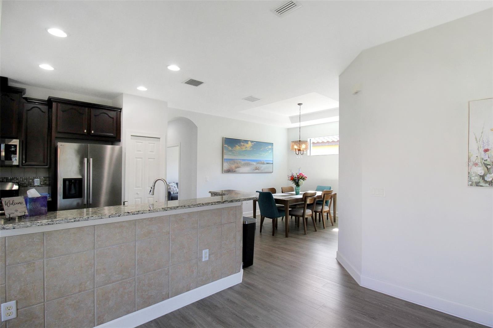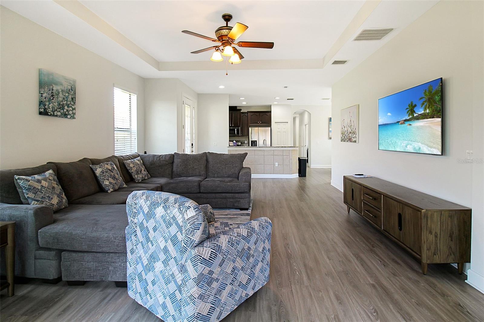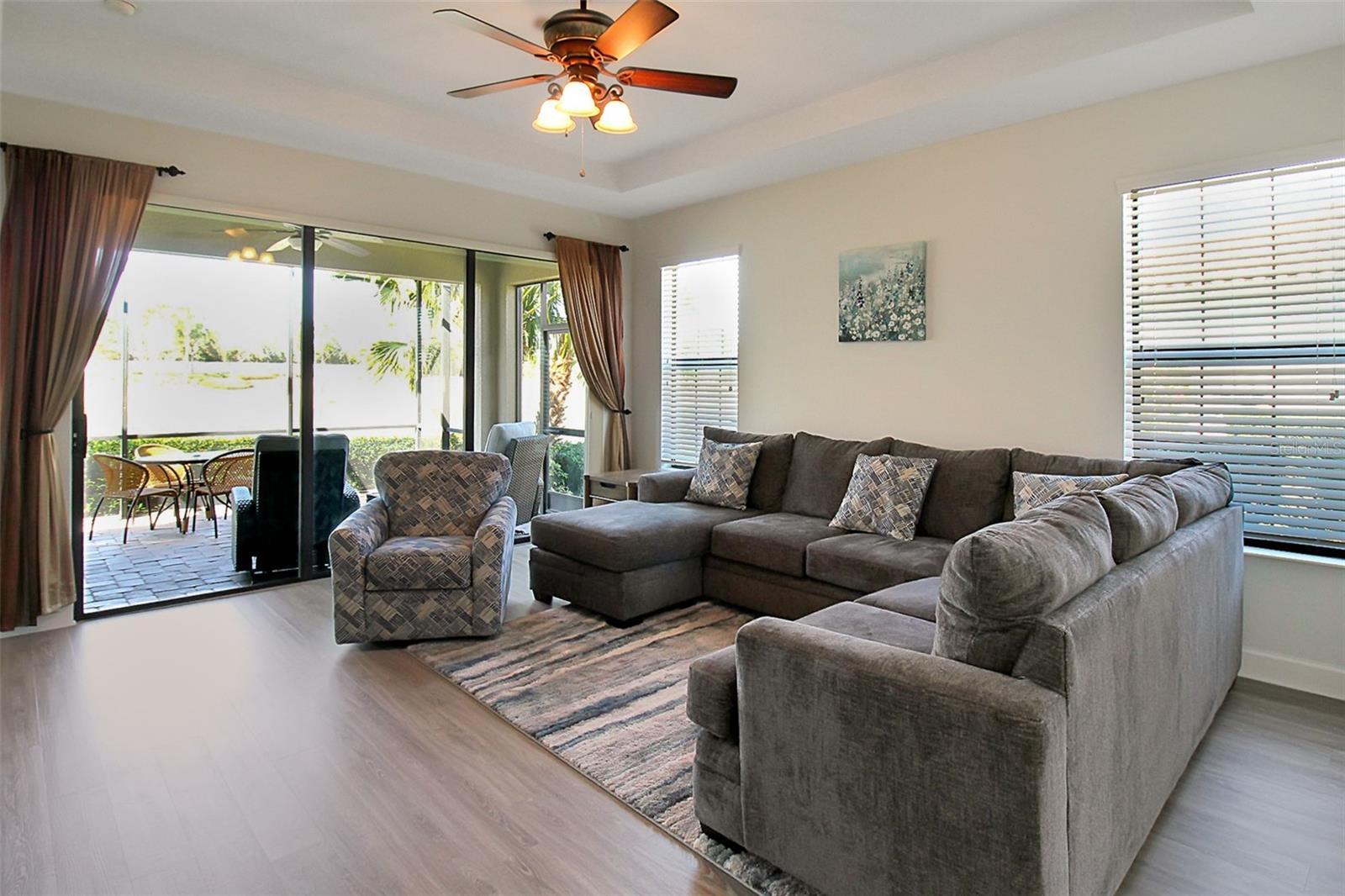 Welcome to Palm Meadow, your dream retreat in Esplanade Golf & Country Club in Lakewood Ranch, FL! This gorgeous 3-bedroom, 2-bathroom home offers breathtaking lake views and an inviting open-concept design that perfectly blends elegance and comfort. Upon entry, you're greeted by a spacious living room with a large sectional and cozy chair, creating the perfect spot to unwind and relax after a day of adventure. Sliding glass doors lead to an outdoor oasis, where seating and gathering space await for memorable moments with friends and loved ones—all while overlooking the serene lake. The chef’s kitchen is a delight, featuring stainless-steel appliances, expansive countertops, and ample cabinetry. Adjacent, the dining area comfortably seats up to six guests, making it ideal for intimate dinners or lively celebrations. The primary suite is a true retreat, boasting a king-size bed, a stunning lake view, and a spa-inspired ensuite bathroom with a dual vanity, a walk-in shower, and a custom-designed closet for ultimate convenience. A den offers the perfect space to set up your remote office or enjoy a quiet reading nook. The second bedroom features a queen-size bed, a TV, and ample closet space, while the third bedroom offers a queen-size bed, a TV, and plenty of dresser space. The second bathroom is beautifully appointed with a large vanity and a shower/tub combo. Esplanade is a high-end Lifestyle Community among the preserved natural Florida habitat. This Lifestyle Community offers so many amenities you won't need to go anywhere else to have fun. Included are 2 resort-style pools one, with its own Tiki bar, called the Bahama Bar offering a full-service bar and restaurant. Our Wellness center offers the amazing Koquina Sand Spa where guests can indulge in 5-star services such as massage treatments, skin care, manicures, pedicures, and hair service. The Amenity center offers another fitness center, card and craft room, catering kitchen, and a small library. The beautiful 1600 SF Culinary Center offers a happy hour, fine dining, and special events such as wine tastings and cooking classes. Also included are perfectly manicured golf links, outdoor spaces with gazebos and fire pits, tennis and pickleball courts, bocce ball, walking trails, canoe and kayak launch, playgrounds, dog park, and more! Enjoy the amazing location this vacation home has to offer you. House Rule: No smoking. No burning candles inside of lodging. No parties. Furry friends welcome, max 2, and require a $200 per pet non-refundable pet fee to be paid directly to the management company.