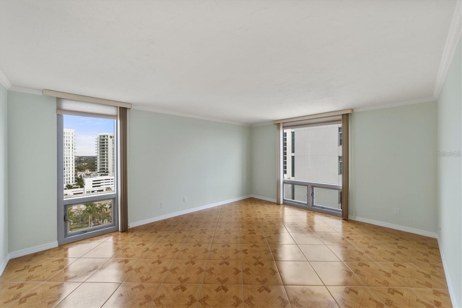 - Crown Molding, Living Room/Dining Room Combo, Solid Wood Cabinets, Stone Counters, Thermostat, Walk-In Closet(s), Window Treatments
