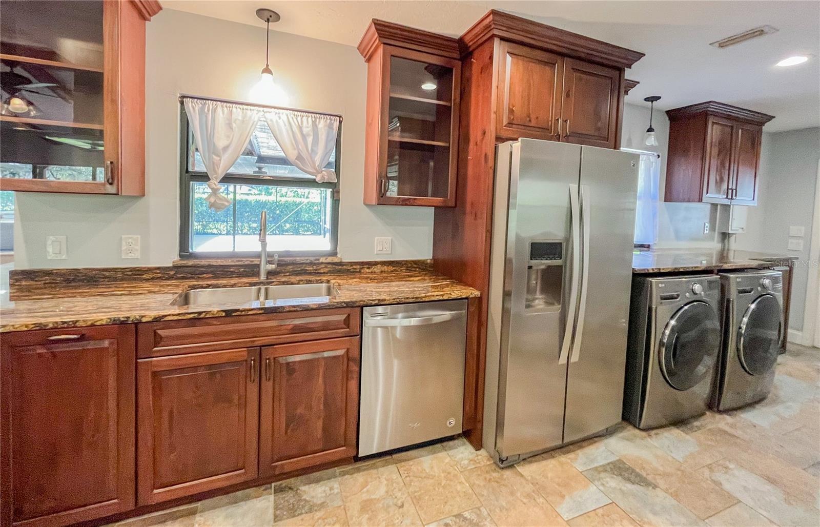 This is one of those special properties that only comes on the Rental market once in awhile. This immaculate 3BR/3BA private home is situated on 1/2 acre - completely private. The third bedroom can be an office with a built in desk or en suite. This spectacular home features: updated gorgeous kitchen, amazing wood and slate flooring, updated appliances, sitting bar, dining area, open floor plan, indoor laundry (washer/dryer included), and stunning open beam ceiling. The master suite is private and has built ins and a fantastic bathroom. The other bathrooms are all beautifully updated with granite and slate as well. Oversized large lanai area with an above ground spa. The grounds are maintained by the Landlord. This is truly a special home. The owner is looking for a long term quiet tenants. There is a full credit, background, employment, and civil check on all tenants.