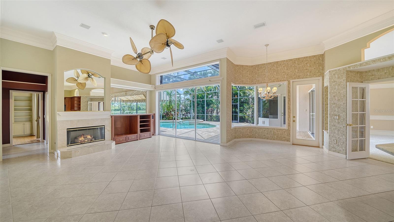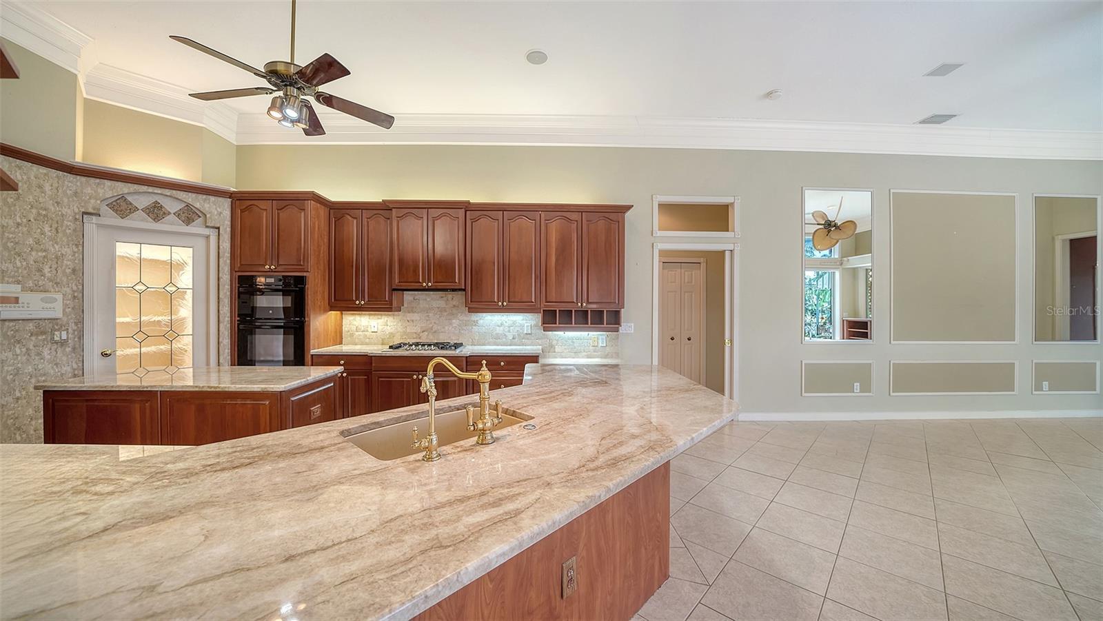 - Built-in Features, Ceiling Fans(s), Crown Molding, Eat-in Kitchen, Open Floorplan, Solid Wood Cabinets, Split Bedroom, Stone Counters, Walk-In Closet(s), Wet Bar