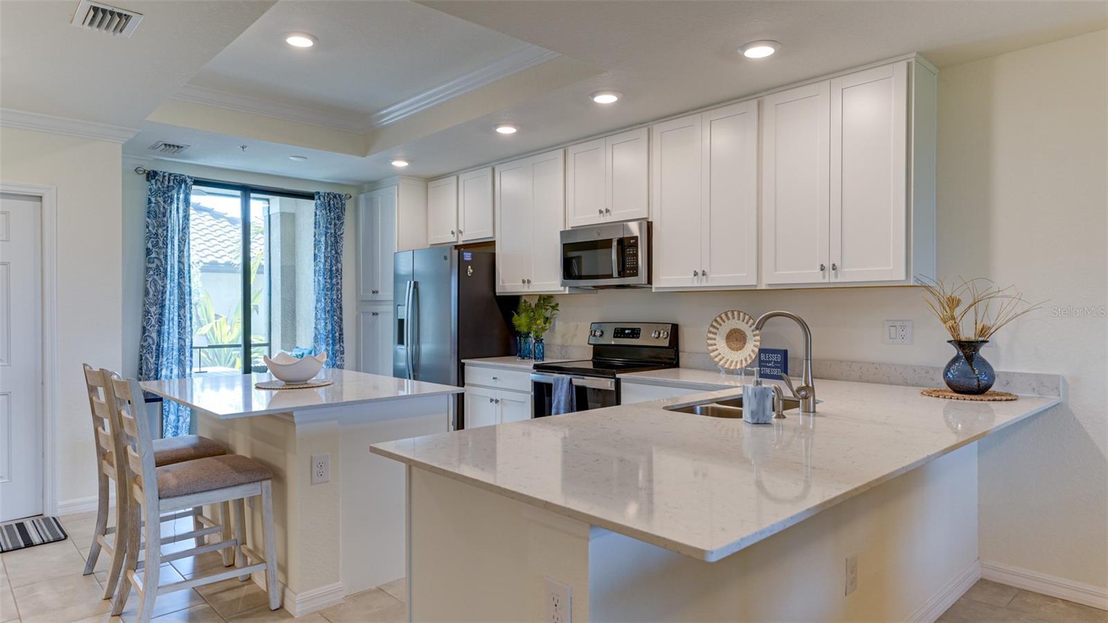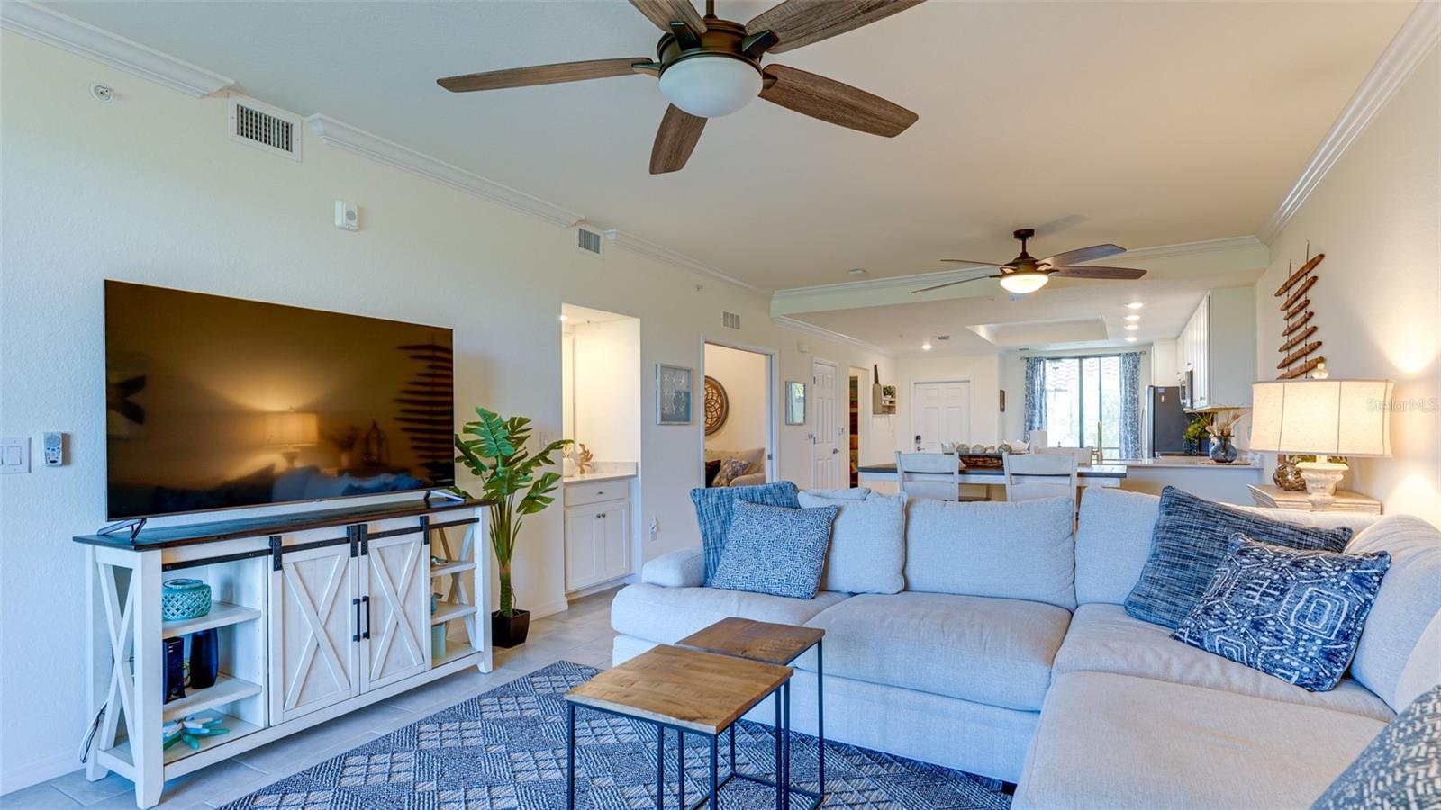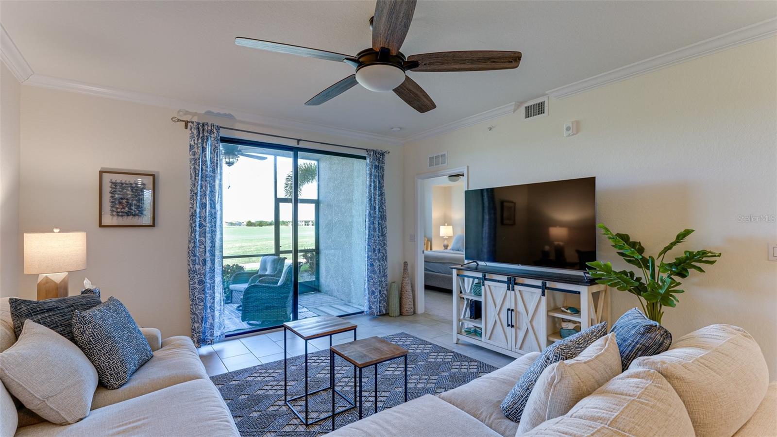 Spacious and Bright 2 bedroom 2 bath with Den/Office First Floor Veranda Condo in the Resort Style Community of Lakewood National in Lakewood Ranch. Country Club Membership transfers for $642 Golf Fees Additional. 36 hole Arnold Palmer designed courses with the Commander course being ranked #1 by Golf Advisor and the Piper #4. There are 8 Har-tru lighted tennis courts, 4 pickleball courts, 2 bocce ball courts and 6 satellite pools throughout the community. 28,000 sq. ft Clubhouse was just completed and is now open to residents with casual, fine and private dining along with event space, a ladies and men's locker room with lounge areas. Next to the Clubhouse you will find the zero entry resort style pool, tiki bar, state of the art fitness center, aerobics room and the U-Topia Spa and Salon. Lakewood National offers a full time LIFESTYLE Director that does a fantastic job creating events for everyone to enjoy from day trips to poker nights. Lakewood National is located in Lakewood Ranch which was ranked the #1 community in the United States offering A rated schools, easy access to I-75 and surrounded by revered dining, shopping, entertainment and of course... close to award-winning beaches! Come see for yourself why you will want to be living the Lakewood National Golf Club LIFESTYLE. Master Bedroom offers a King Size bed, Guest Bedroom has Queen Bed. Both Bedrooms have Flat Screen TVs. Separate Den with Sleeper Sofa and Flat Screen TV. Spacious Lanai on Front of Condo as well as a smaller one off of Great Room with Beautiful Sweeping Golf Course Views. Includes One Car Garage. Easy Access to I-75, local shopping and dining University Parkway, Sarasota Airport. Small Dog Welcome with Pet Fee. BOOKED FOR 2026 SEASON.